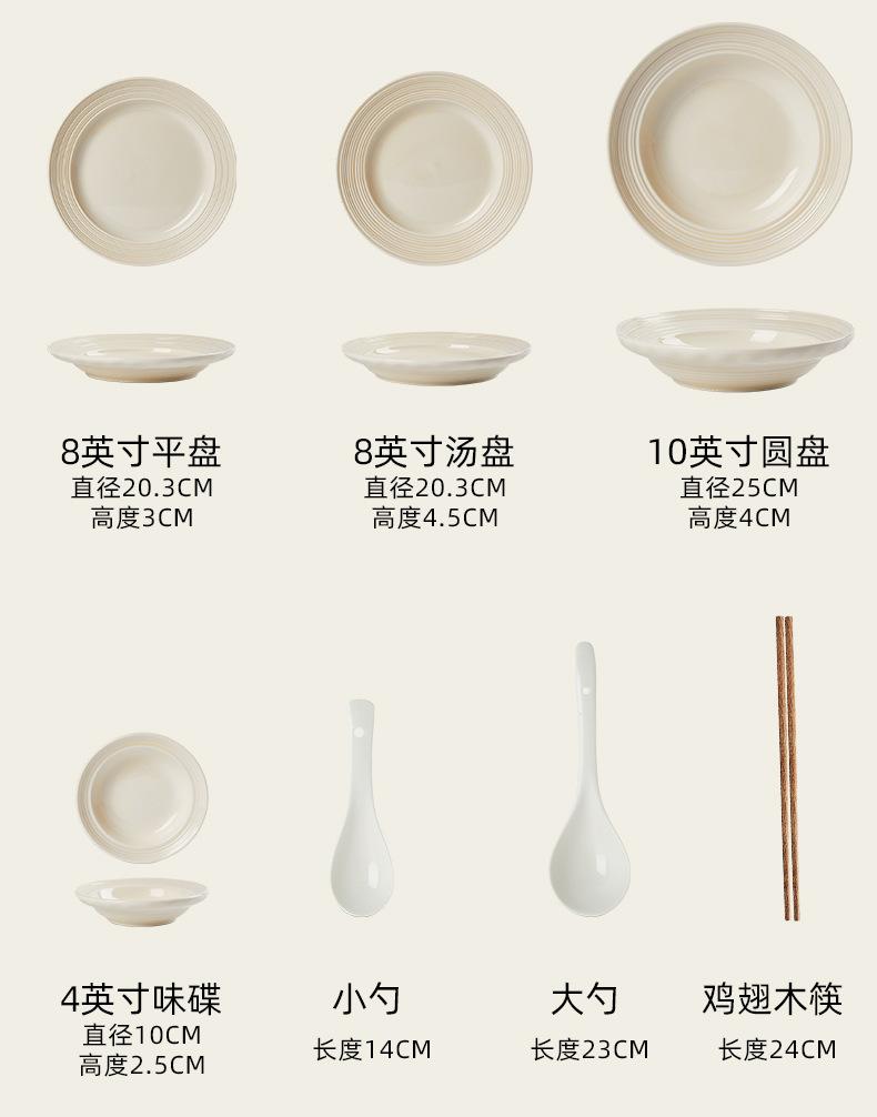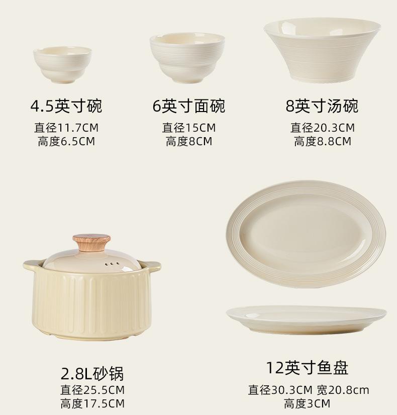 4.5inch bowls, 4inch 1 flavor plate, 6inch noodle bowl, 8inch flat plate, 8inch deep dish, 8inch soup bowls, 1...