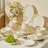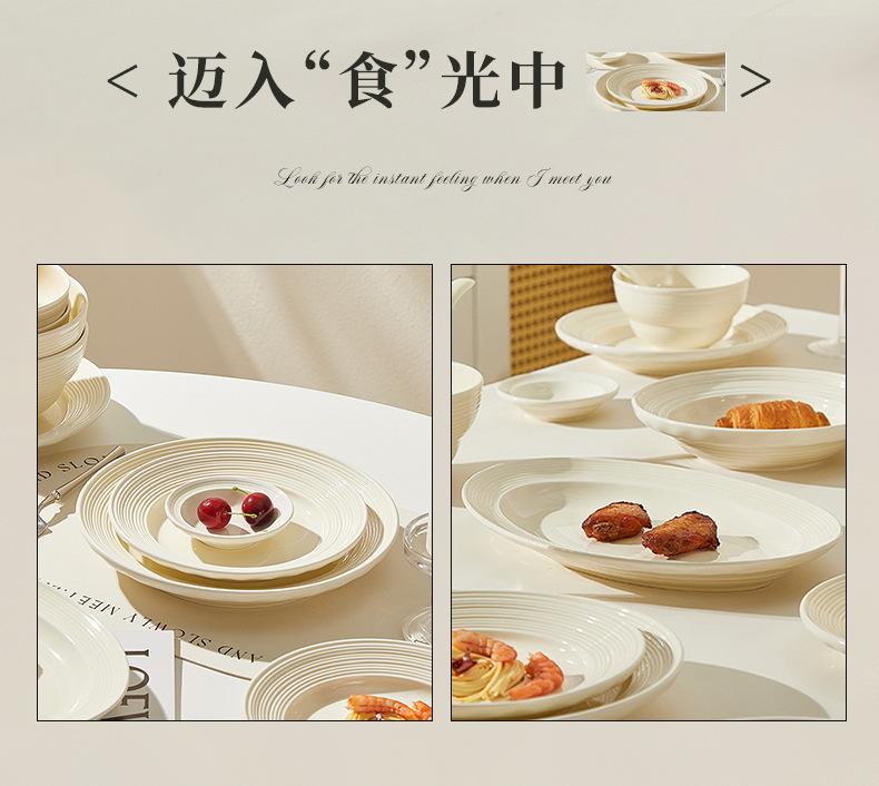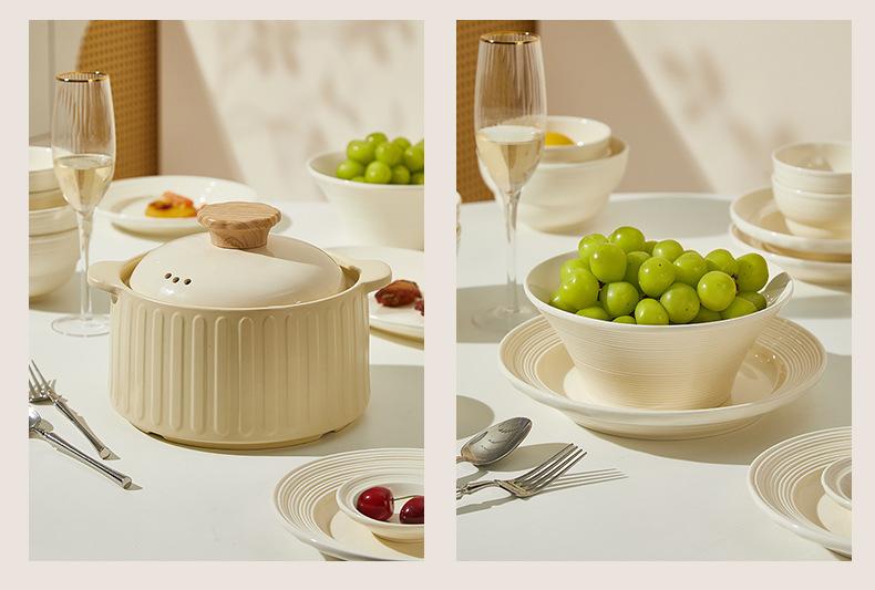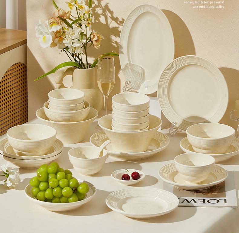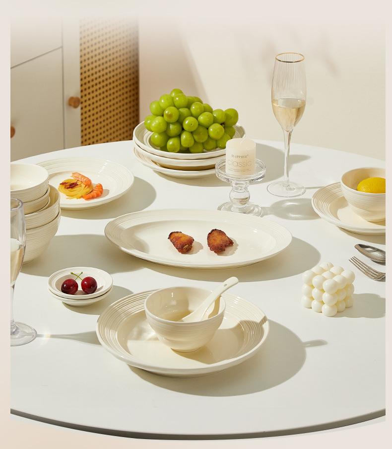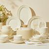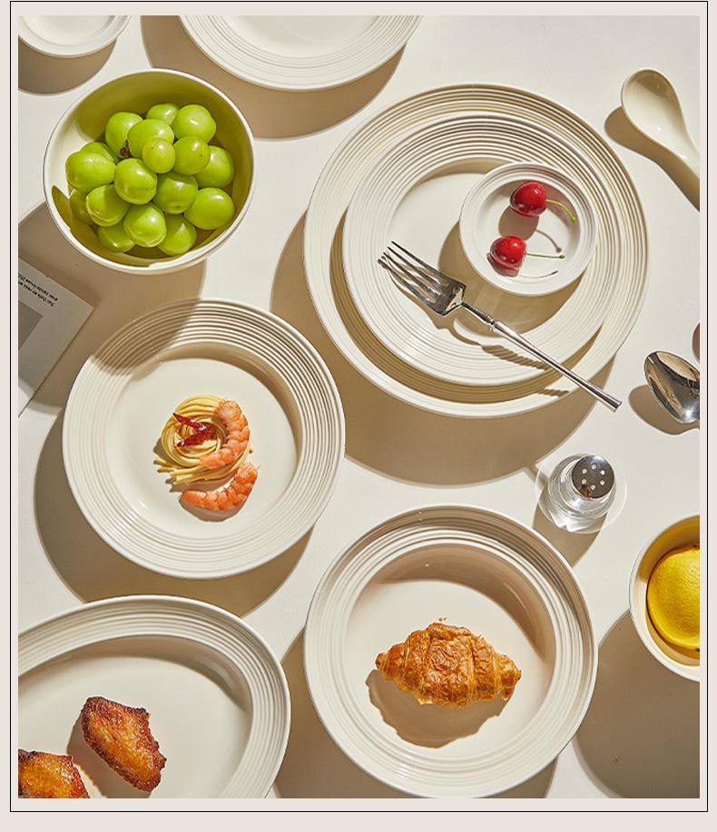 Vajilla de Cerámica de Alta Gama Estilo Crema en Relieve para el Hogar Lujo Ligero Simple Nuevo Juego de Tazón Plato Plato para Inauguración de Casa