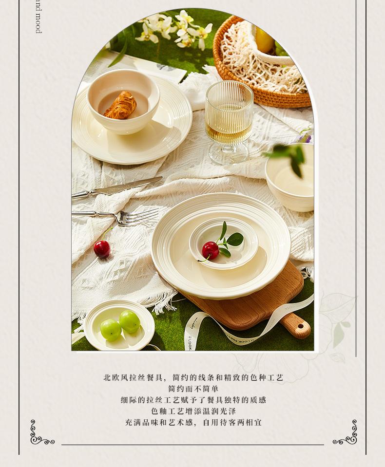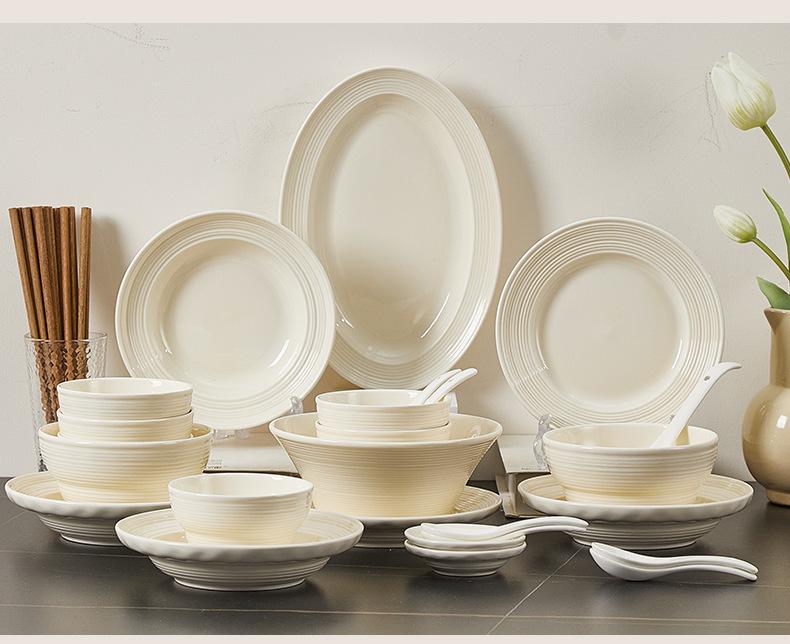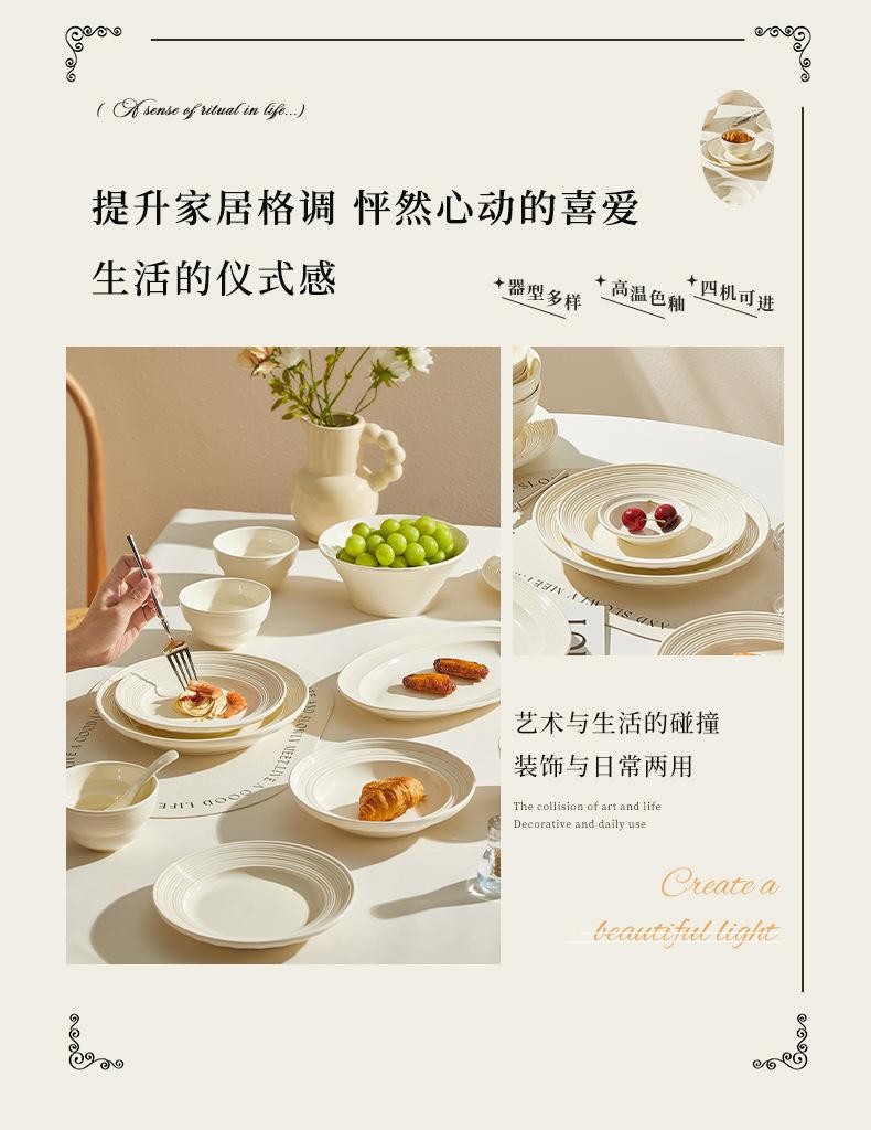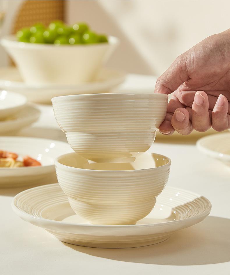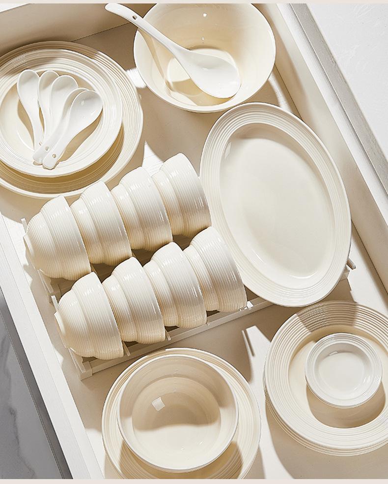 Vajilla de Cerámica de Alta Gama Estilo Crema en Relieve para el Hogar Lujo Ligero Simple Nuevo Juego de Tazón Plato Plato para Inauguración de Casa