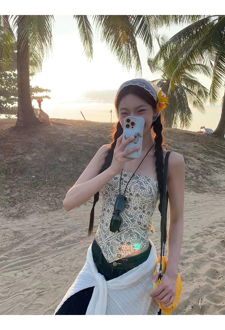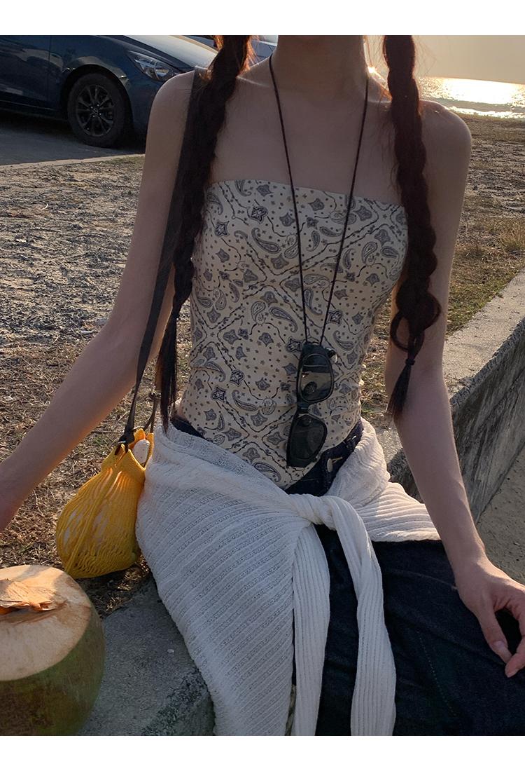 Chaleco sin Mangas para Mujer, Diseño Francés, Corto, Ajustado, Top de Tubo Sexy para Mujer