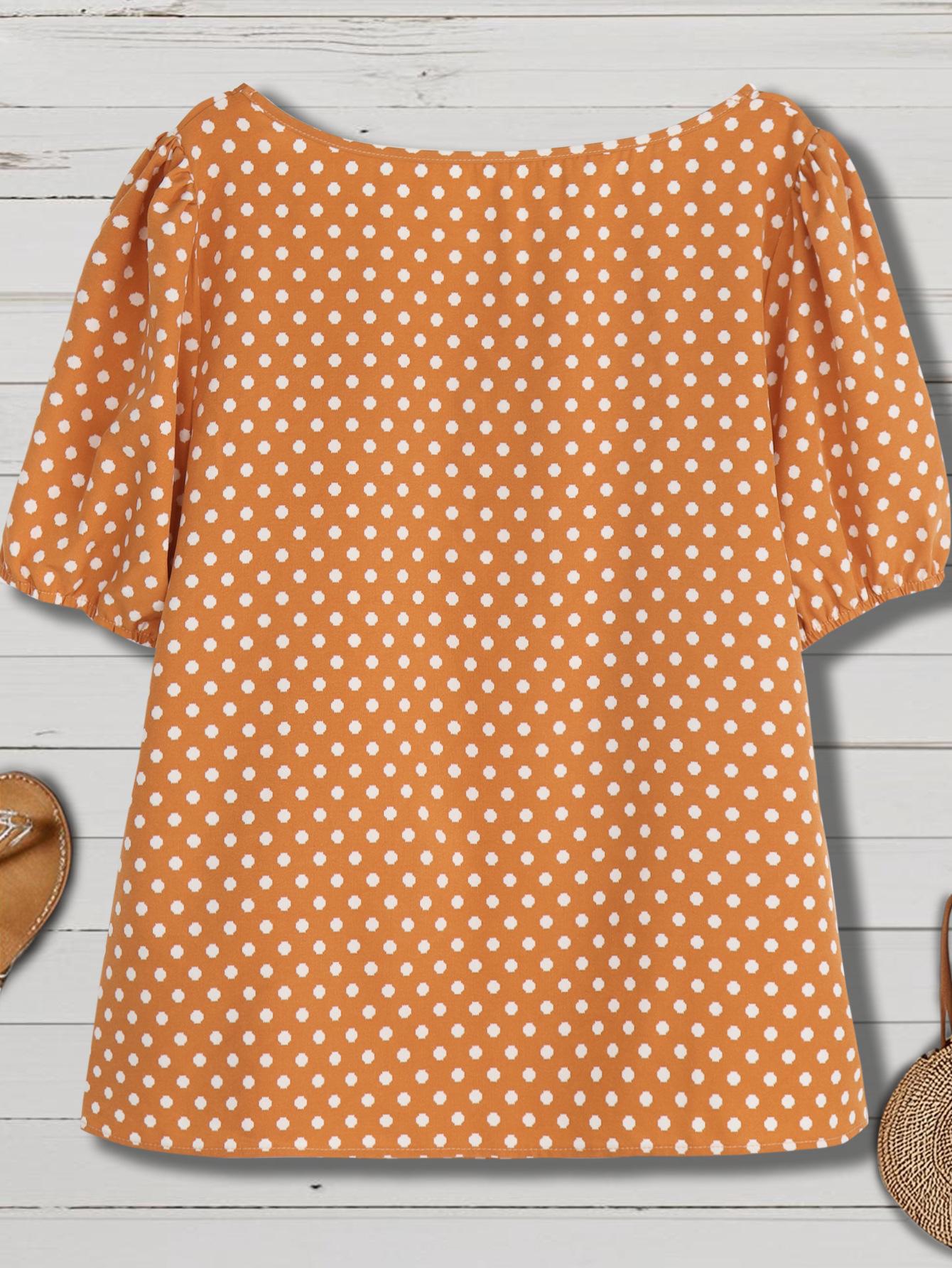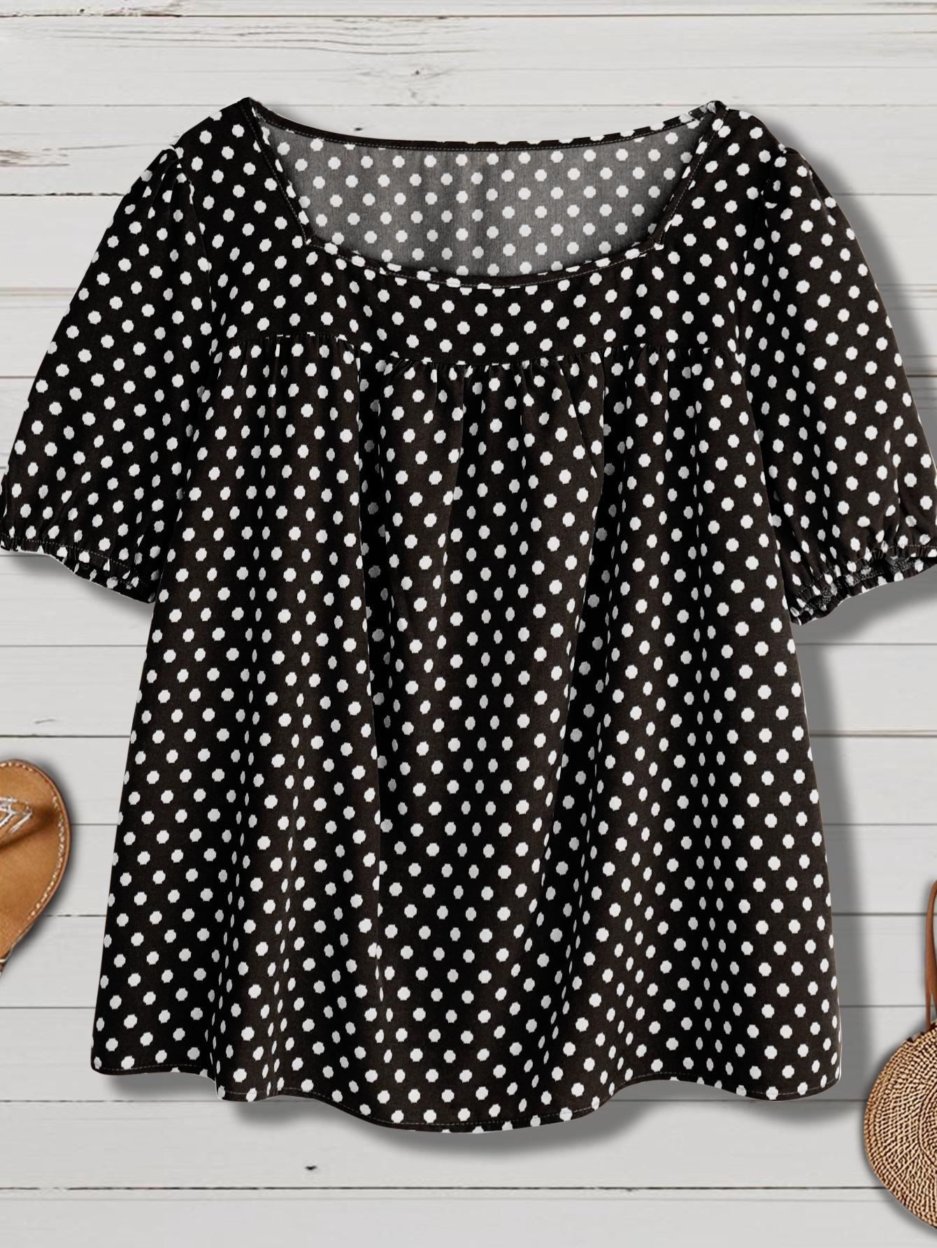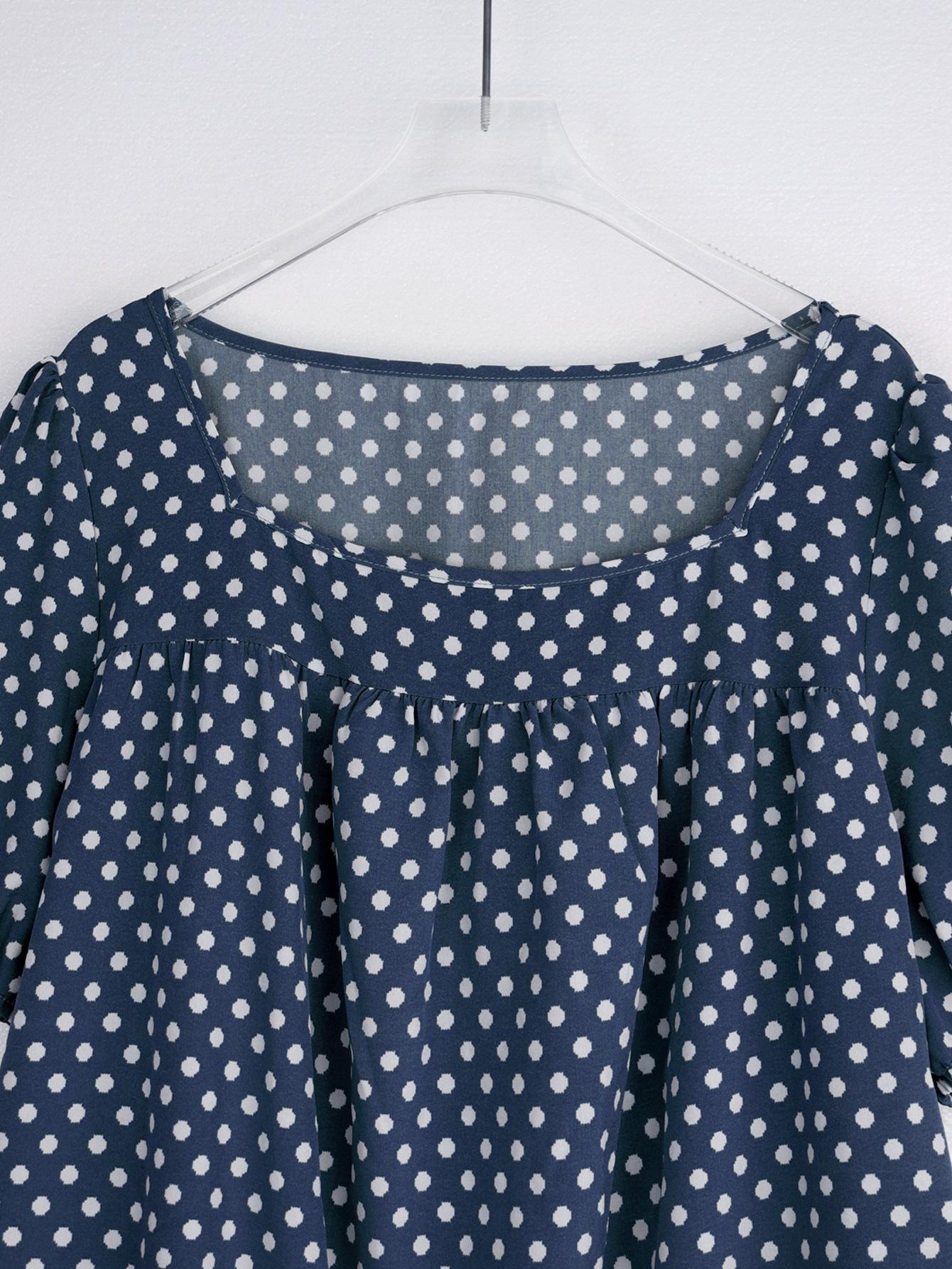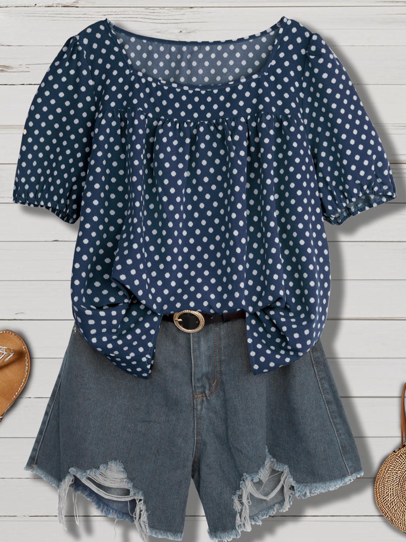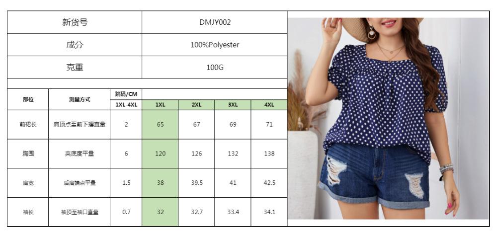 Estilo Nuevo Europeo y Americano Chifón Cuello Redondo Tops de Chifón Temperamento Viajero Comercio Exterior Jersey Lunares Talla Grande Camisas de Mujer al Por Mayor