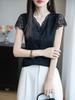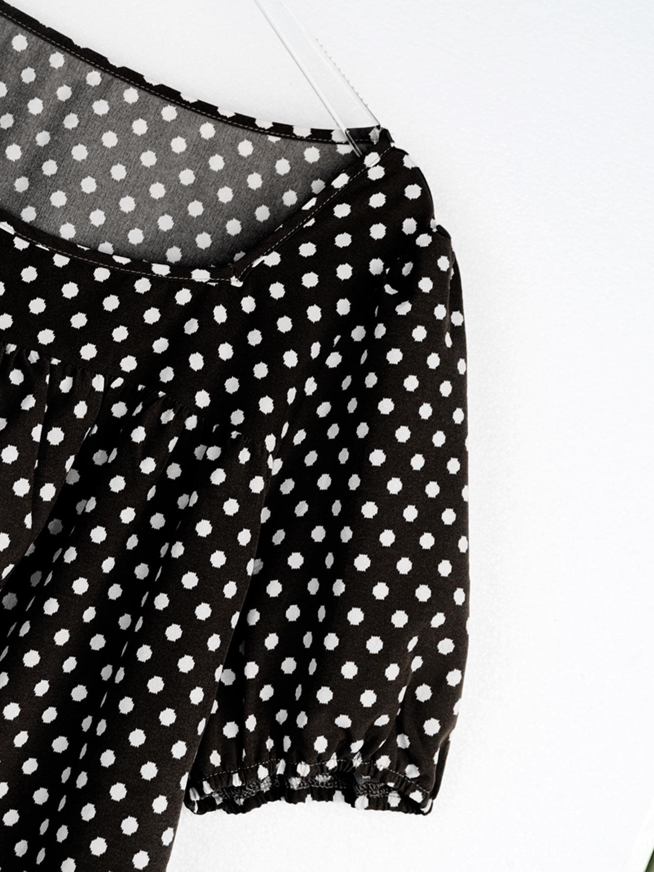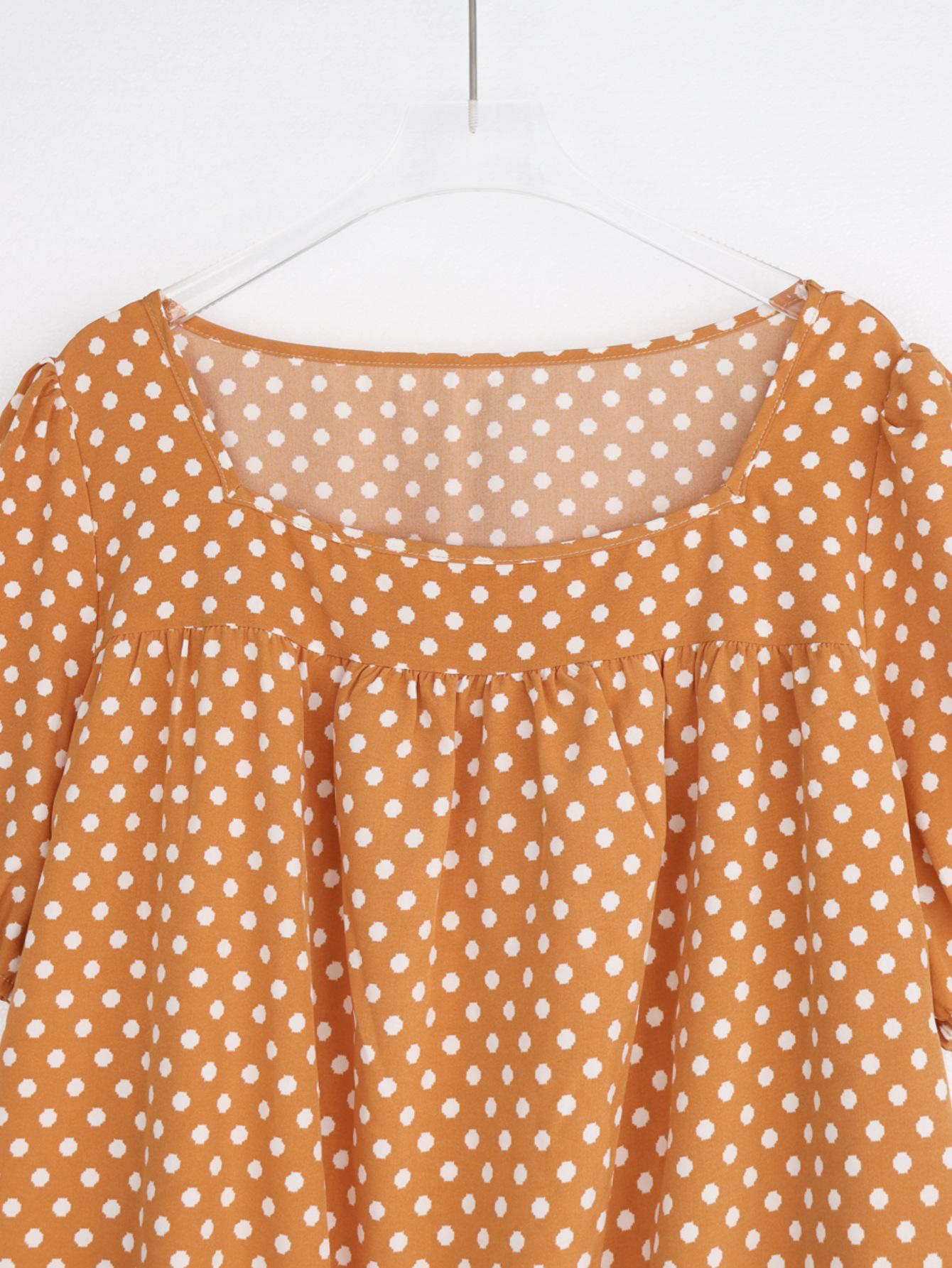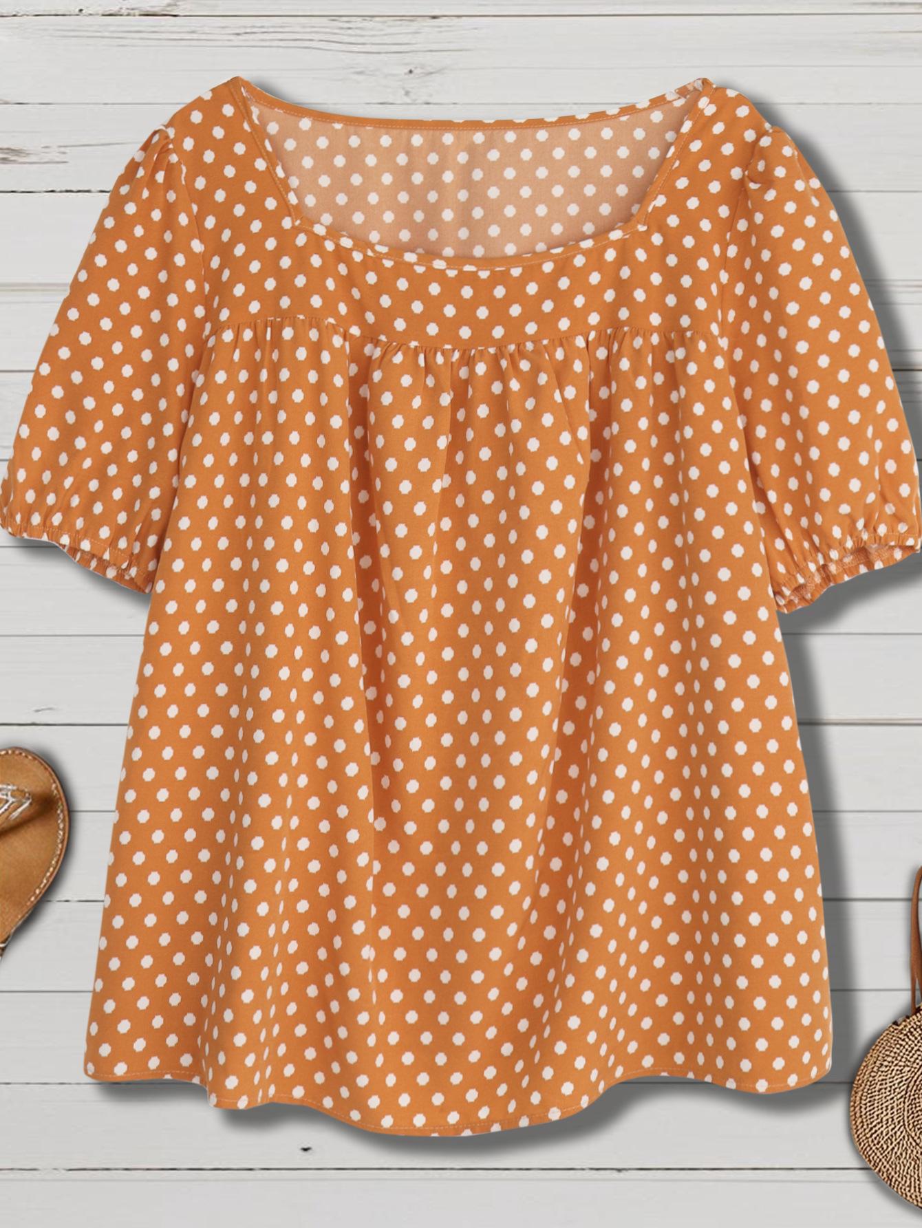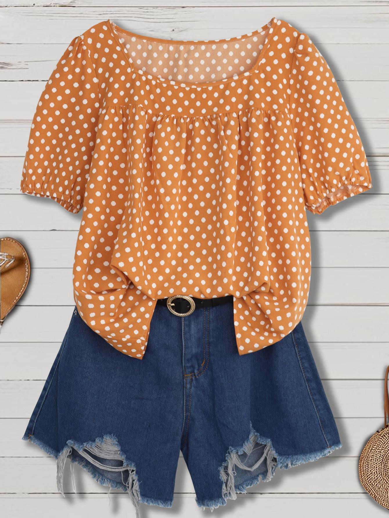 Estilo Nuevo Europeo y Americano Chifón Cuello Redondo Tops de Chifón Temperamento Viajero Comercio Exterior Jersey Lunares Talla Grande Camisas de Mujer al Por Mayor