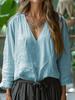 Exportación Transfronteriza Ropa de Mujer 2025 Verano Estilo Europeo y Americano Cuello en V Manga Larga con Volantes Camisas de Color Puro Tops para Mujeres K41487