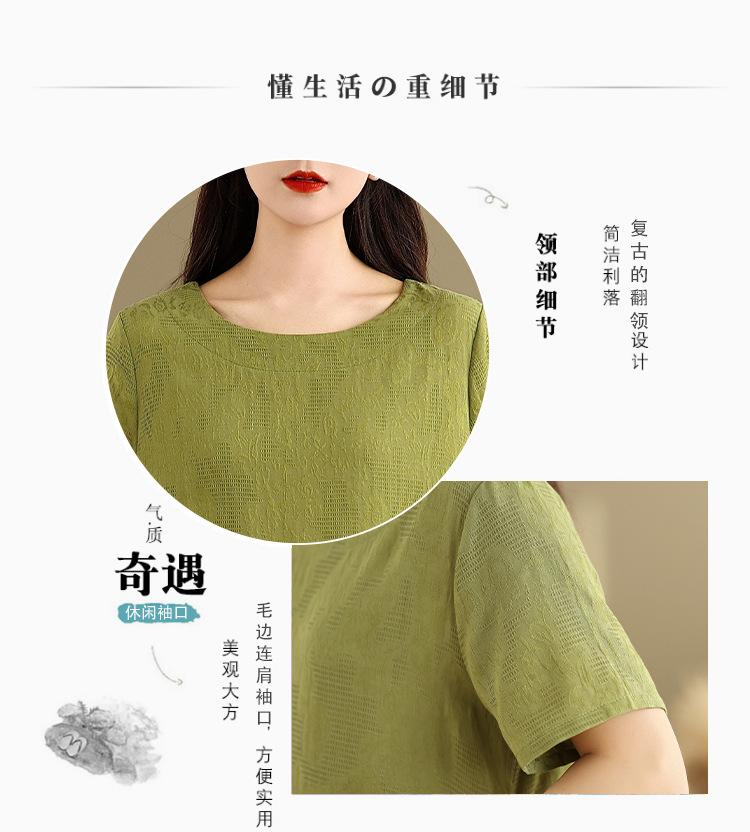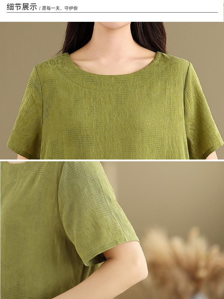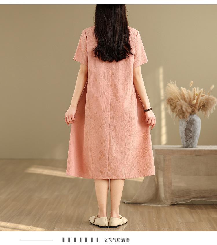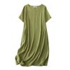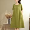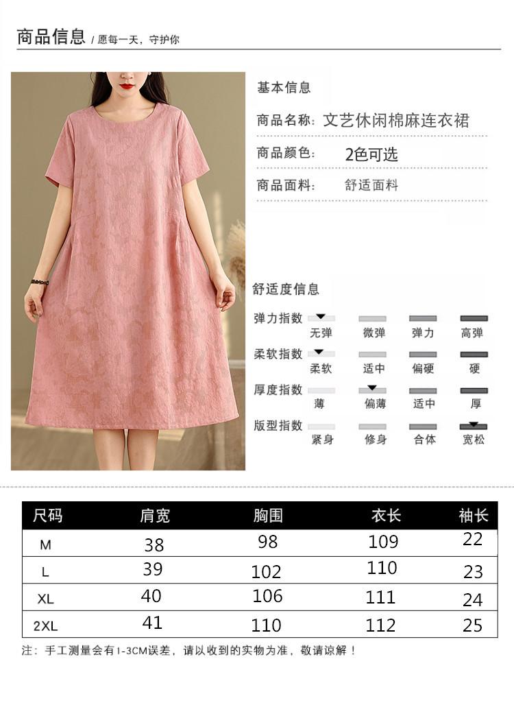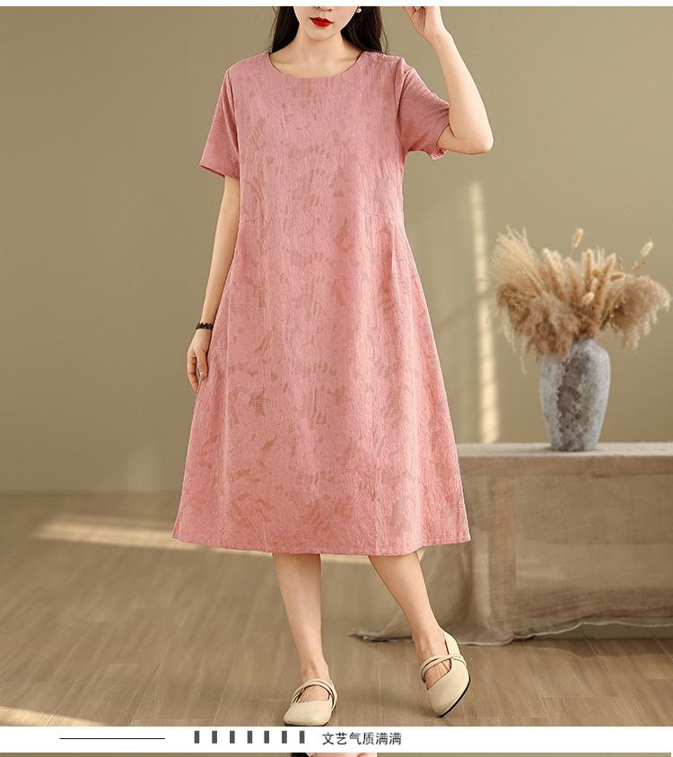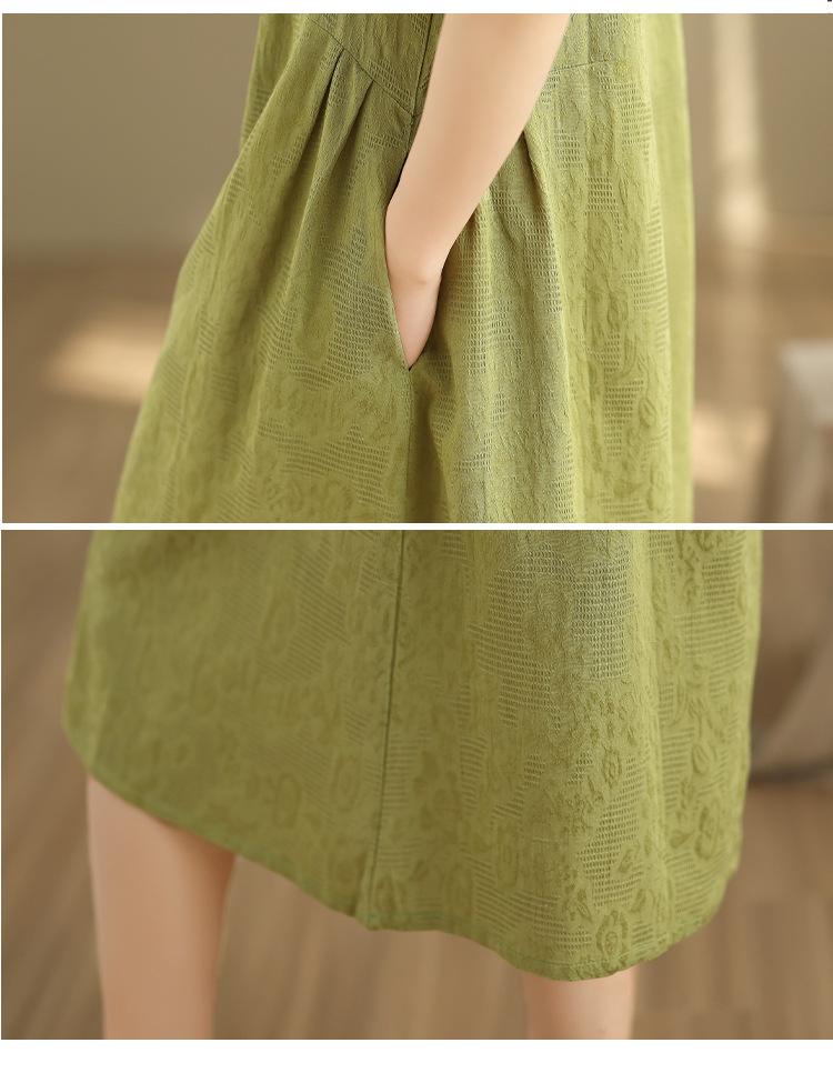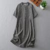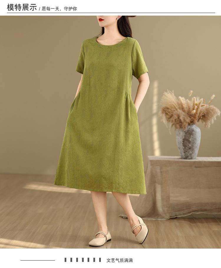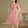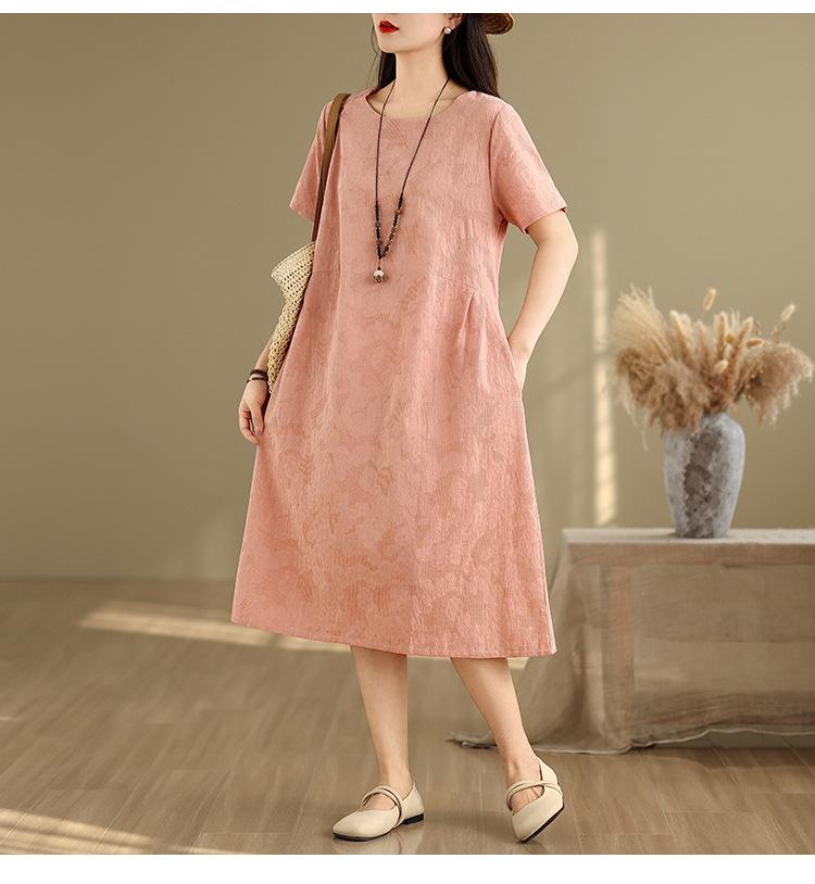 2025 Nuevo Verano Moda Casual Adelgazante Holgado Estilo Occidental Jacquard Algodón y Lino Vestido de Manga Corta Midi Mujer