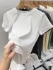2025 nueva camiseta blanca de manga corta con ribete de encaje patchwork para mujer, verano, sentido del diseño, corta, hombro regular pequeño, camiseta top