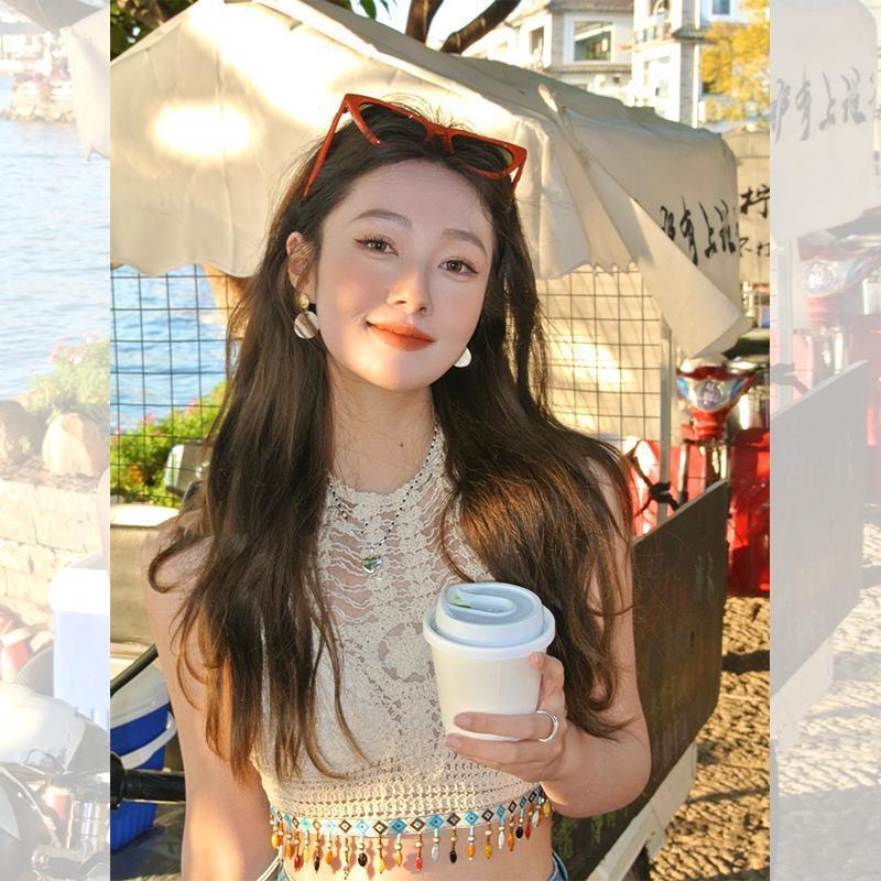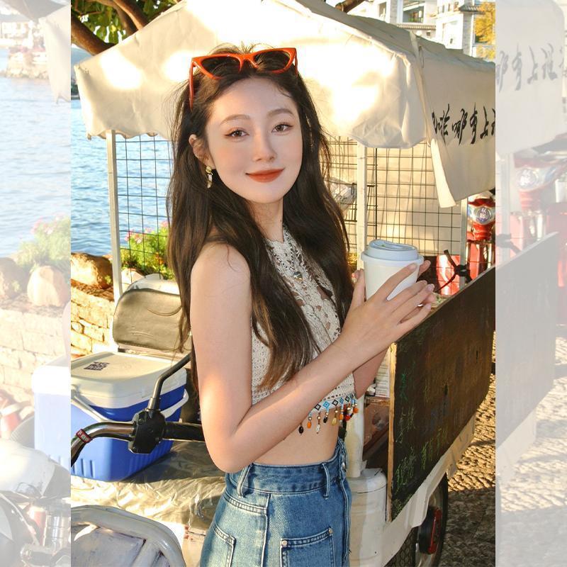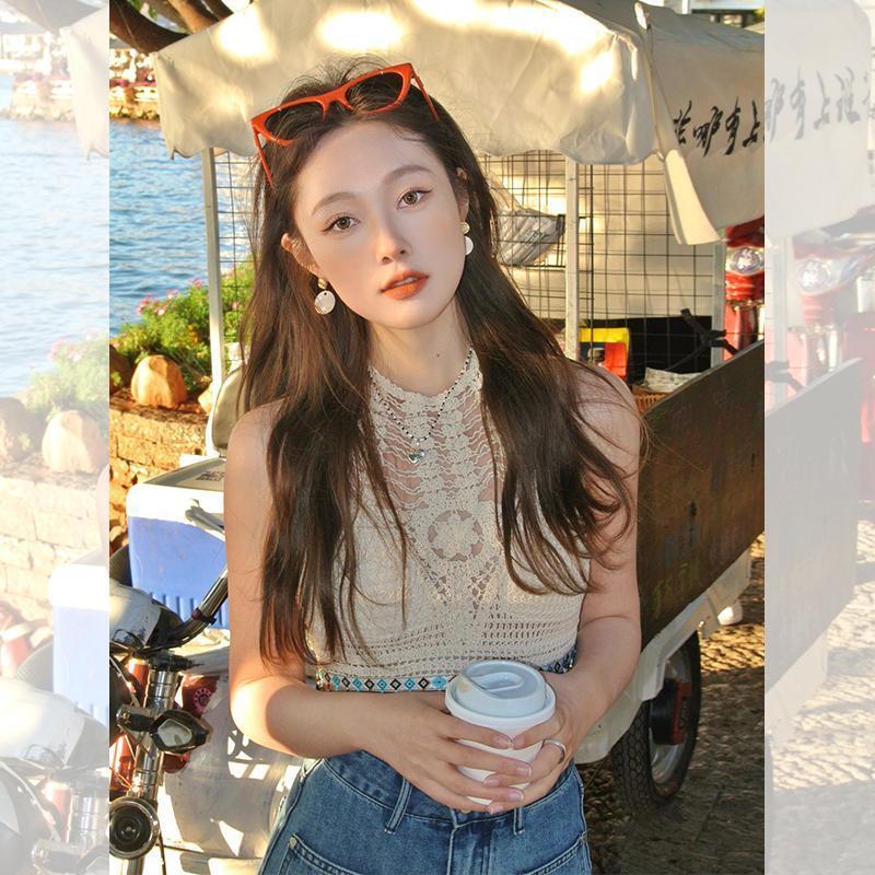 Compra Chic Francés Único Top de Punto sin Mangas Diseño Nicho Pequeño Chaleco Corto Tirantes para Mujer Verano al por mayor en Joom.pro