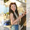 Chic Francés Único Top de Punto sin Mangas Diseño Nicho Pequeño Chaleco Corto Tirantes para Mujer Verano