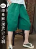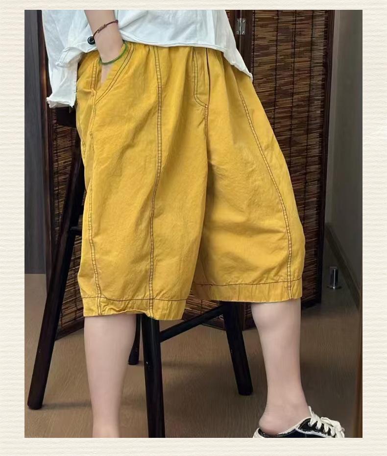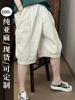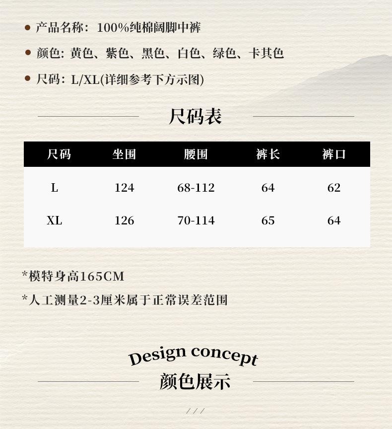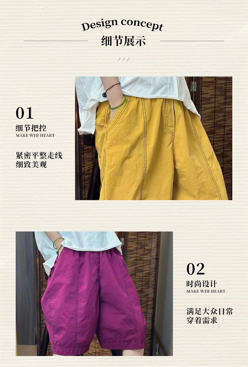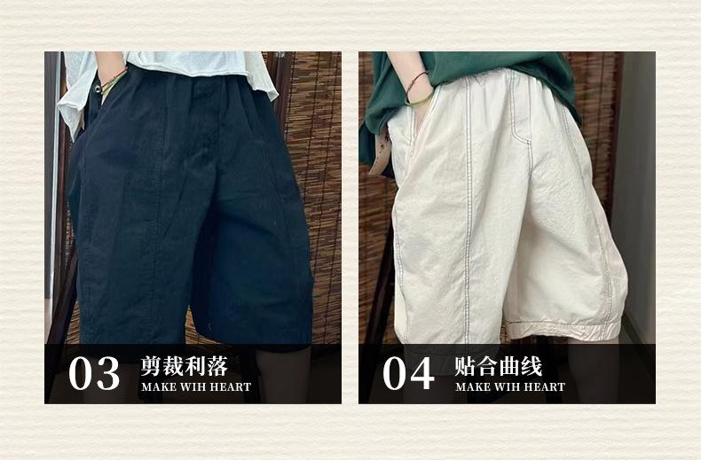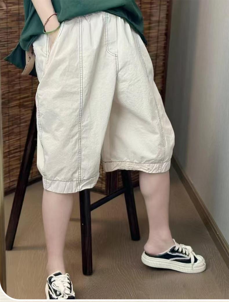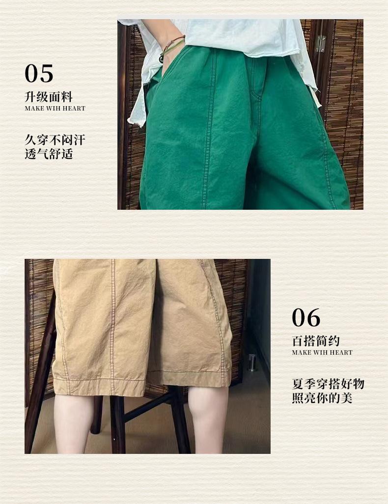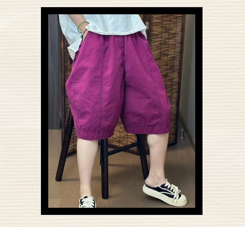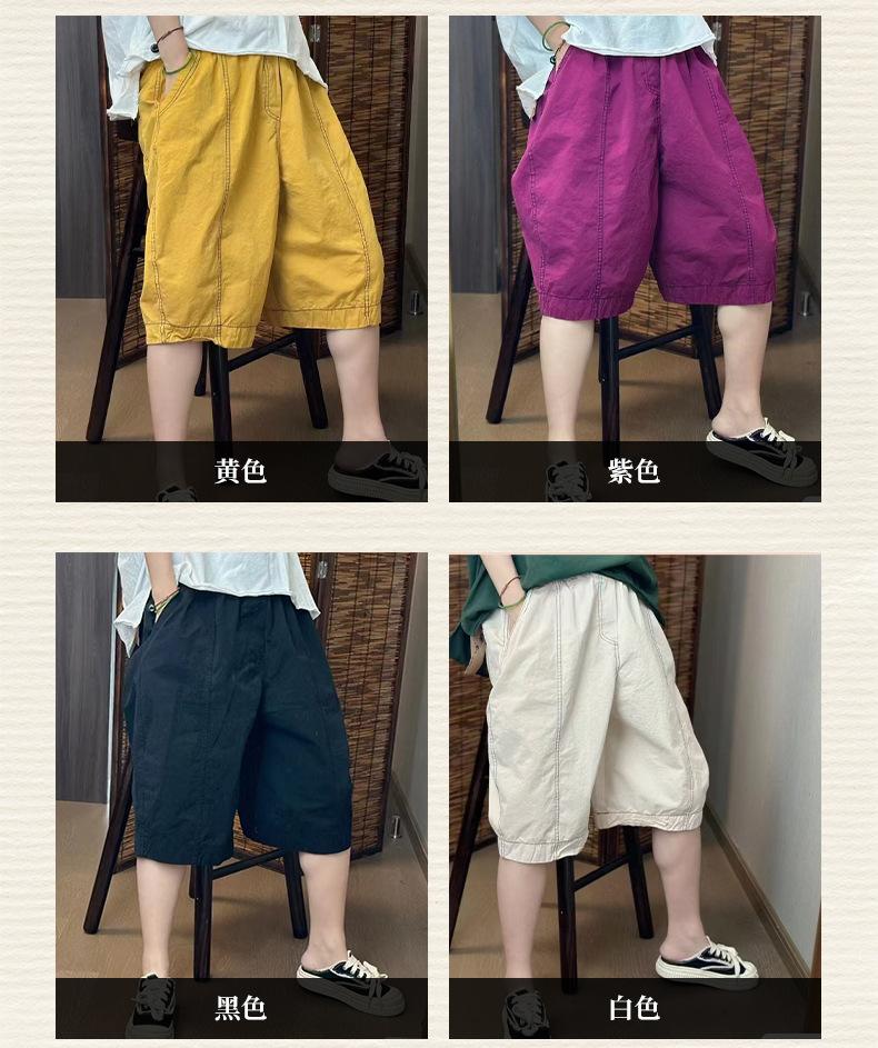 Verano Nuevo Color Sólido Algodón Puro Pierna Ancha Pantalones Rectos Transpirables de Cintura Elástica para Mujer Largo Medio Sueltos Casuales Pantalones de Mujer Talla Extra