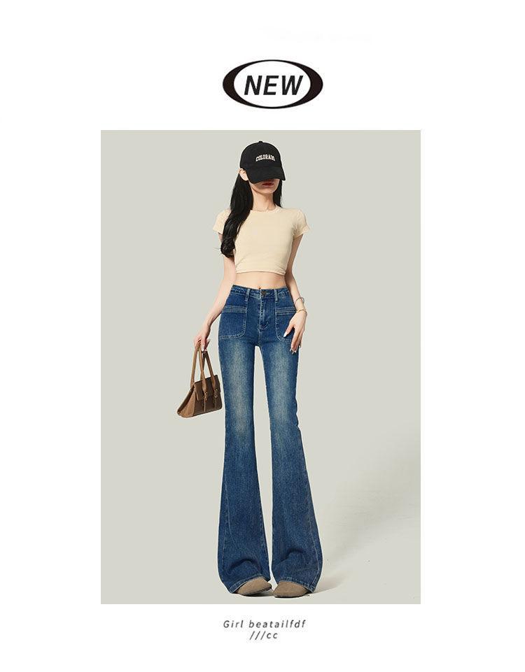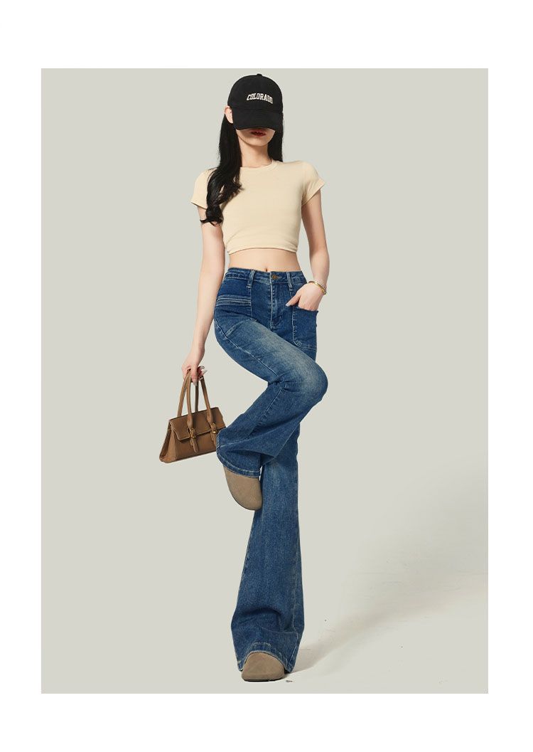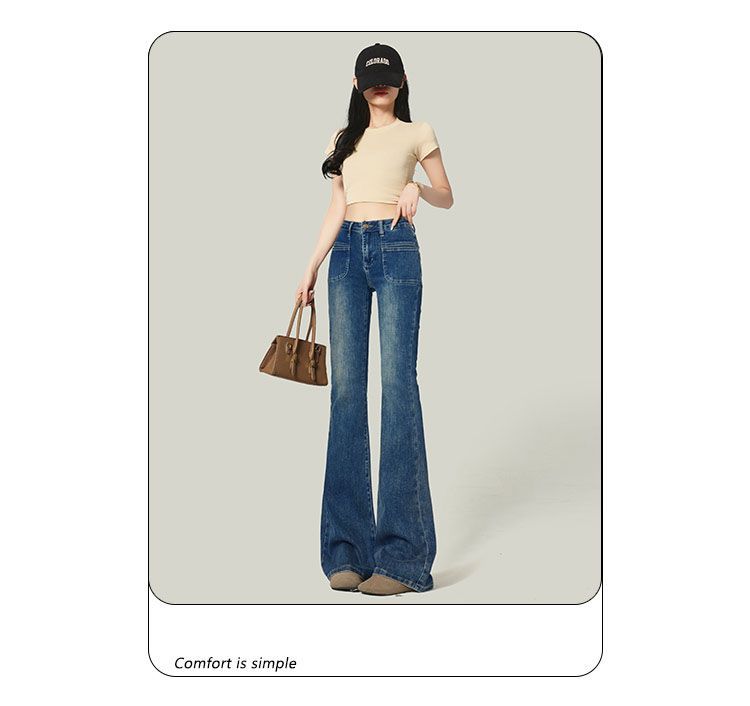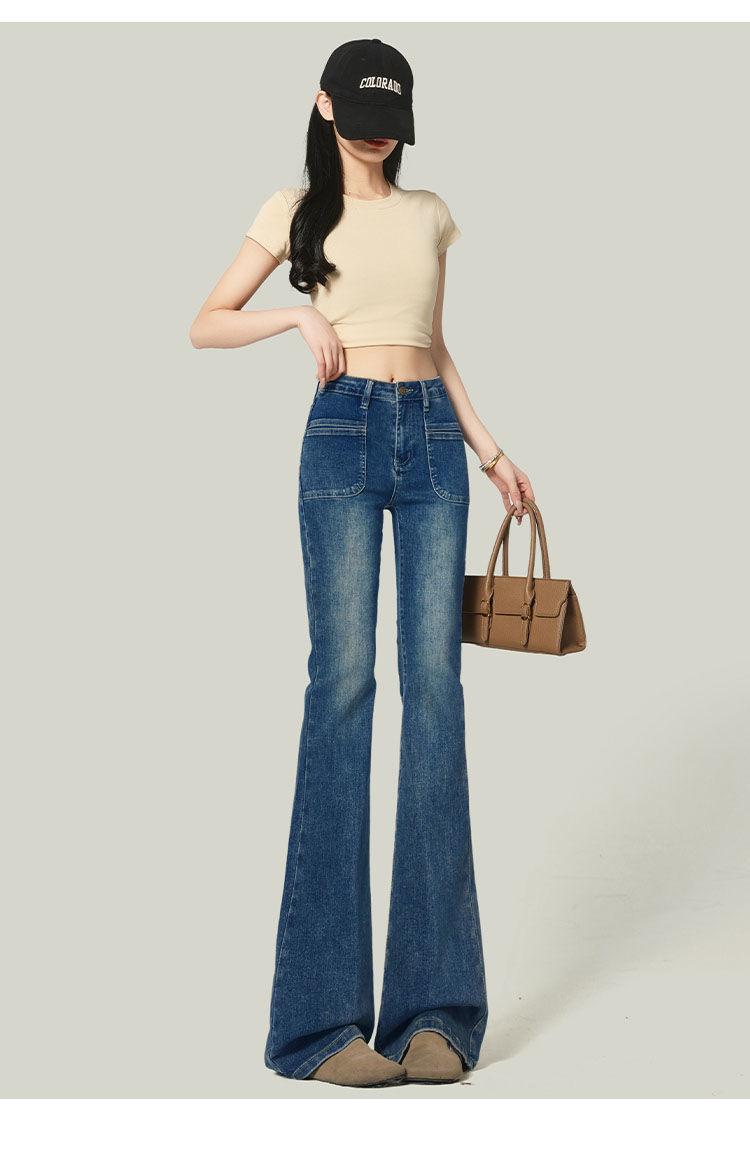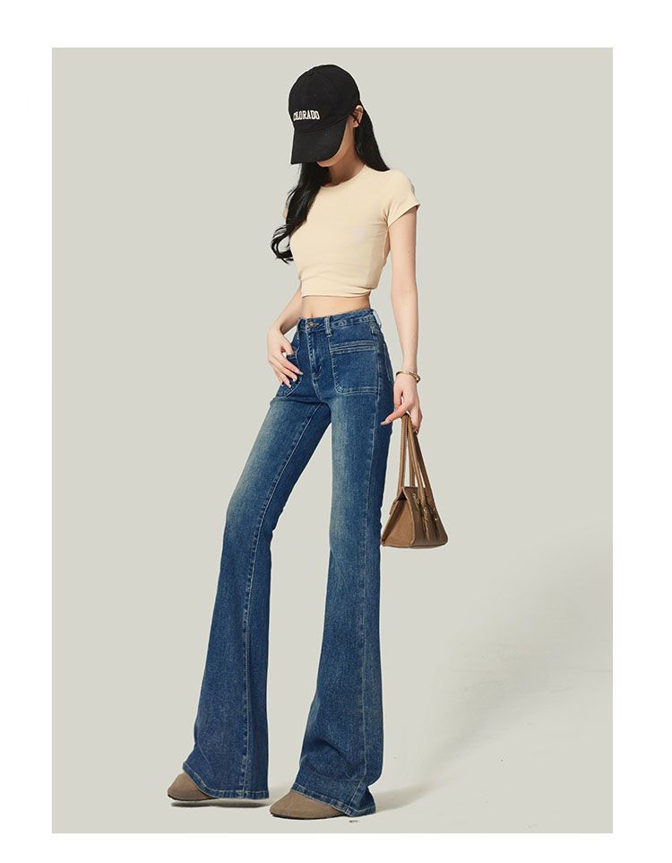 Ropa de Mujer 2025 Pantalones Acampanados Azules Retro Altos Pequeño Bolsillo Delantero Pantalones Micro Denim Modernos Adelgazantes