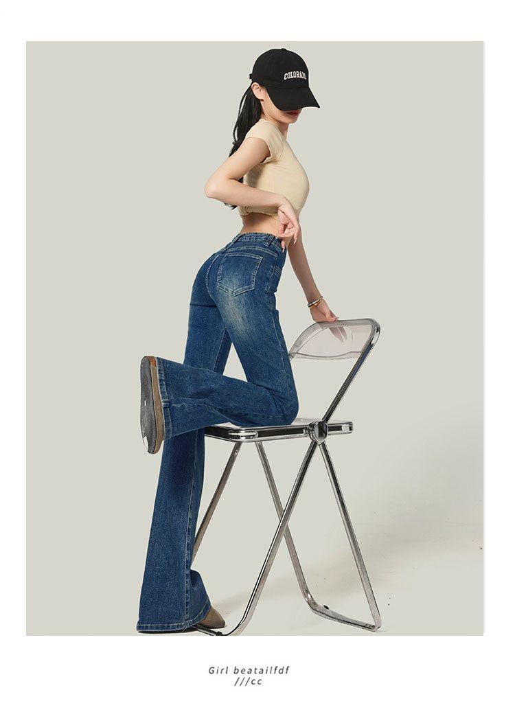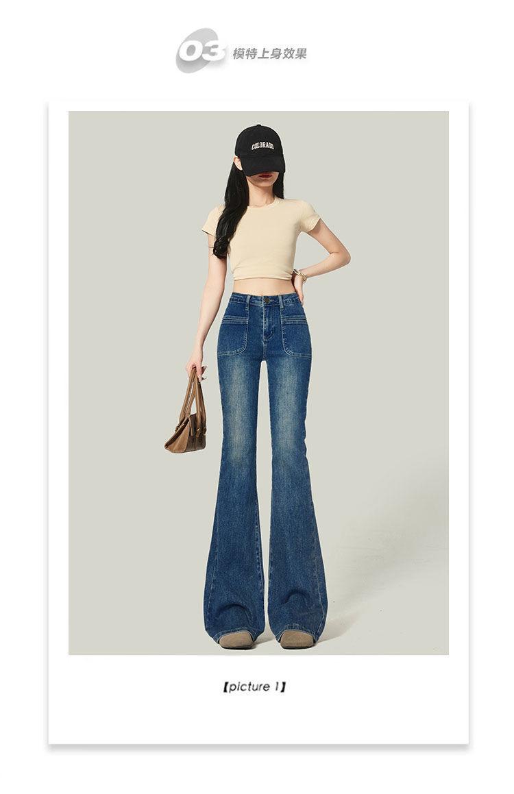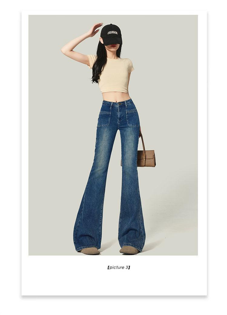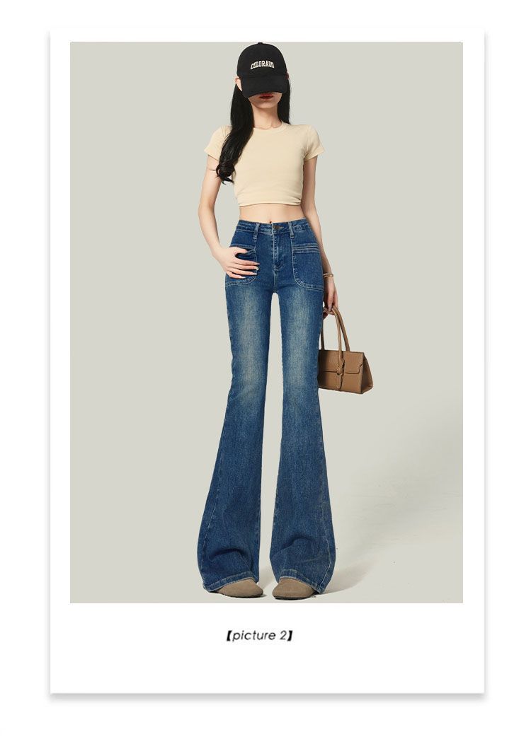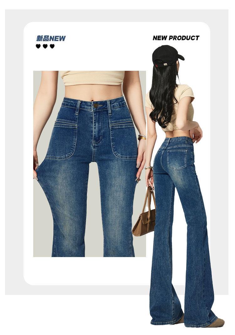 Ropa de Mujer 2025 Pantalones Acampanados Azules Retro Altos Pequeño Bolsillo Delantero Pantalones Micro Denim Modernos Adelgazantes