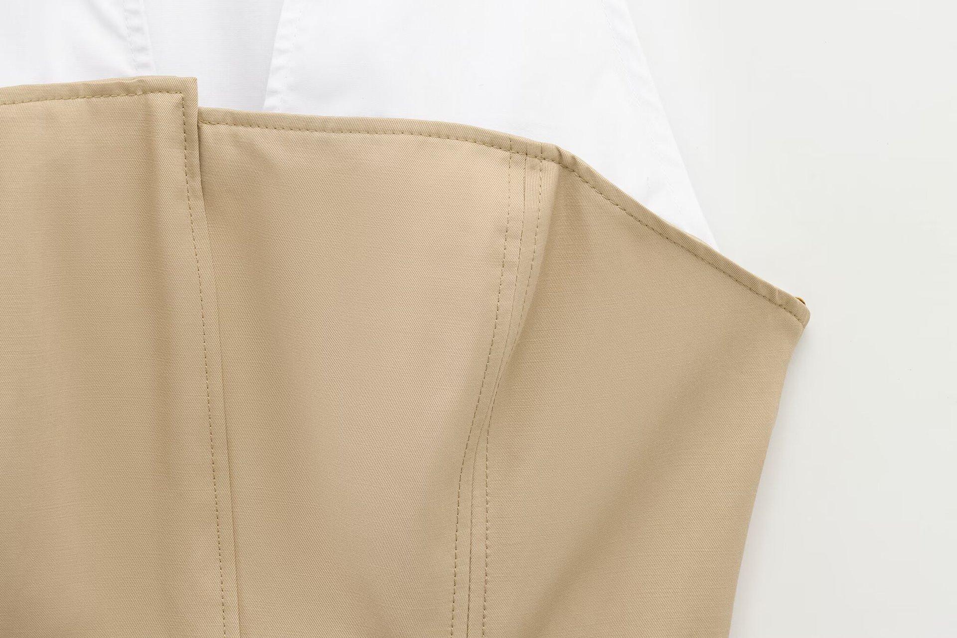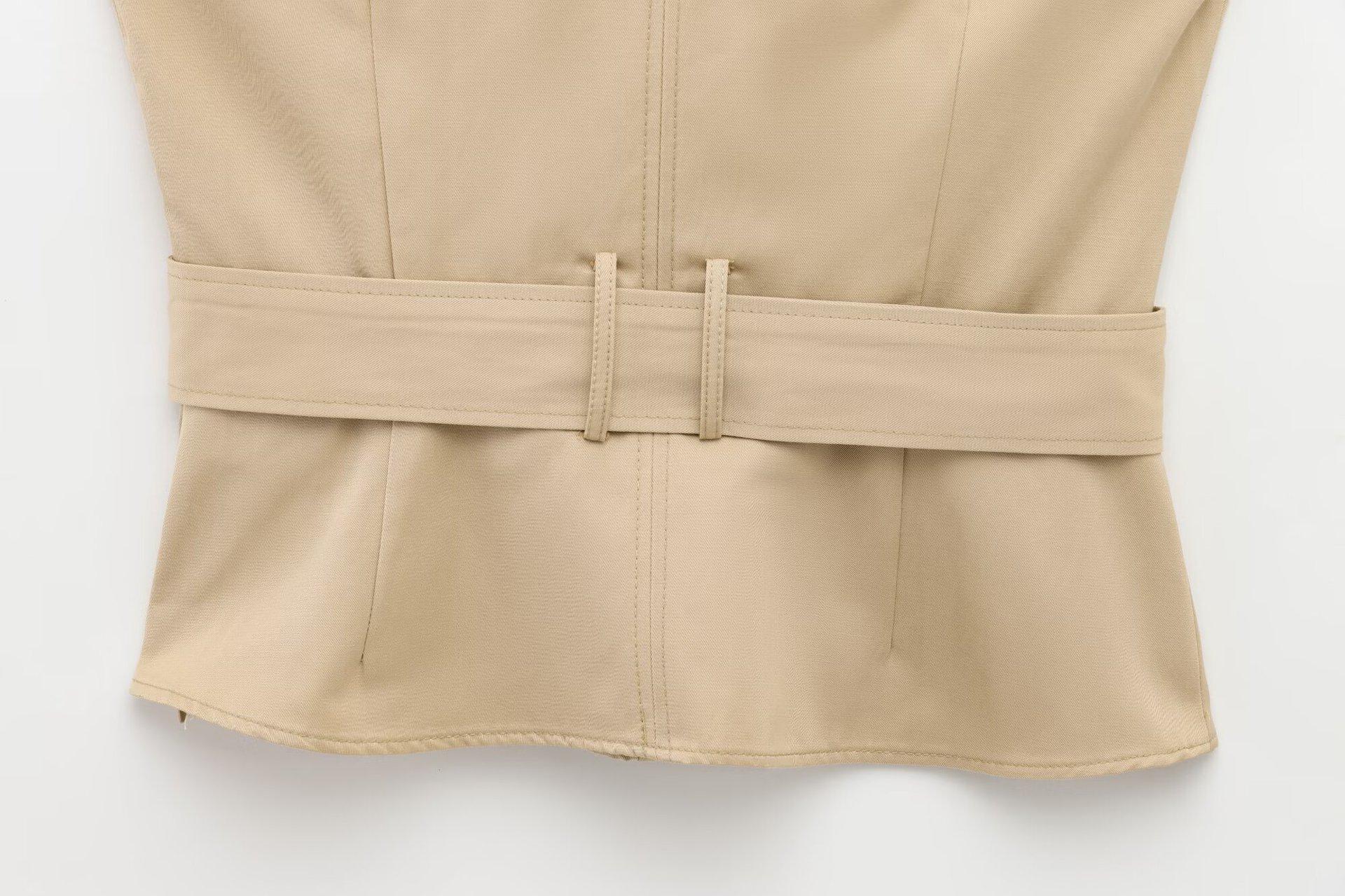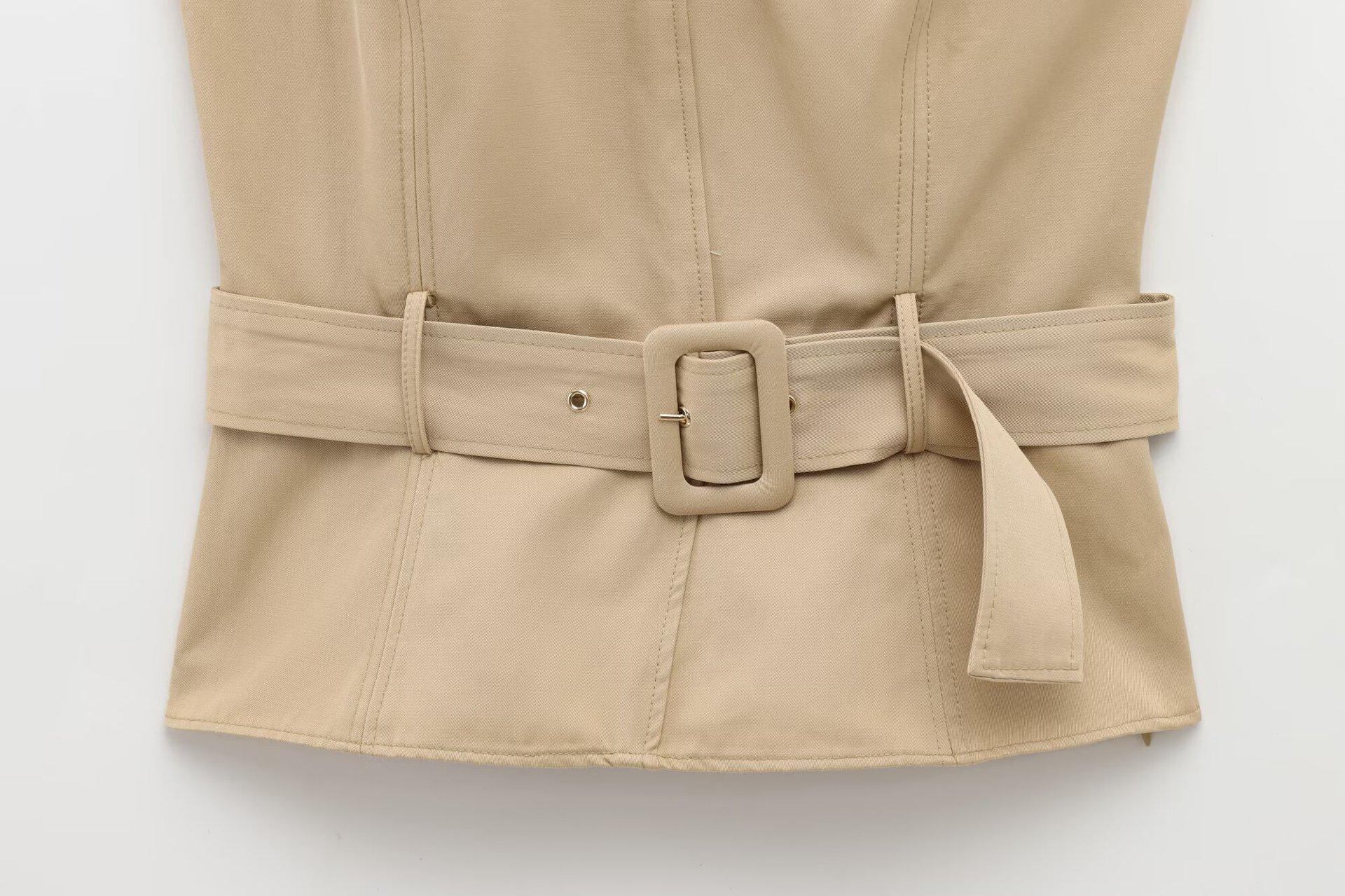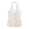Ropa de Mujer Nueva Primavera 2025 Diseño Casual Europeo y Americano Cuello Halter Parcheado de Color en Contraste Top Ajustado con Cinturón