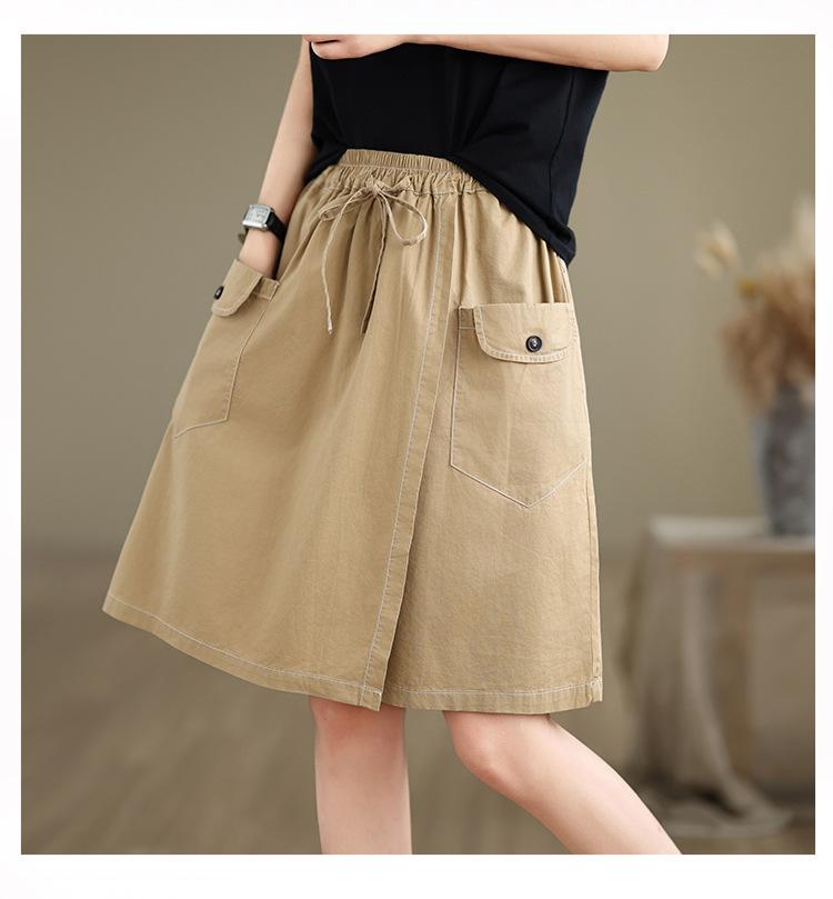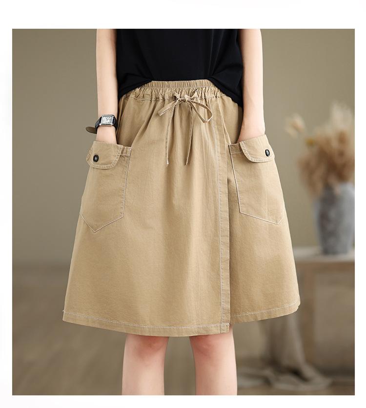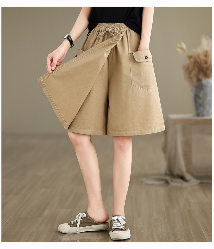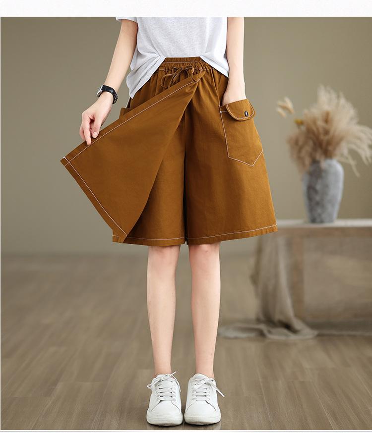 2025 Tiro Real Moda de Verano Versátil Falda Línea A Algodón Fino Falda Pantalón Cinco Puntos Cintura Alta Shorts Falda Ropa de Trabajo Japonesa
