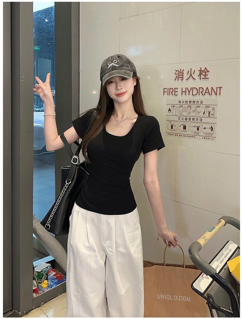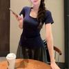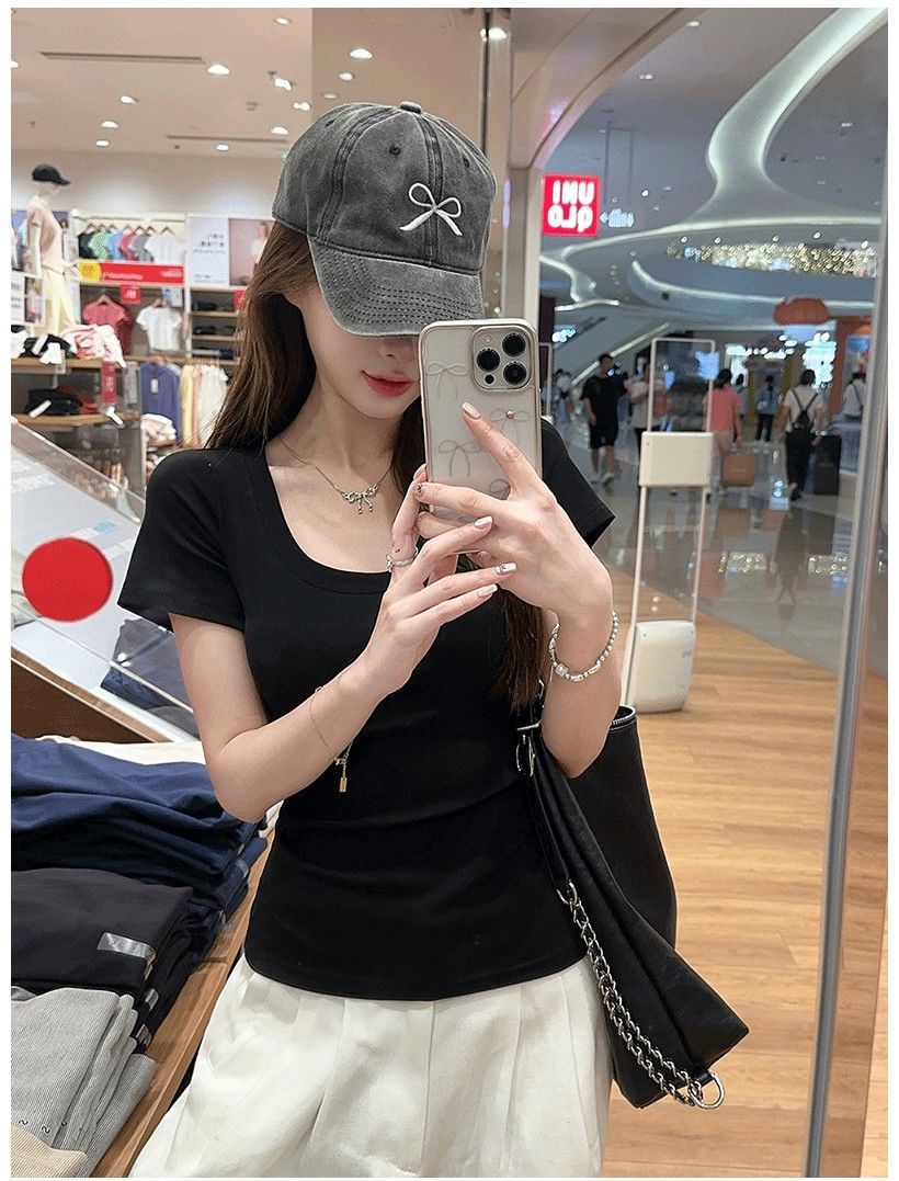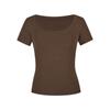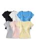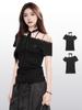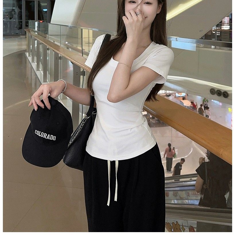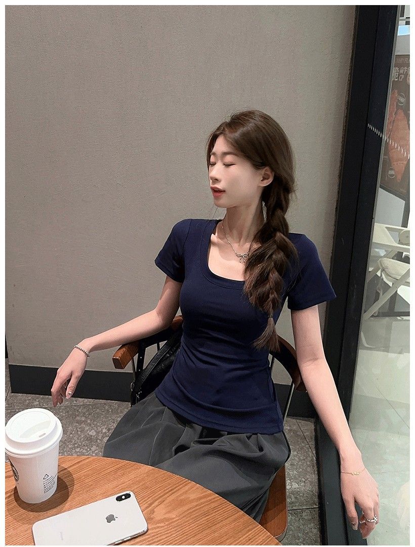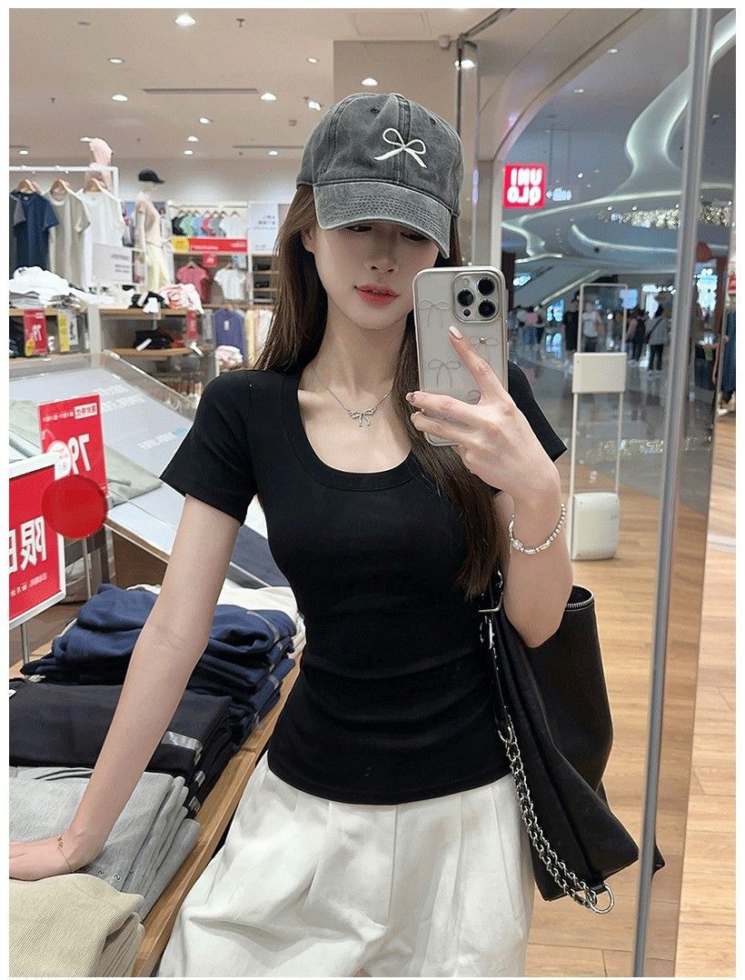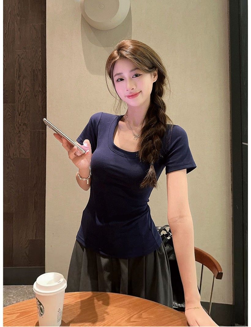 Playera Corta de Hombro Derecho Gris Verano 2025 Elástica Nueva Slim Manga Corta Cuello Redondo Grande Slim Sexy Top