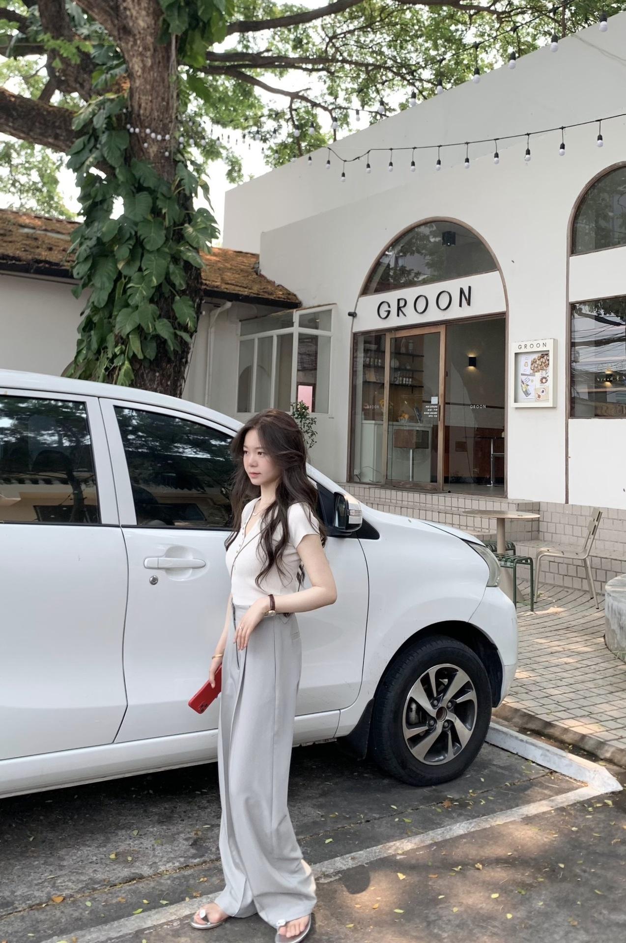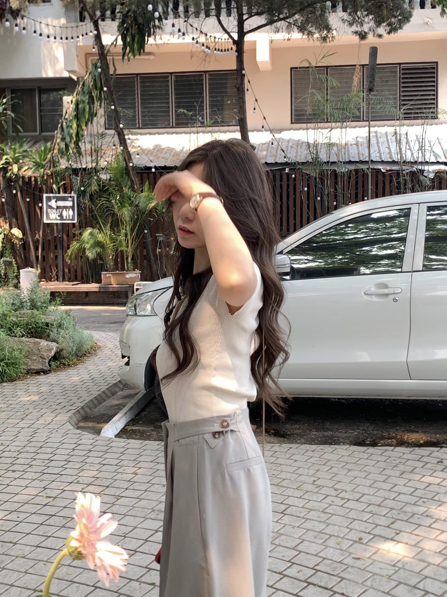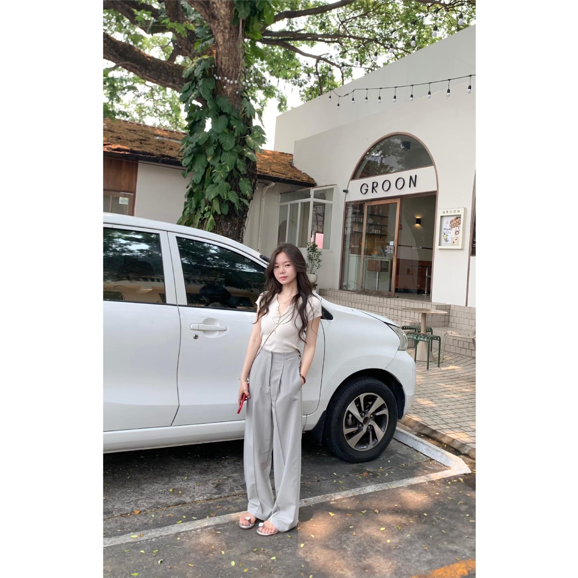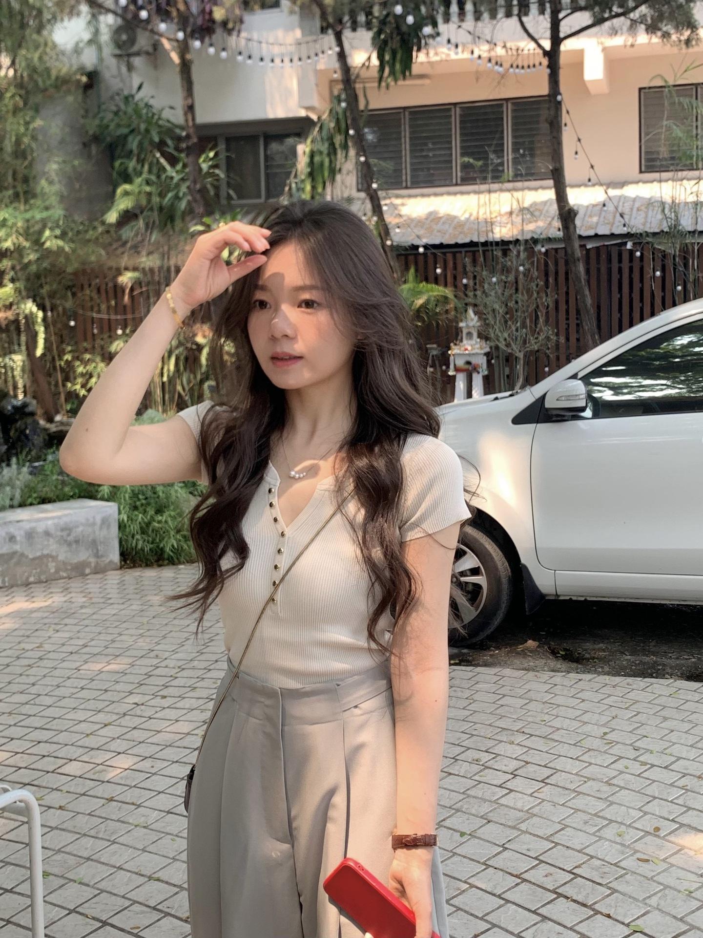 Playera de Punto de Seda Helada con Cuello en V y Manga Corta para Mujer en Verano Diseño Delgado Ajuste Entallado Hombro Derecho Corta Top Dulce y Picante para Personas Pequeñas