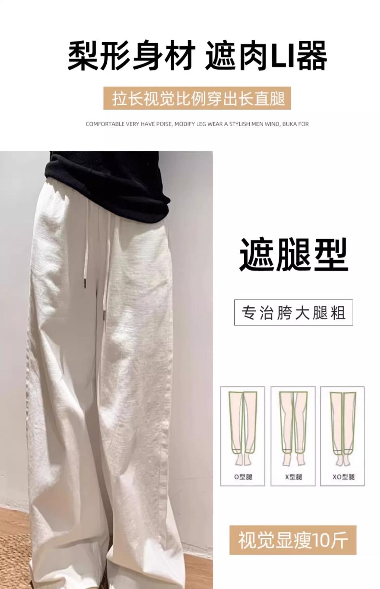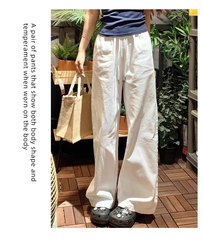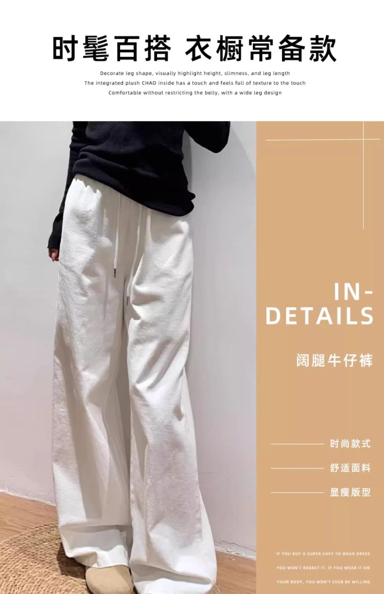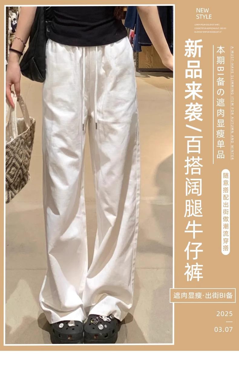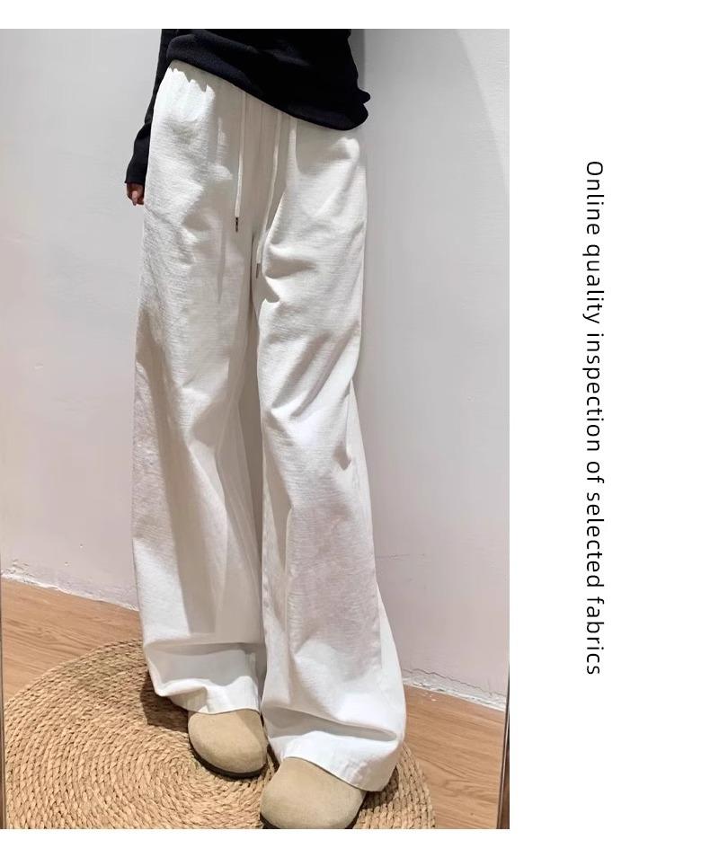 Pantalones blancos de pierna ancha para mujer Primavera y Otoño 2025 Nuevos Cintura alta Sueltos Adelgazantes Pequeños mezclilla Algodón y lino Pantalones rectos