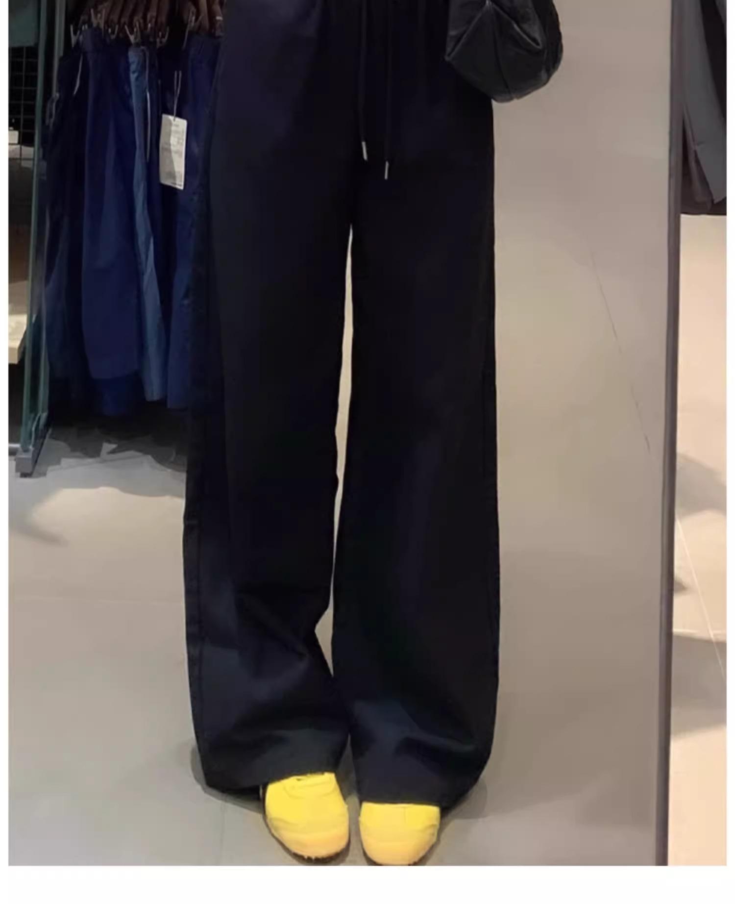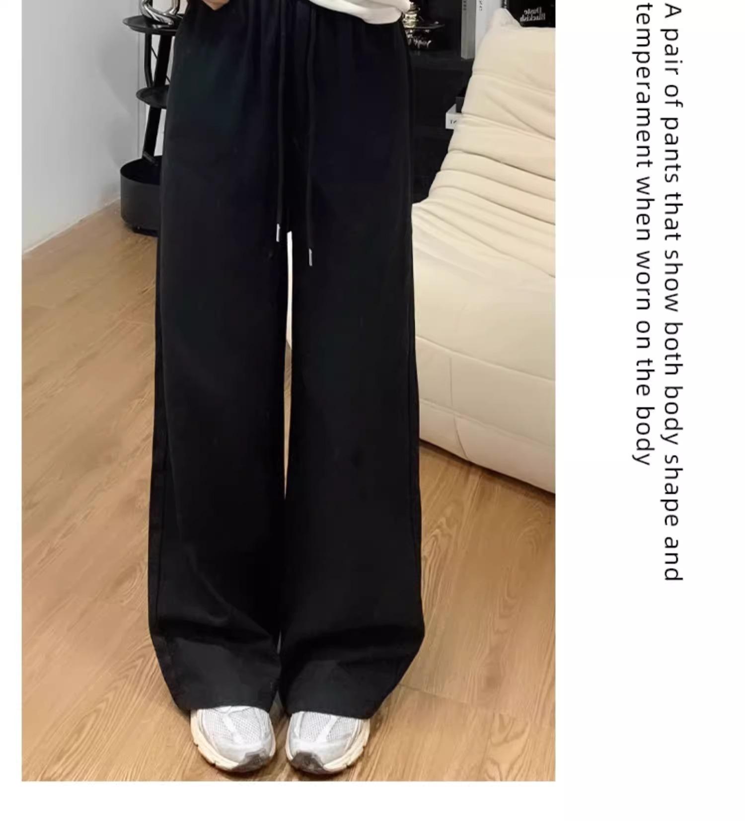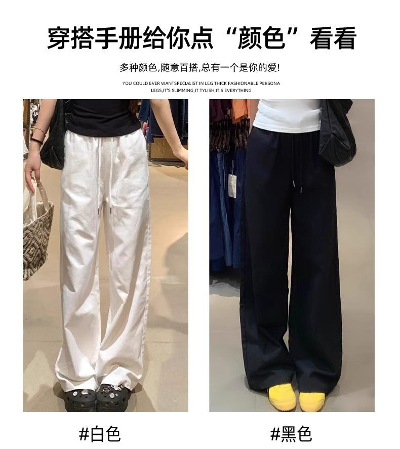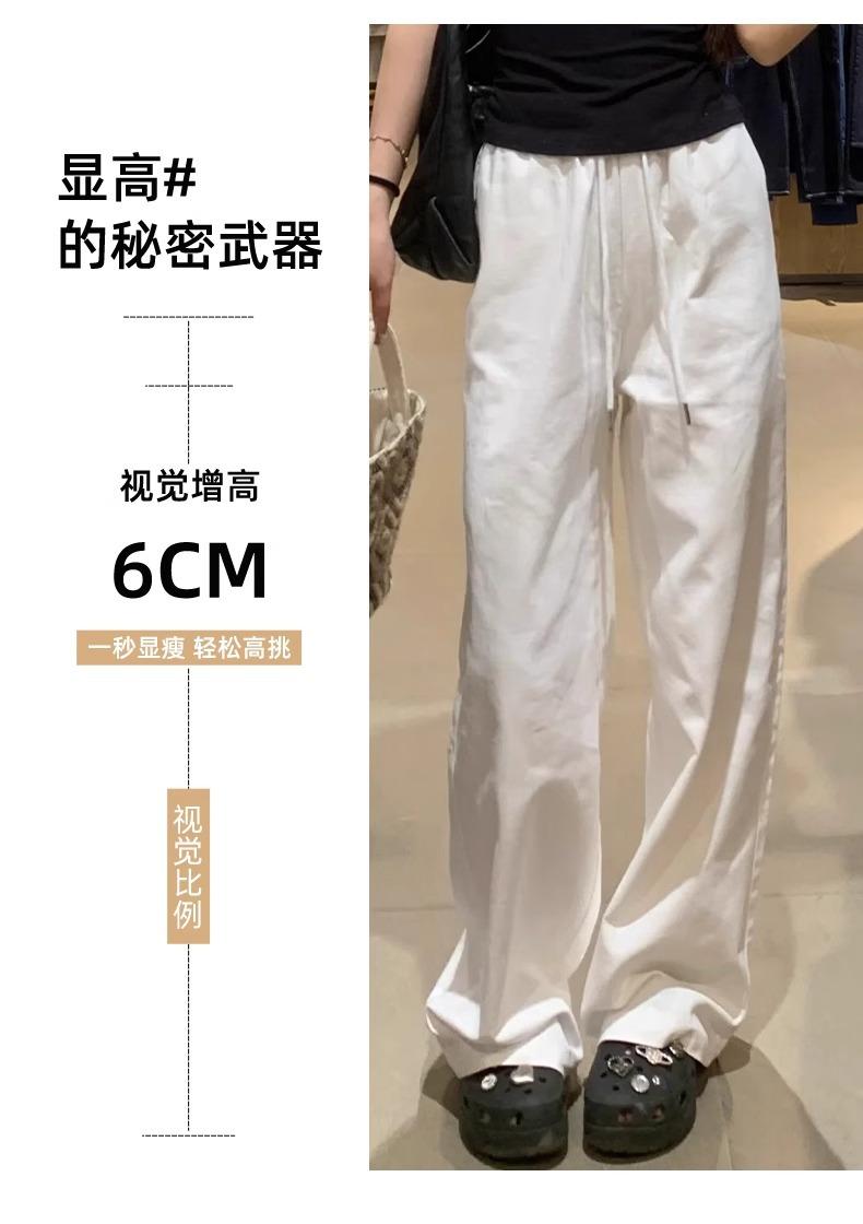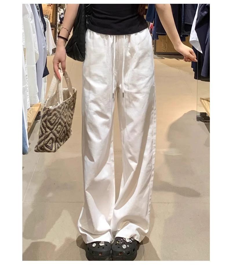 Pantalones blancos de pierna ancha para mujer Primavera y Otoño 2025 Nuevos Cintura alta Sueltos Adelgazantes Pequeños mezclilla Algodón y lino Pantalones rectos