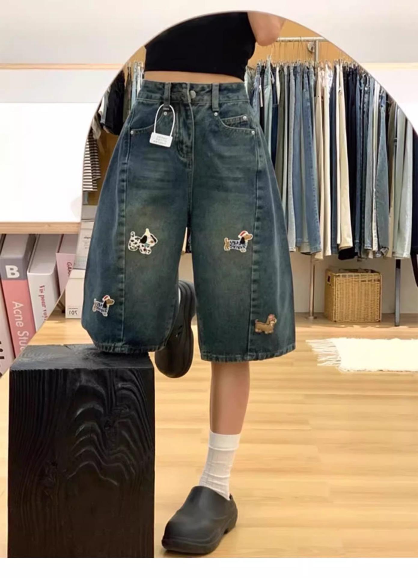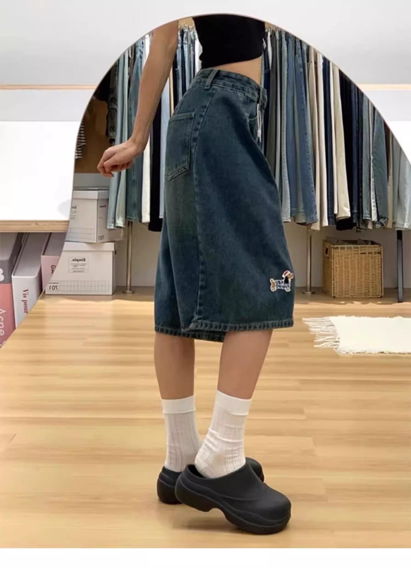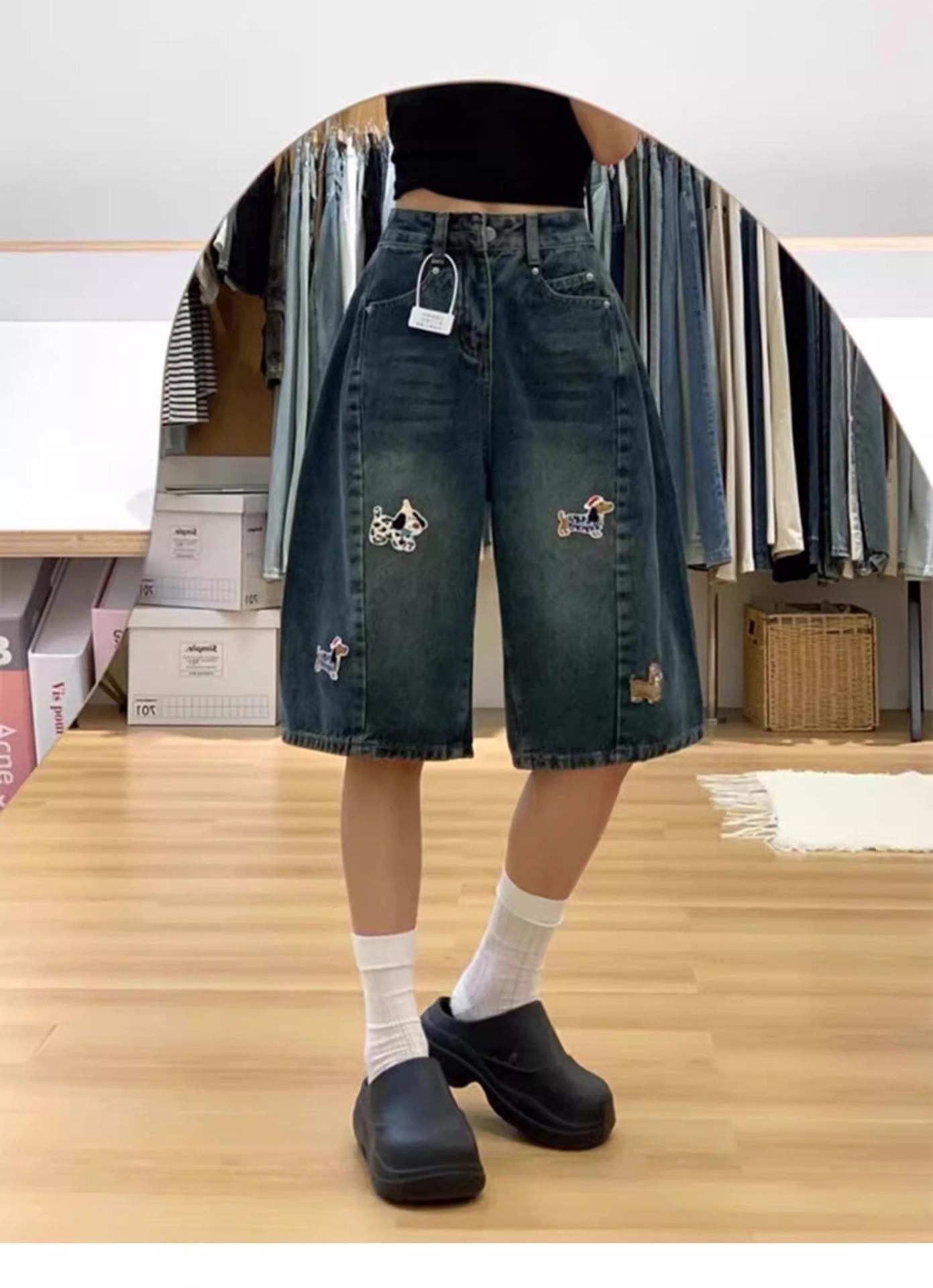 Compra Shorts de mezclilla azul americano retro de talla grande para mujer Verano Gordo mm Cintura alta Slim Rectos Pierna ancha Cinco puntos Medios al por mayor en Joom.pro