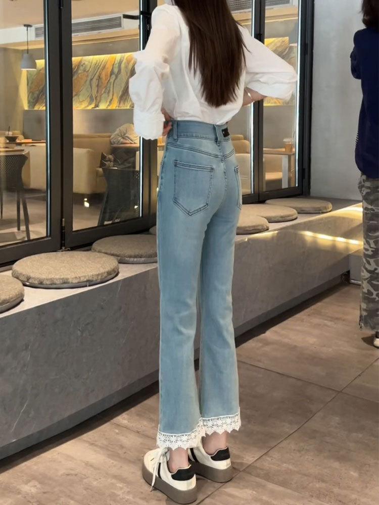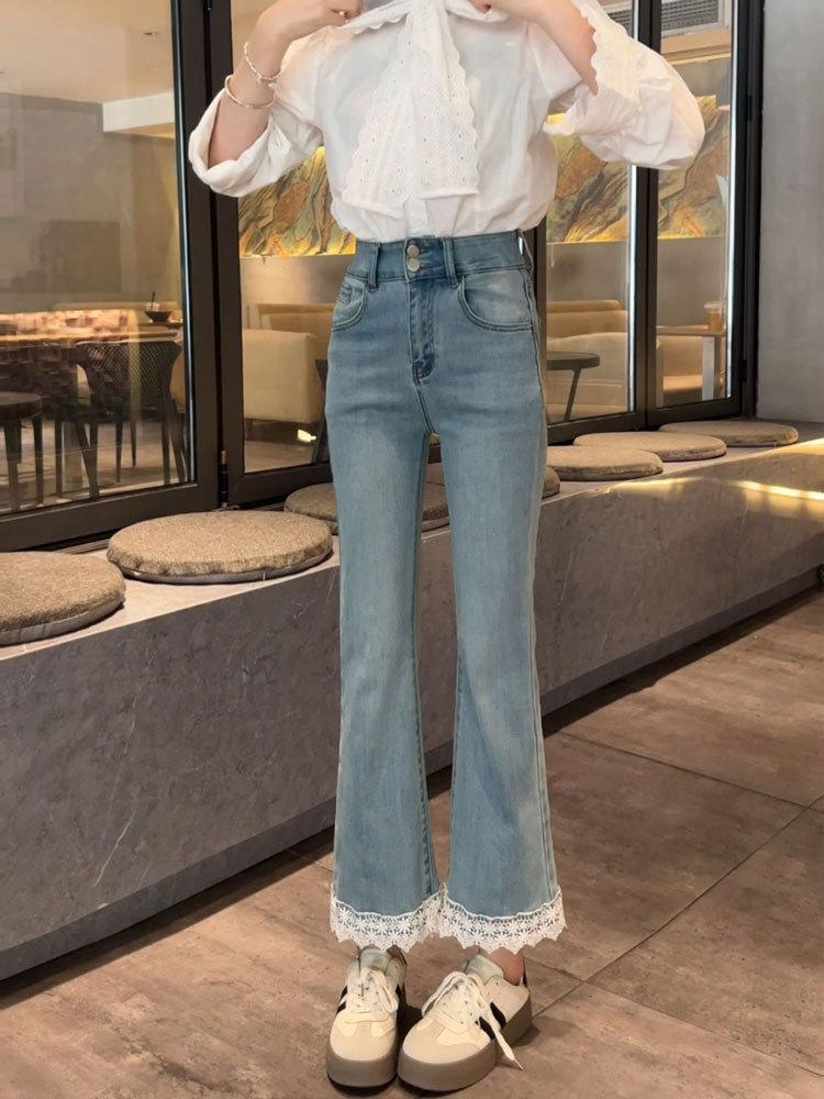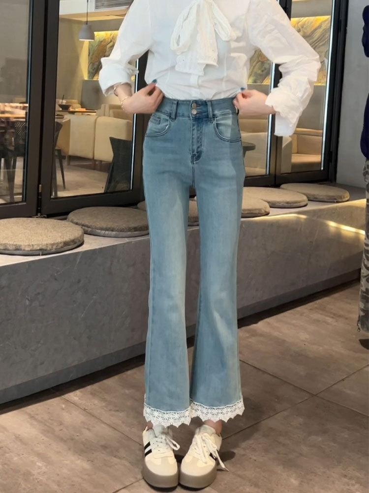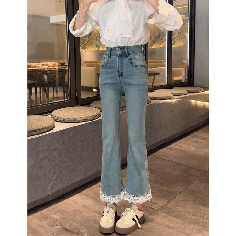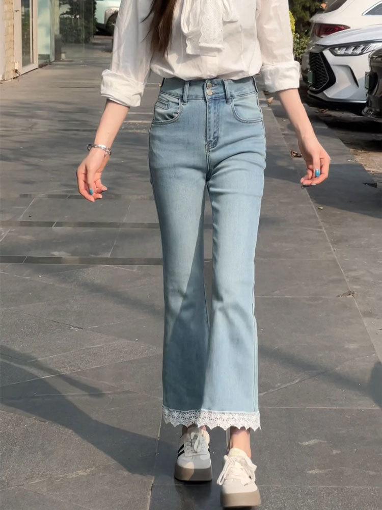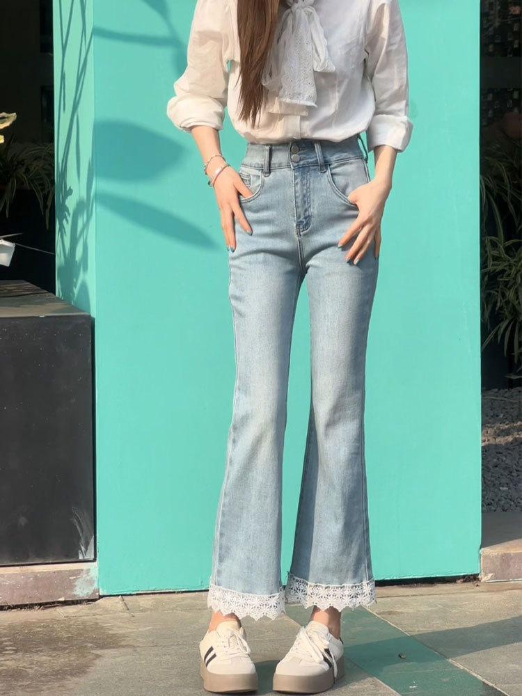 Compra Jeans Acampanados de Encaje para Mujer, Color Claro, Estilo Delgado de Verano, Talla Extra, Cintura Alta, Petite, Elásticos, Pantalones Acampanados Recortados al por mayor en Joom.pro