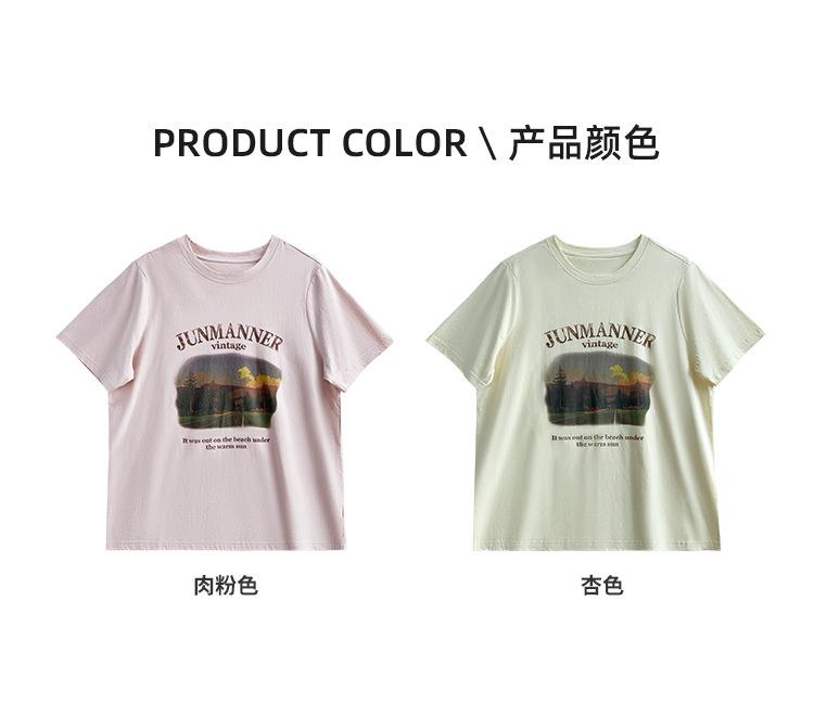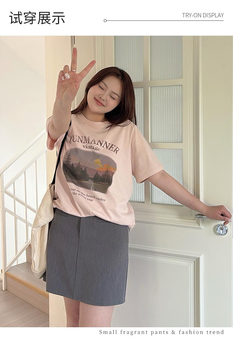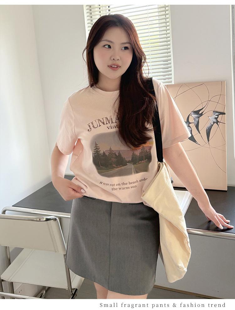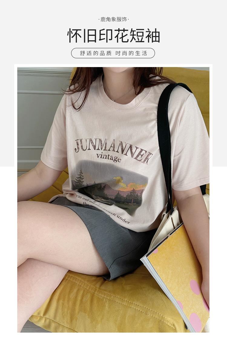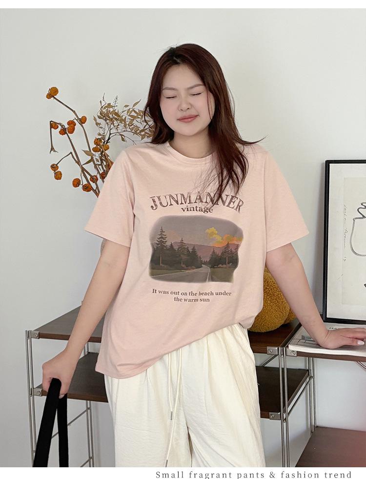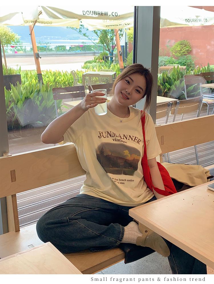 Talla grande Camiseta de algodón vintage holgada para mujer 2025 Verano Estampado de letras Top chica gordita Manga corta de longitud media