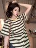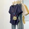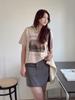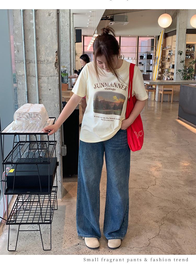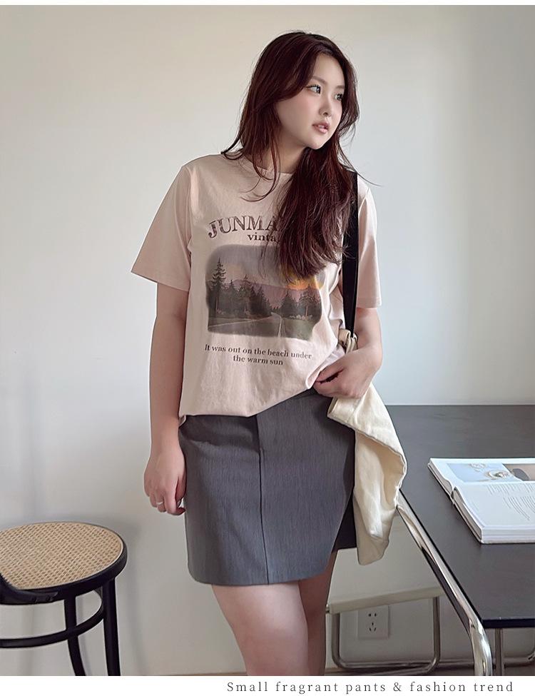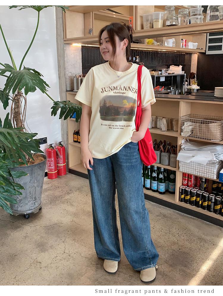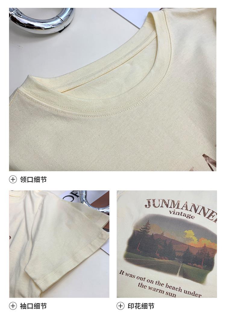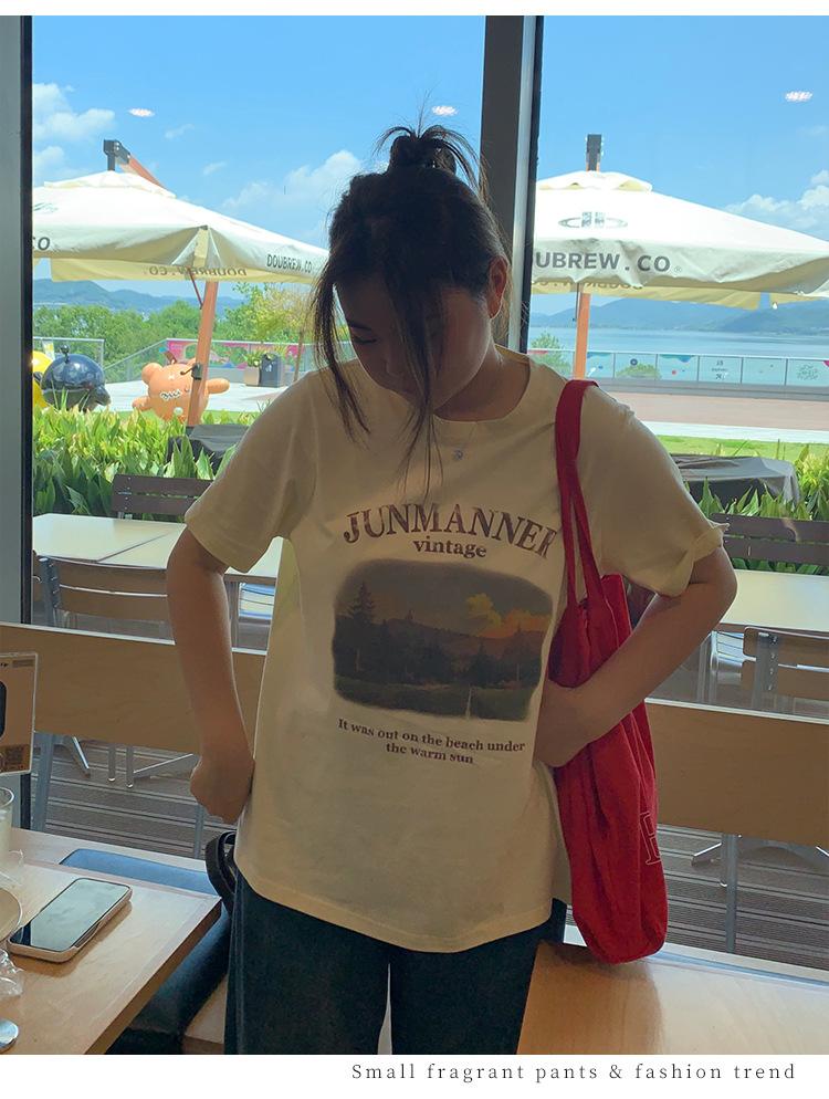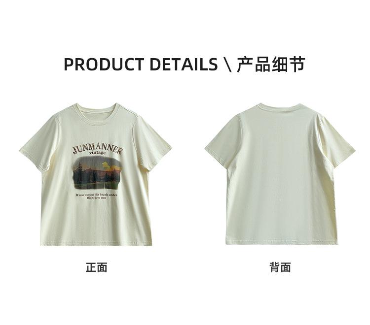 Talla grande Camiseta de algodón vintage holgada para mujer 2025 Verano Estampado de letras Top chica gordita Manga corta de longitud media