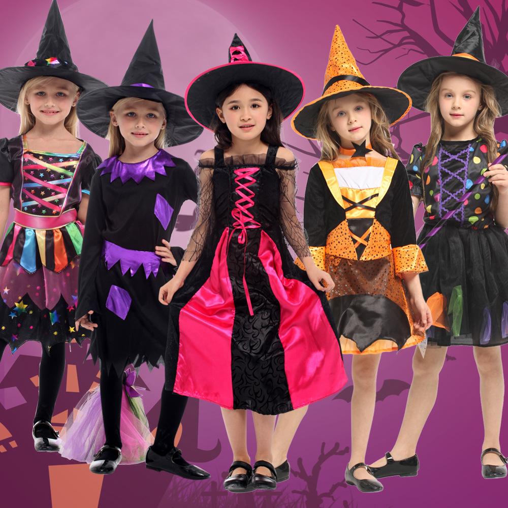 Halloween Cos Ropa de Bruja Disfraz de Bruja Sombrero Puntiagudo Disfraz para Disfrazarse Fiesta de Equipo de Halloween Cosplay