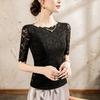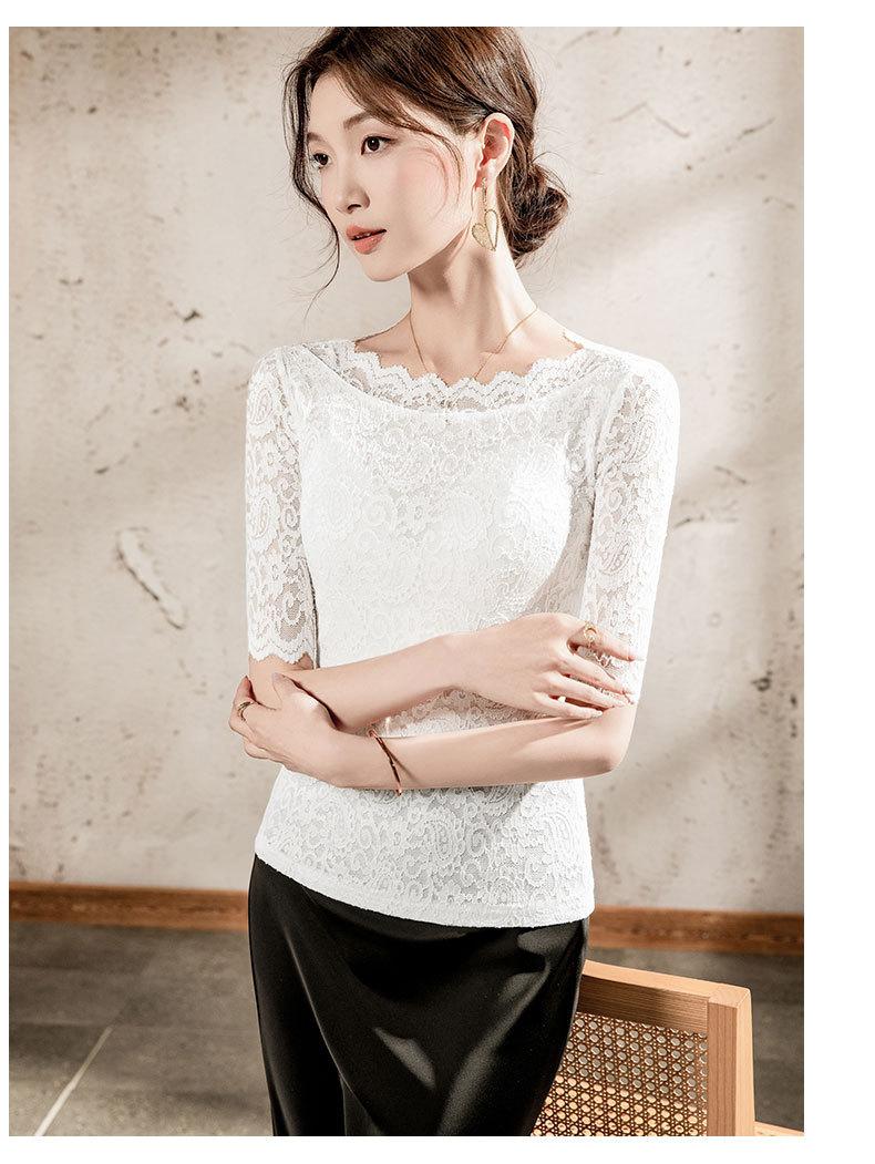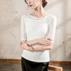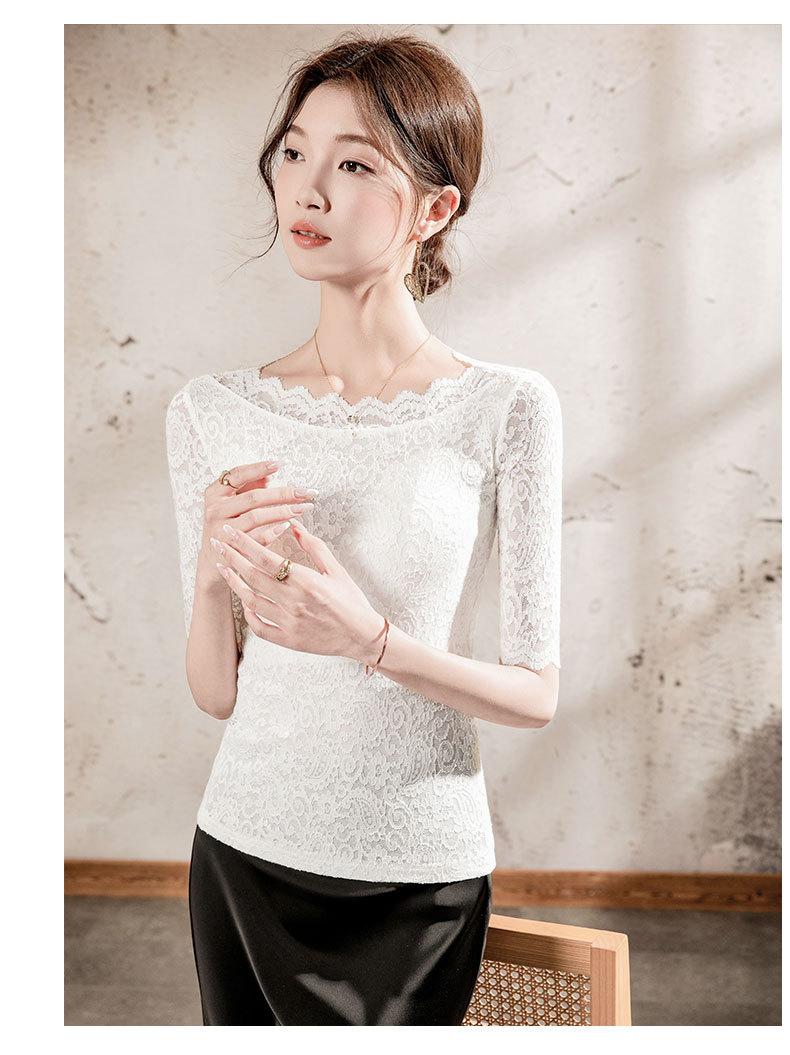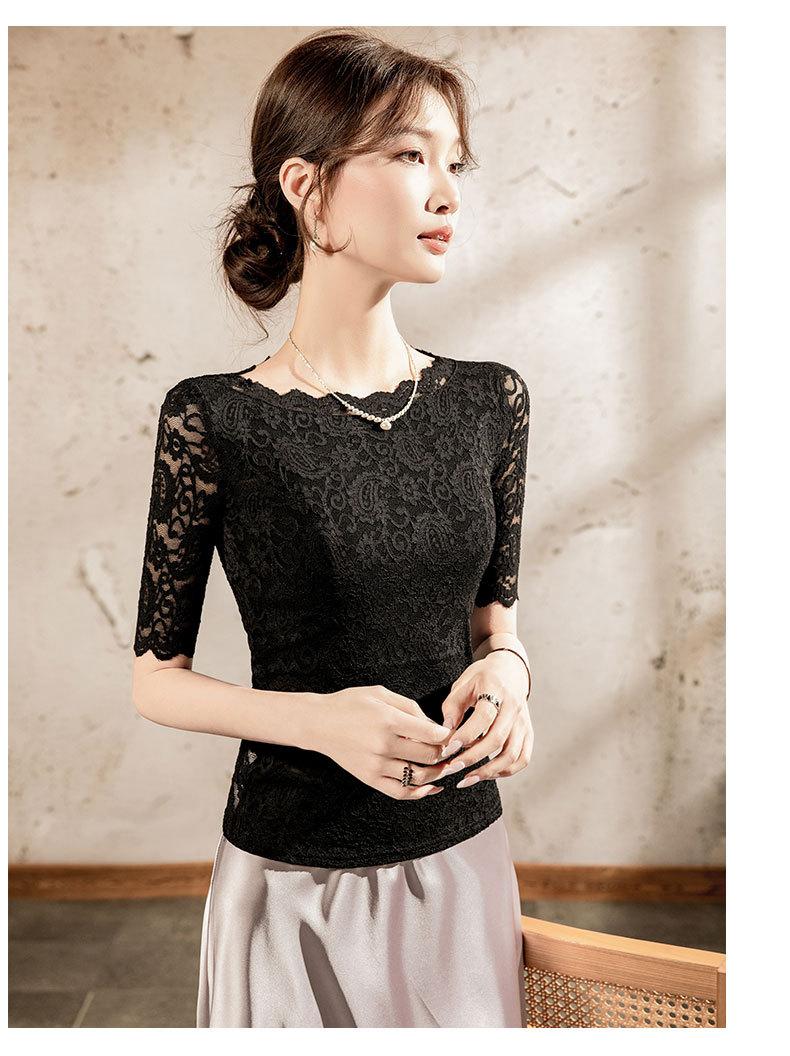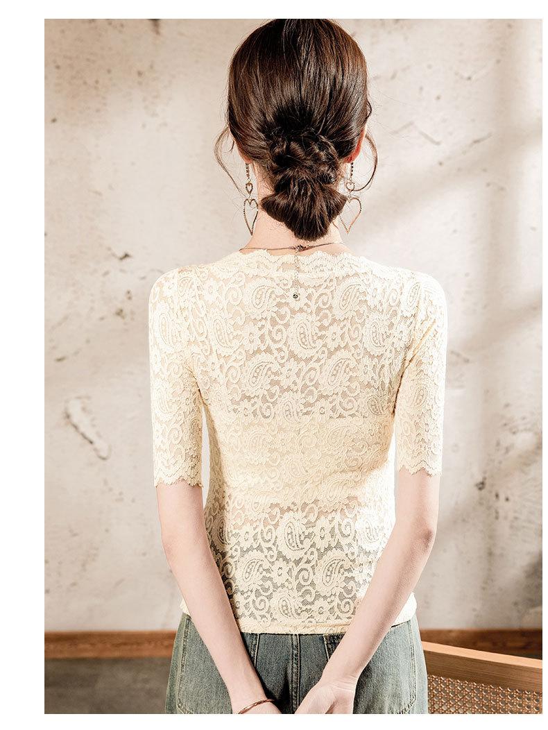 Top de Manga Corta para Mujer Primavera y Verano 2025 Top de Manga Corta Ajustado de Color Sólido para Mujer con Cuello de Encaje
