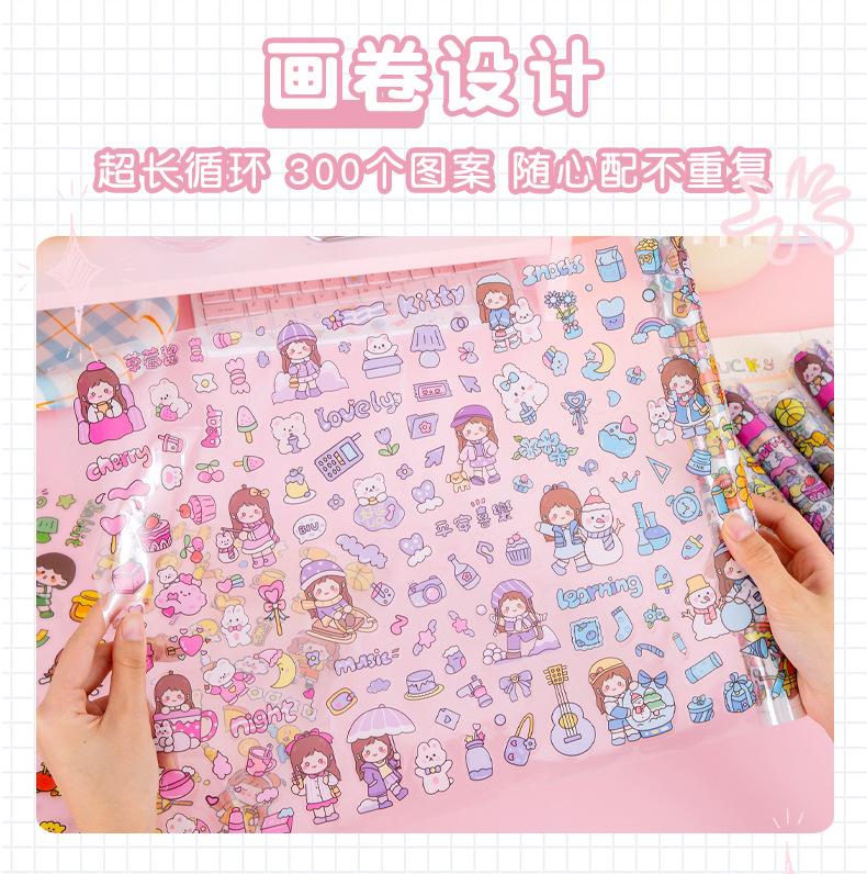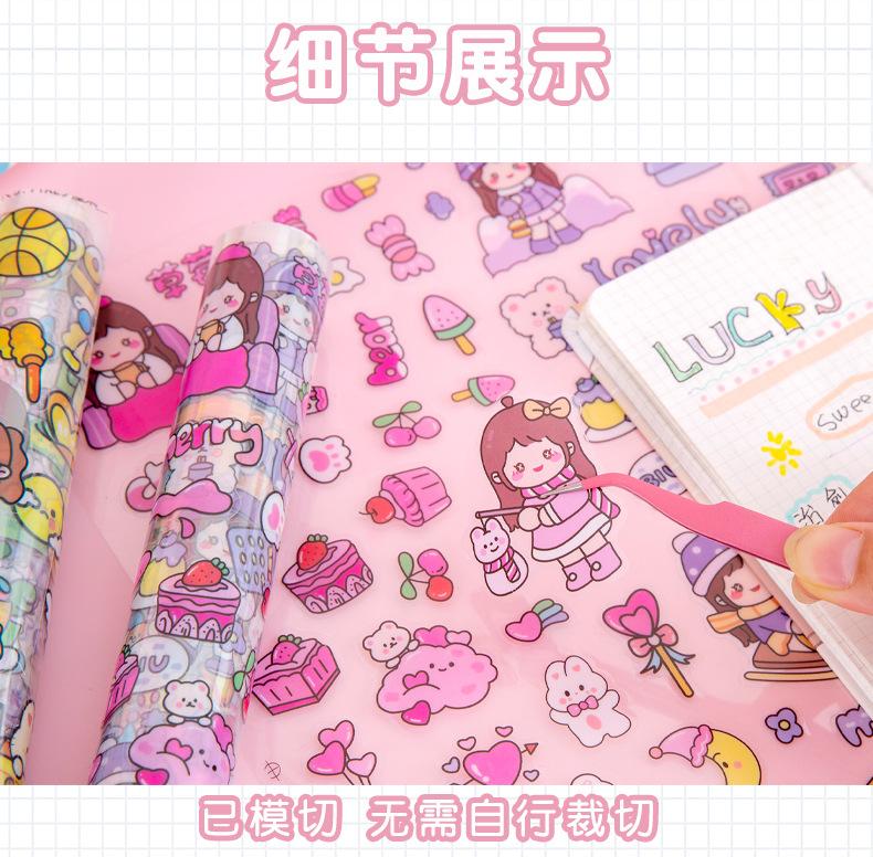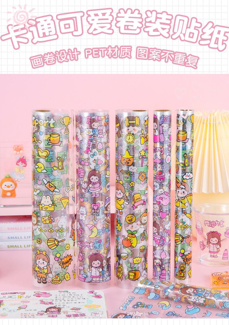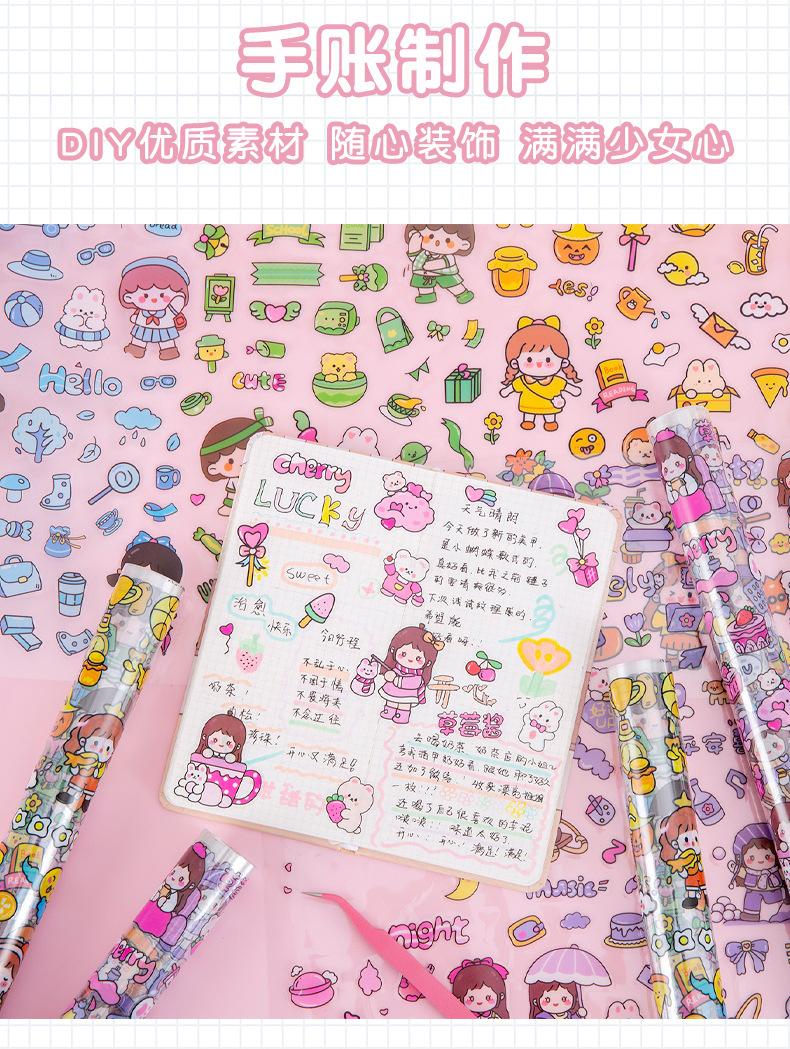 Lindas pegatinas de rollo para niña pequeña, pegatinas de cuenta de mano sin cortar, cinta de dibujos animados para cuenta de mano, material de bricolaje, pegatinas decorativas
