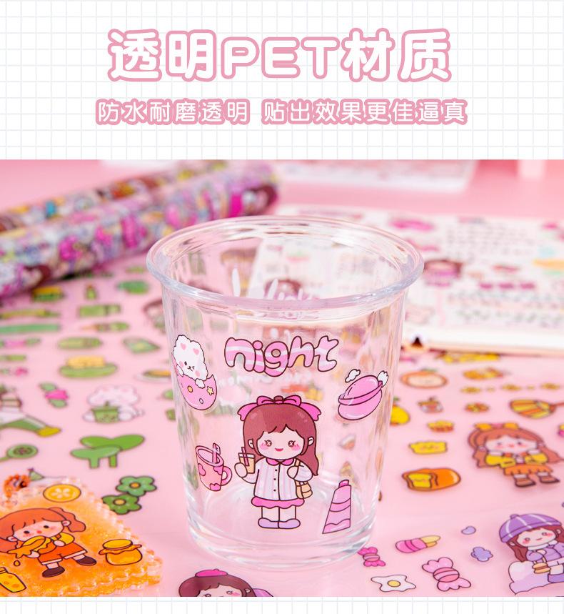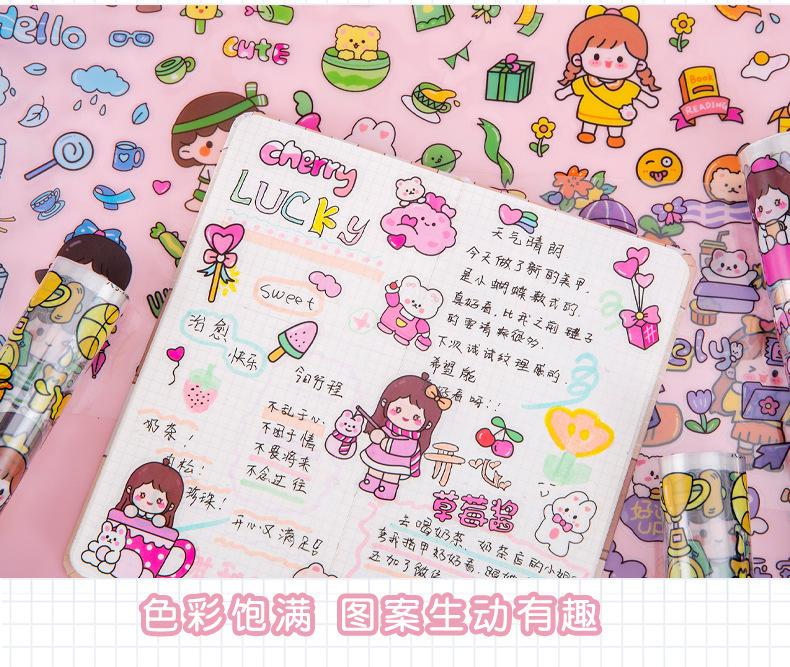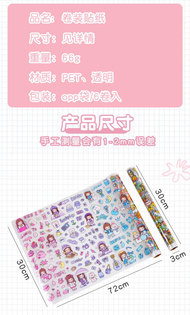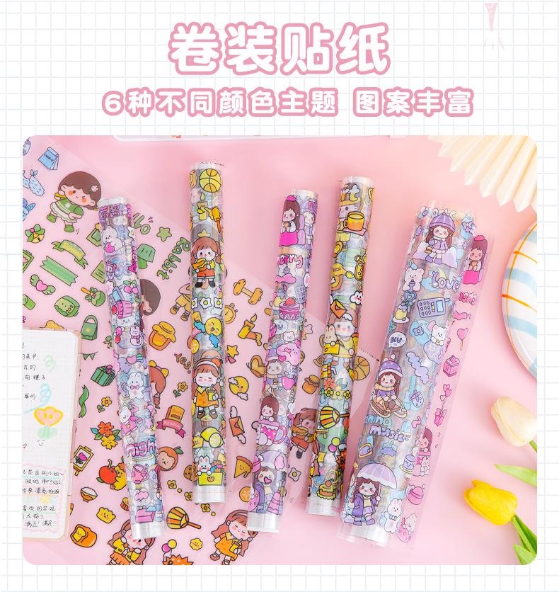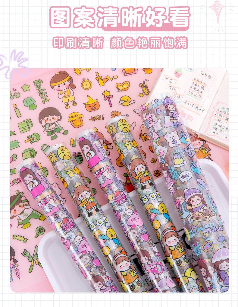 Lindas pegatinas de rollo para niña pequeña, pegatinas de cuenta de mano sin cortar, cinta de dibujos animados para cuenta de mano, material de bricolaje, pegatinas decorativas