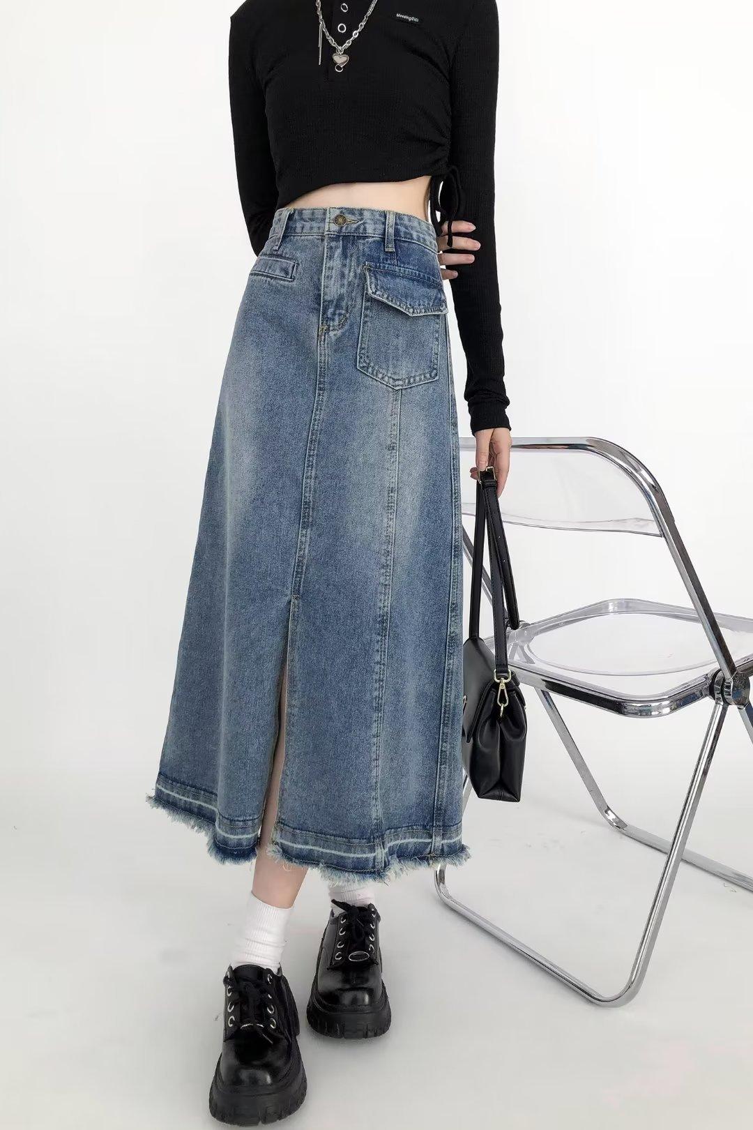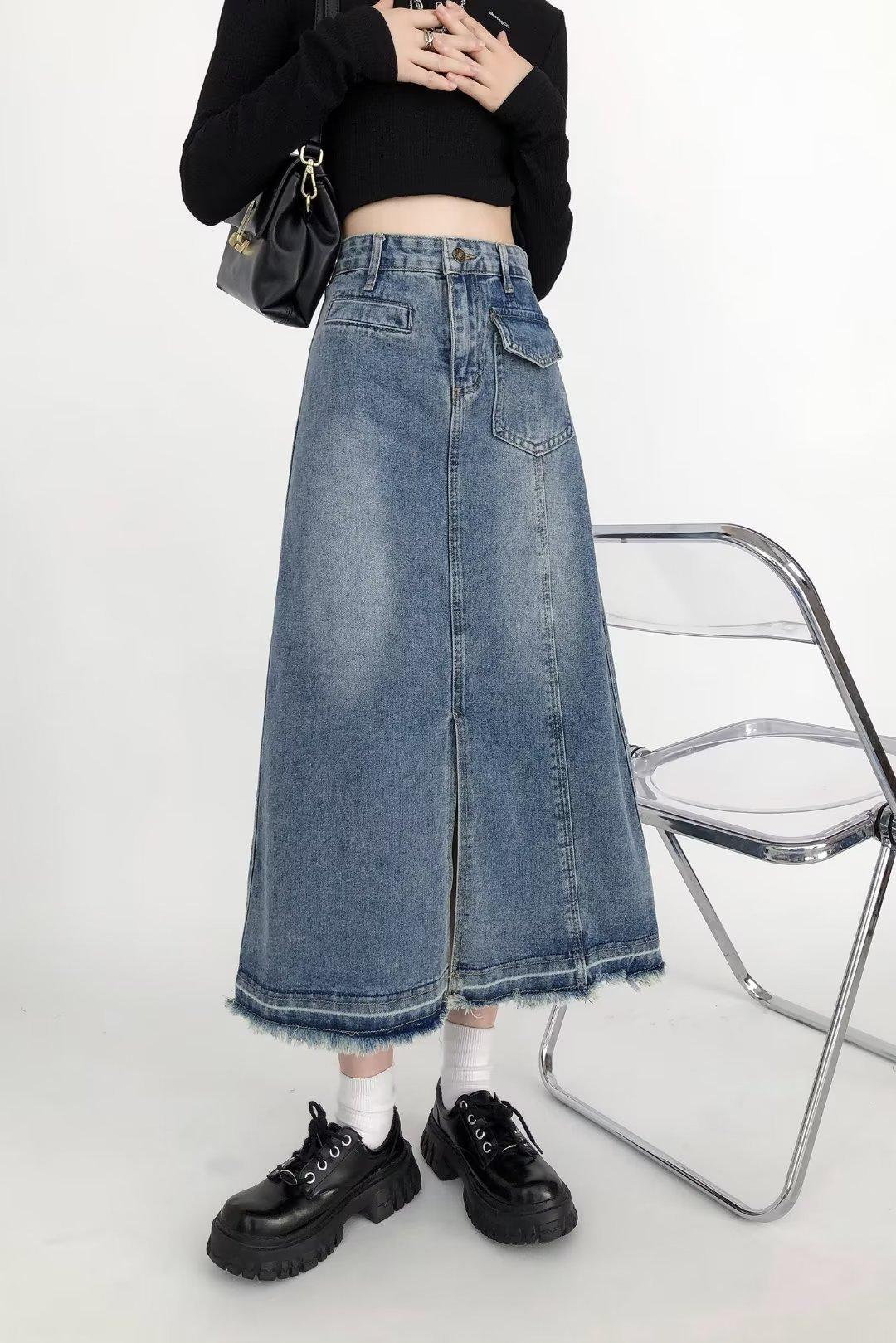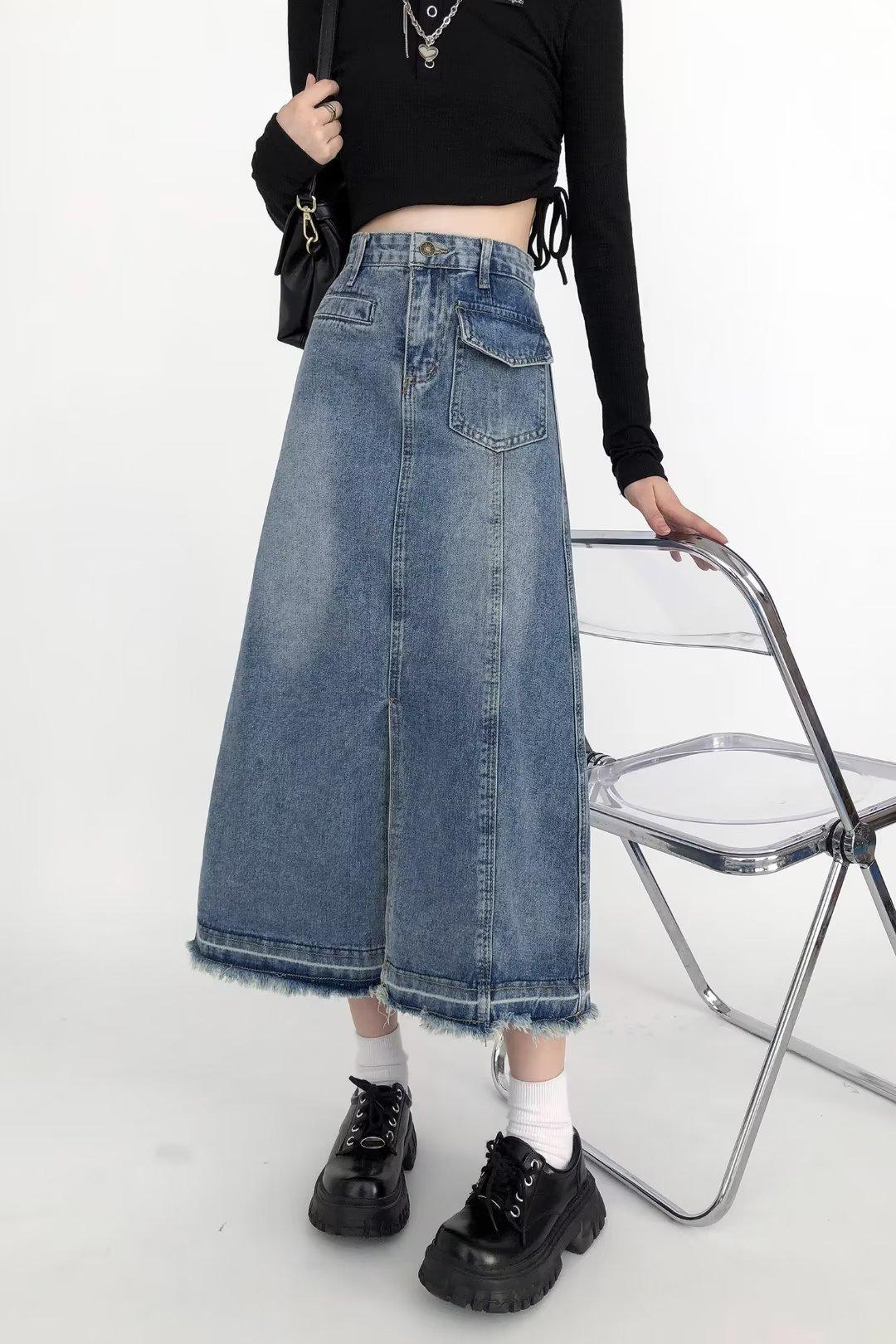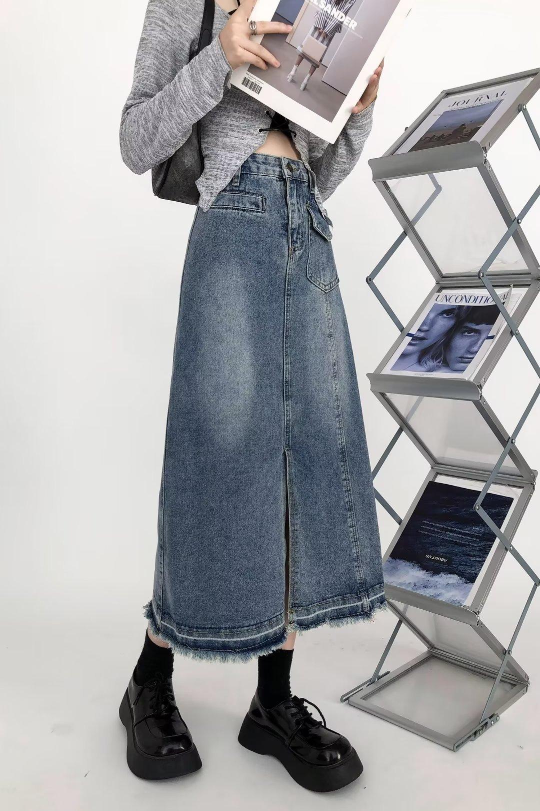 Falda Versátil de Largo Medio Estilo Japonés de Moda Línea A Cintura Natural Artística Ins Popular Harajuku Moda Nueva para Mujer