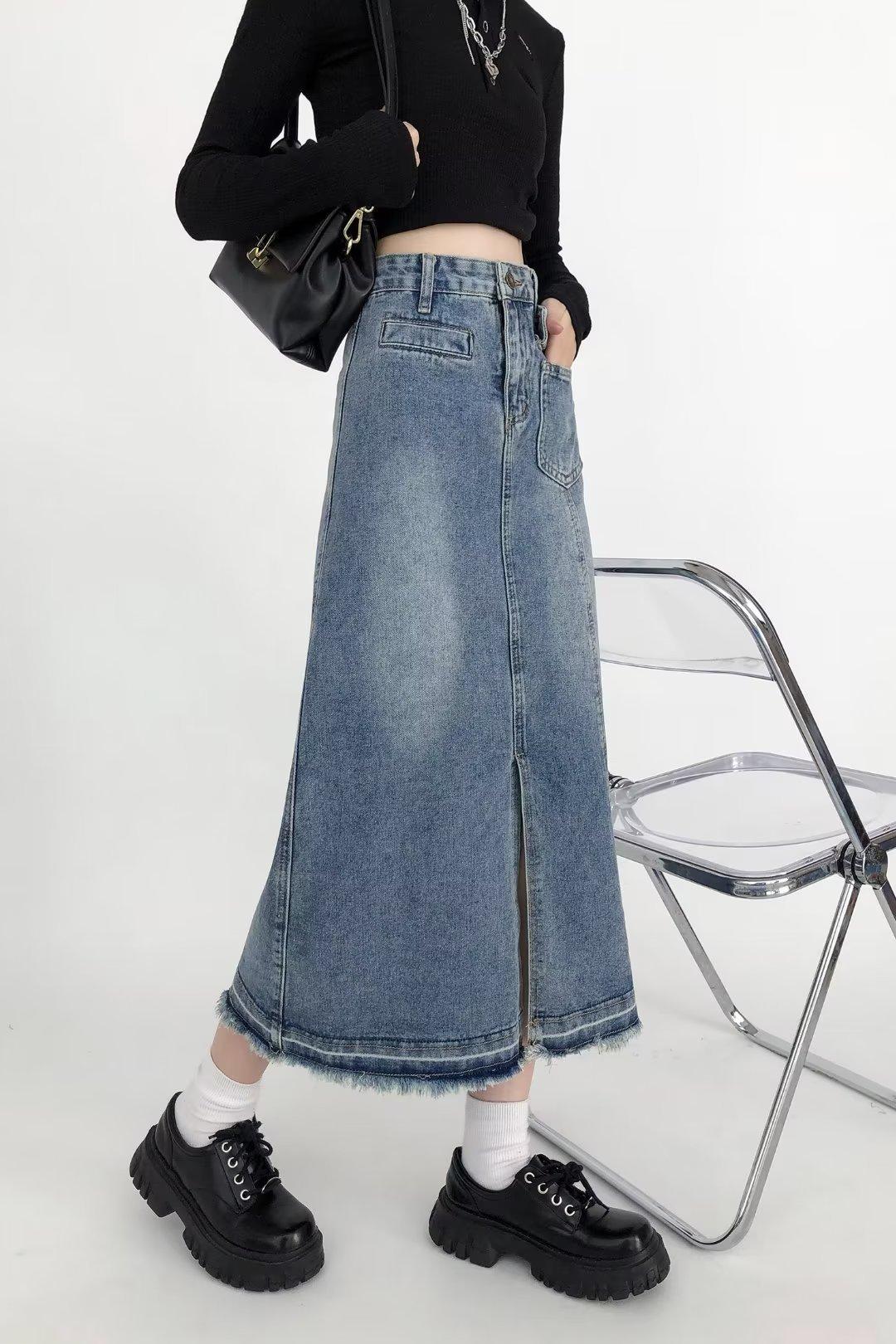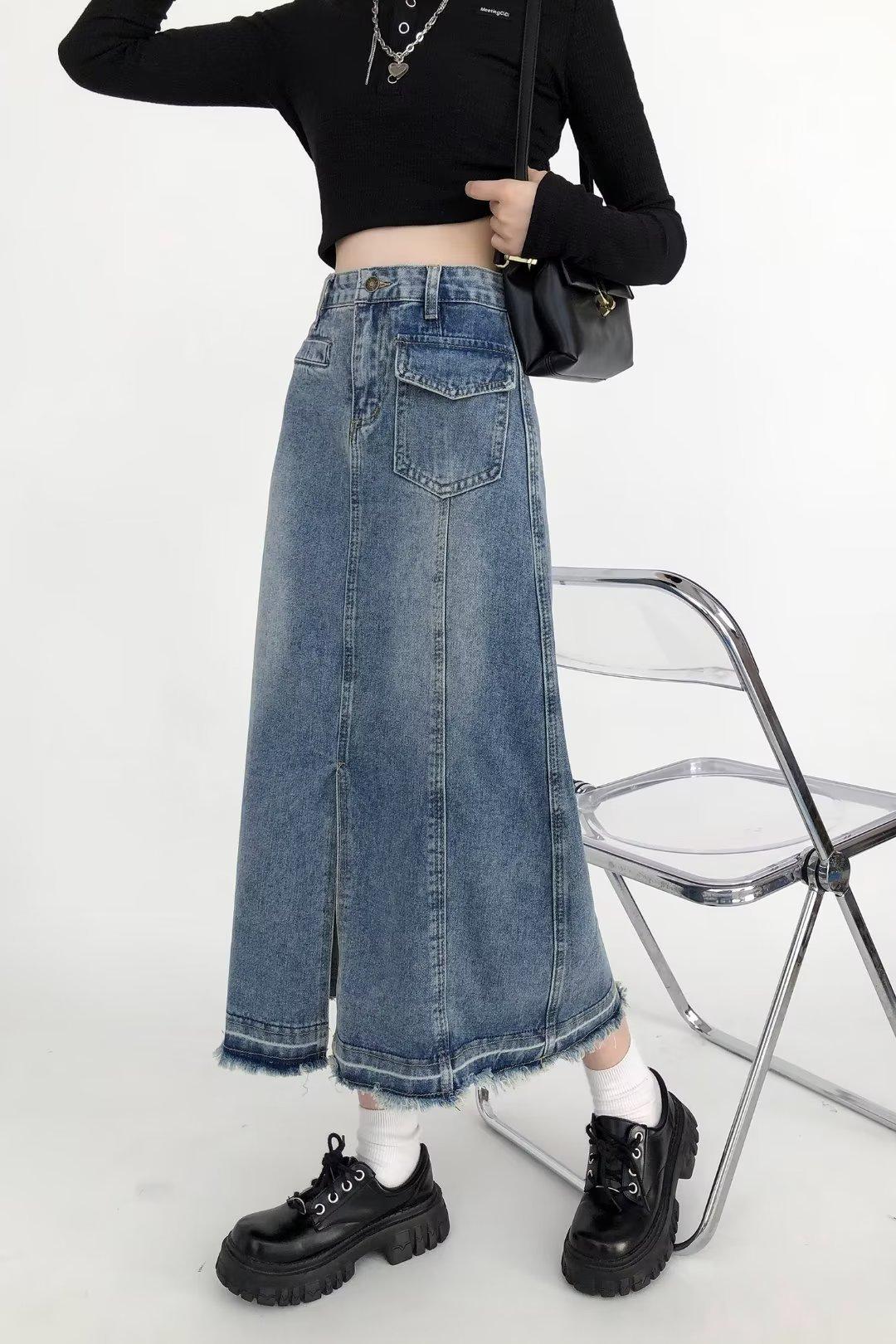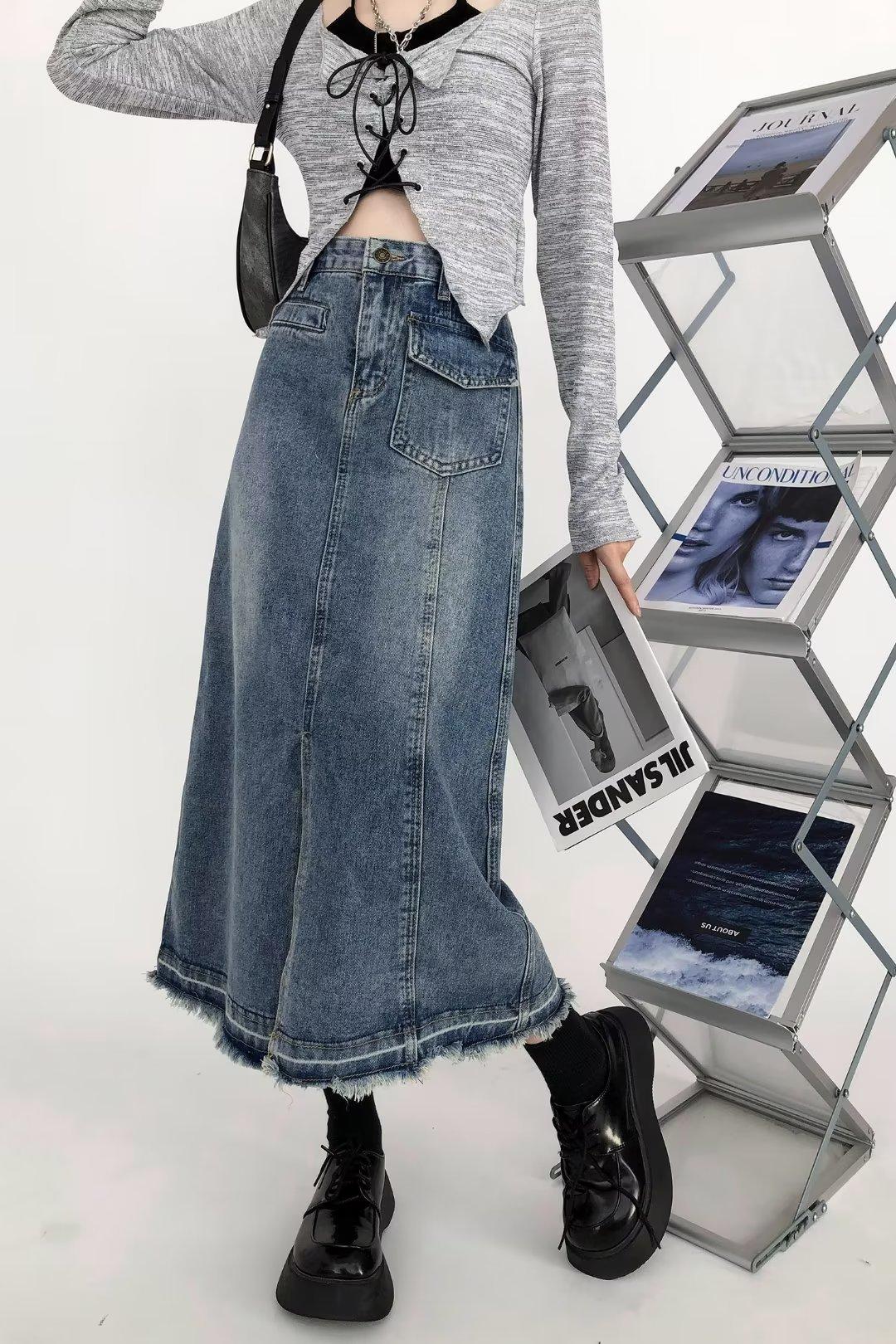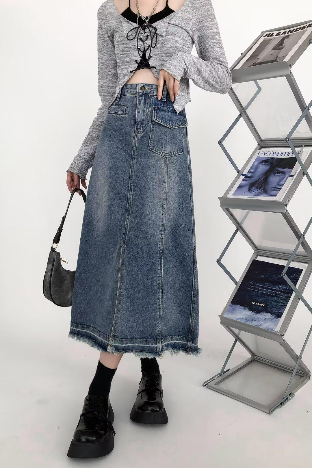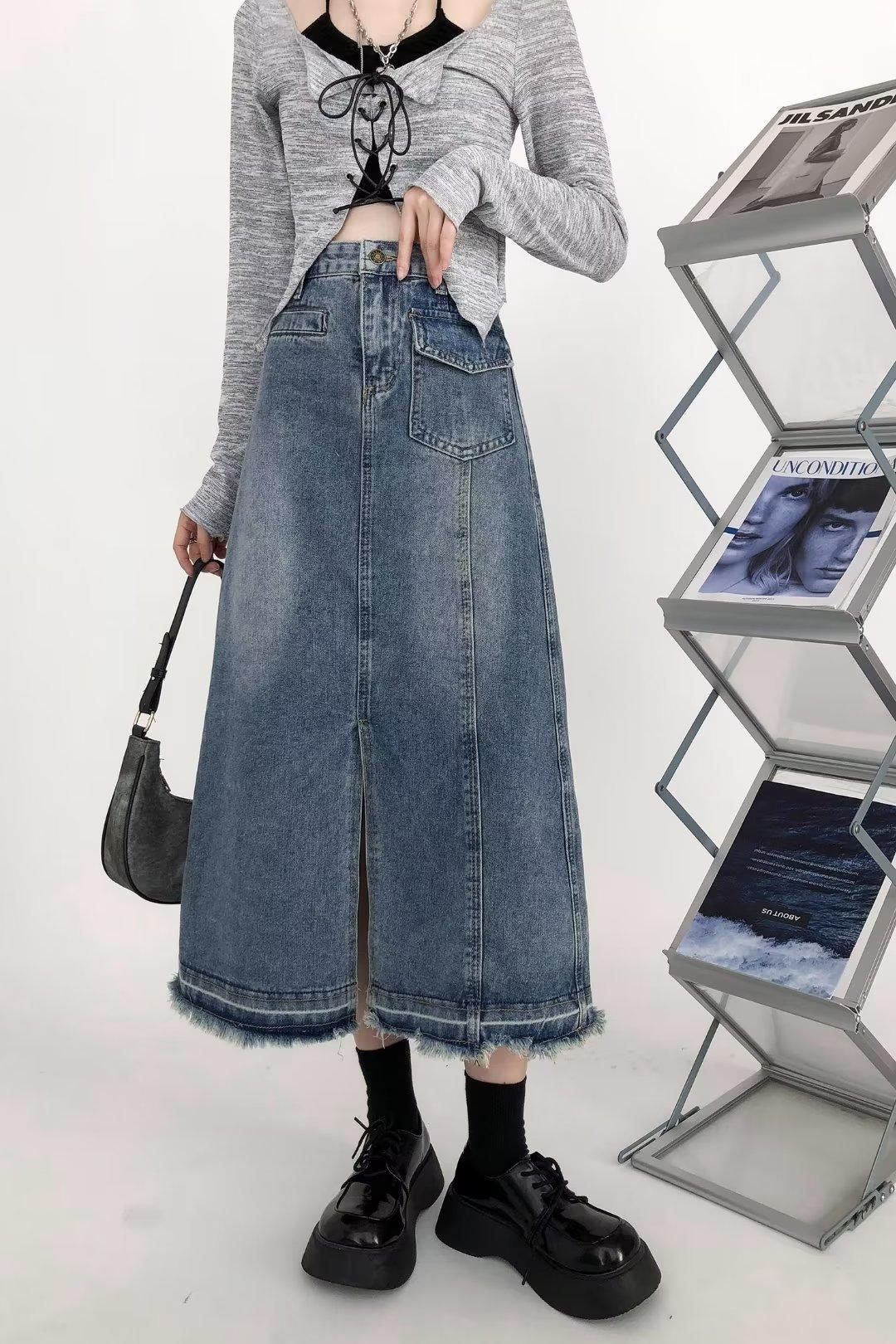 Falda Versátil de Largo Medio Estilo Japonés de Moda Línea A Cintura Natural Artística Ins Popular Harajuku Moda Nueva para Mujer