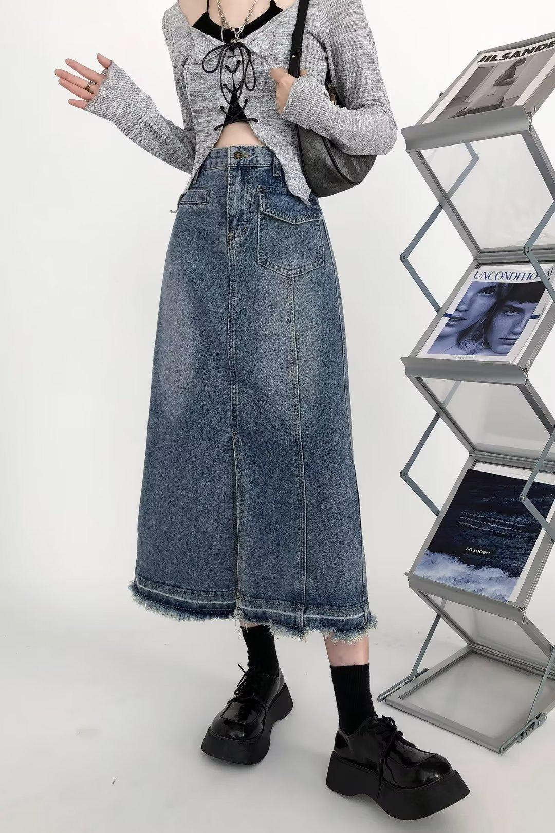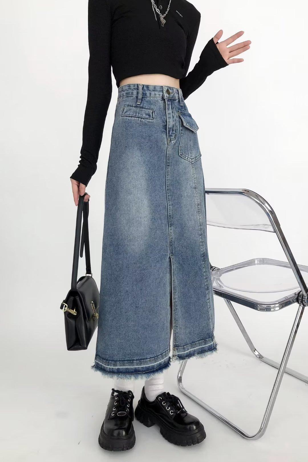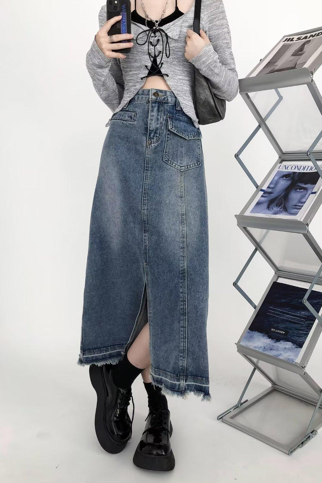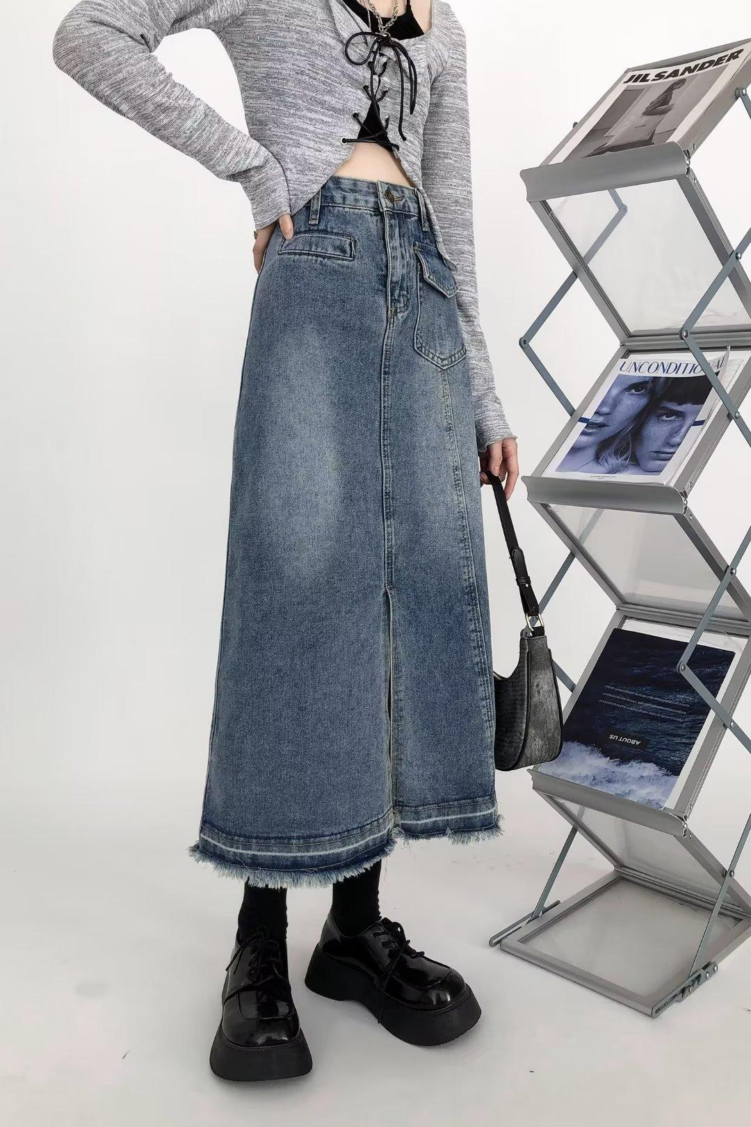 Falda Versátil de Largo Medio Estilo Japonés de Moda Línea A Cintura Natural Artística Ins Popular Harajuku Moda Nueva para Mujer