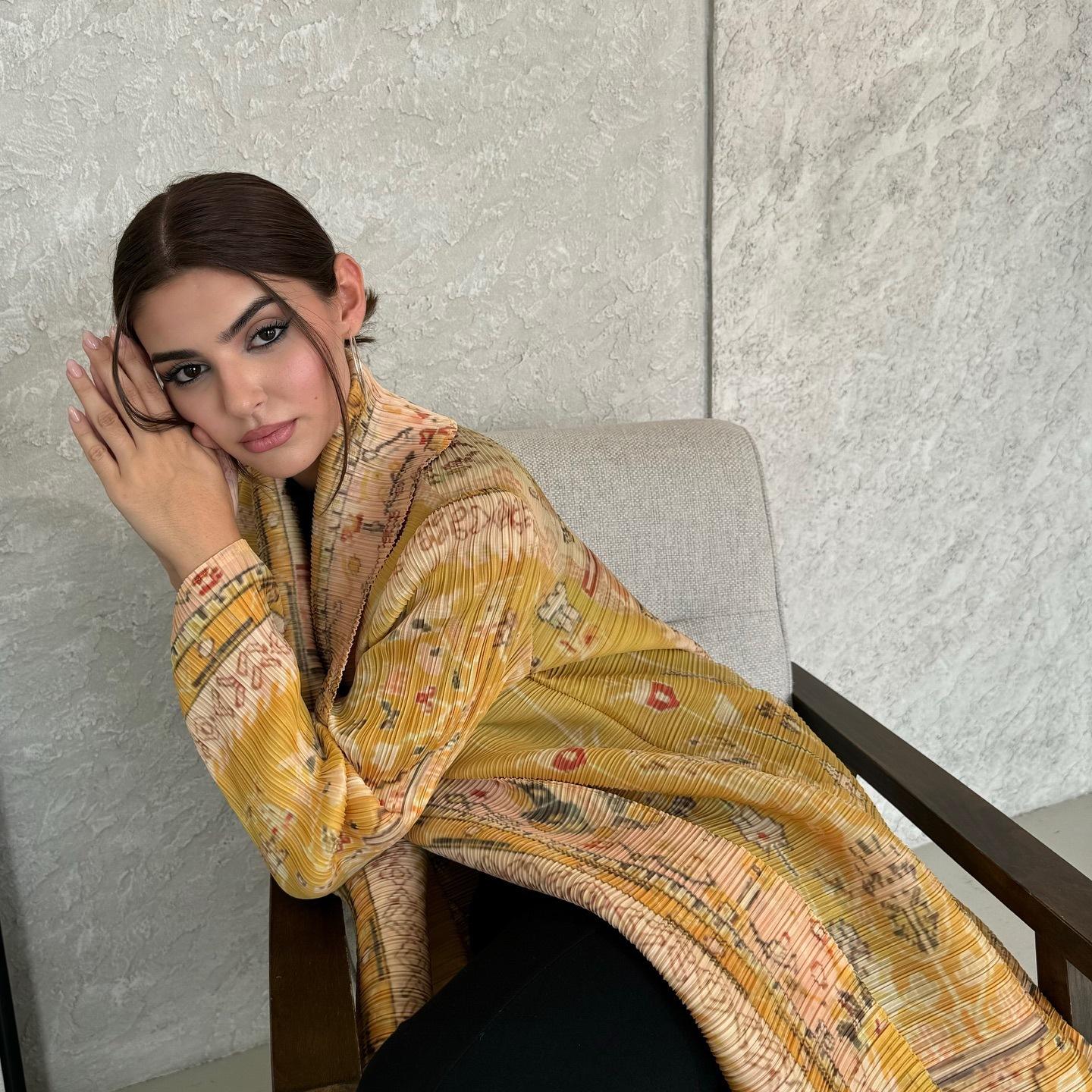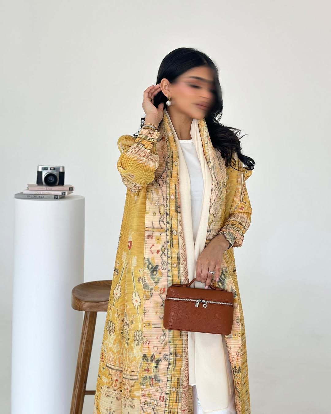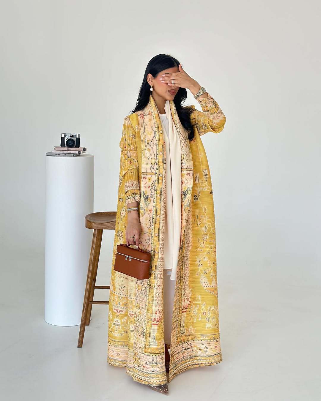 Compra Bata de Oriente Medio Ropa de Mujer Cárdigan Estampado Plisado Issey Miyake Abrigo Largo Bata Árabe Talla Grande Abaya al por mayor en Joom.pro
