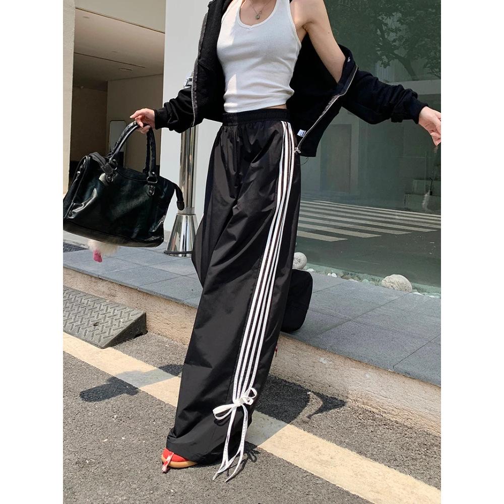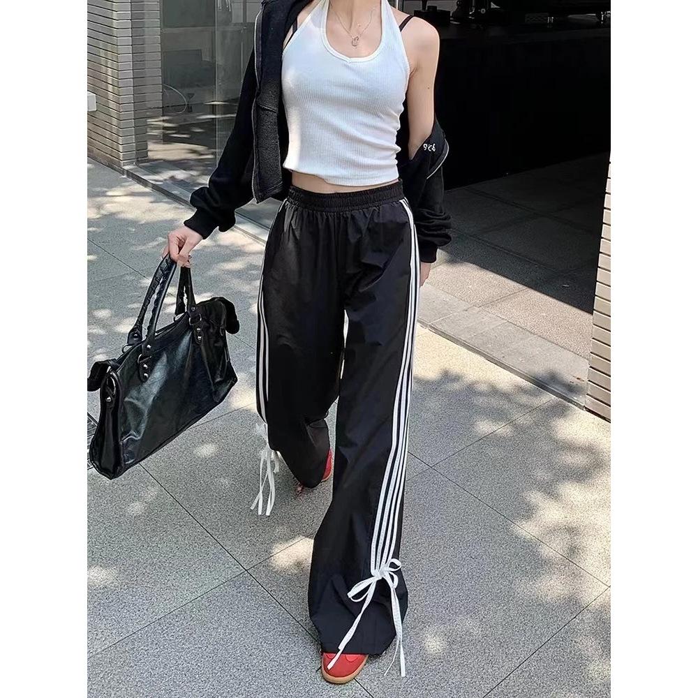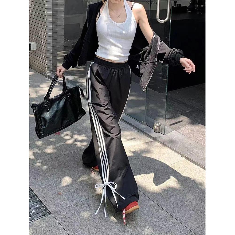 Pantalones casuales retro de moda de calle alta estilo americano para mujer, nuevos de primavera y otoño, holgados, rectos, que dosifican todo, de pierna ancha, largos