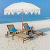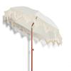 Paraguas de Playa Patio con Borlas Triangulares de 2m/6.6ft, Sombrilla de Exterior con Altura Ajustable, Estructura Premium de Acero con Acabado de Grano de Madera, Función de Inclinación de la Capota con un Clic