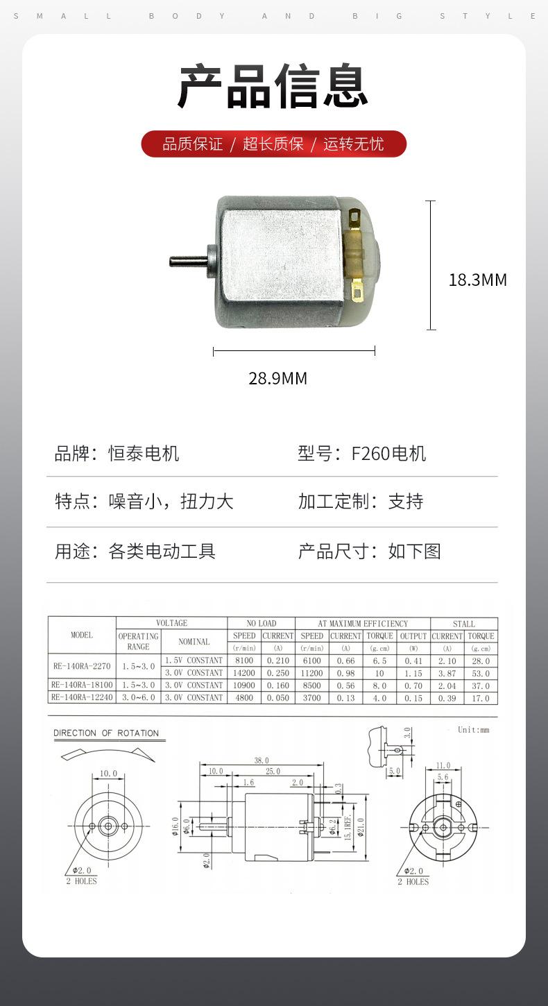 F260 Motor CC Juguete Eléctrico Pistola de Burbujas Motor Pequeño de Alta Velocidad Micro Motor Motor CC