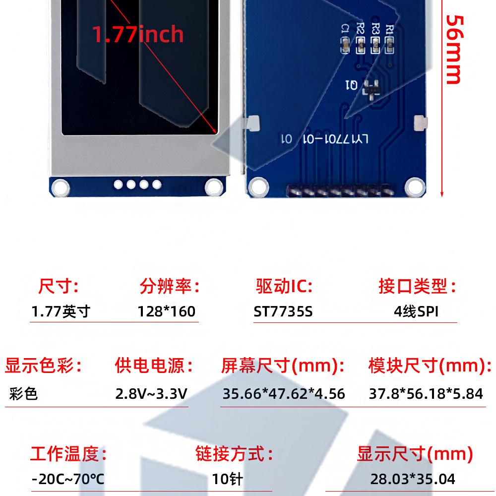 Pantalla LCD TFT de 1.77 pulgadas ST7735 Pantalla pequeña 128X160 Módulo LCD Pantalla a color SPI