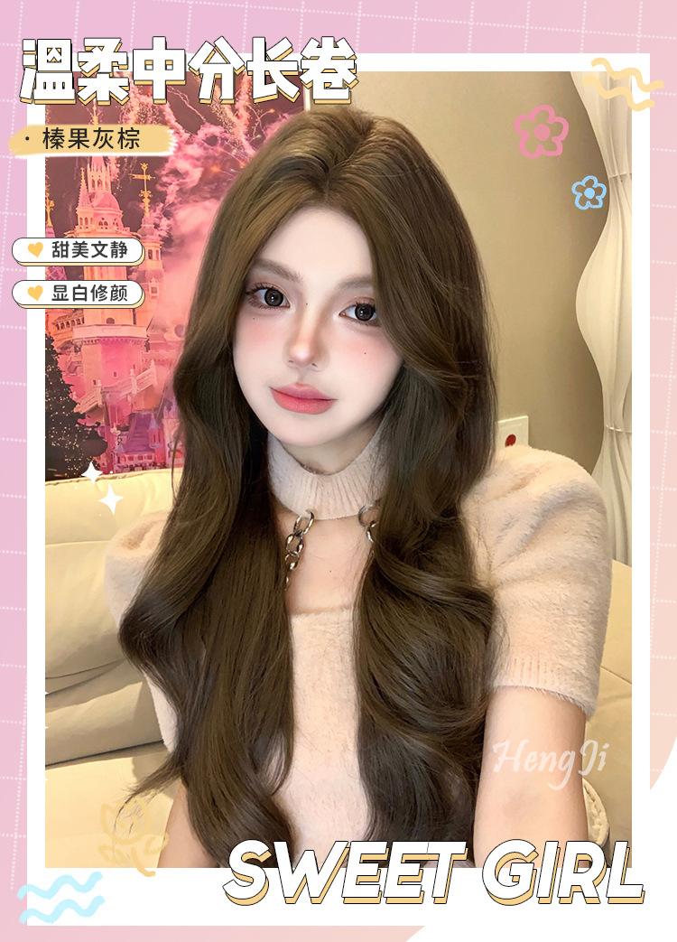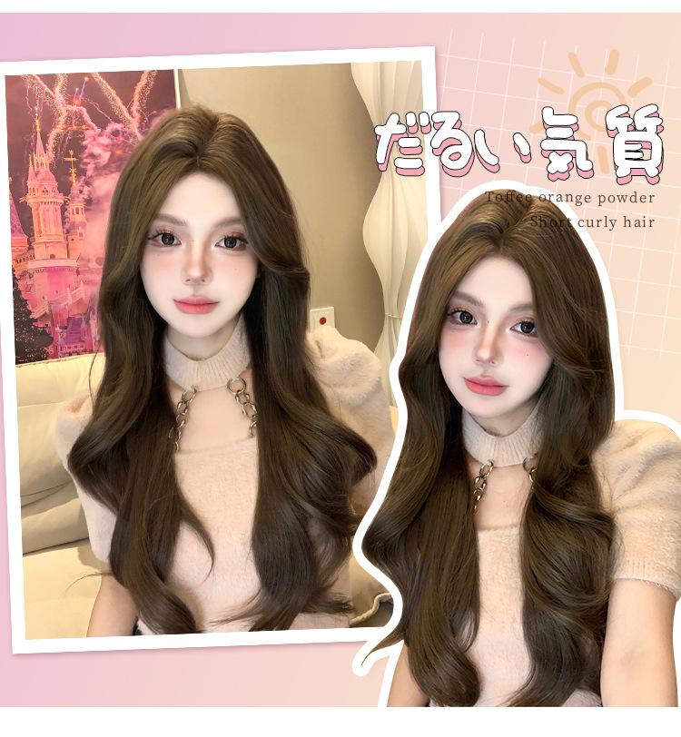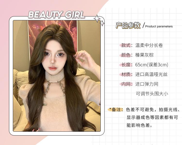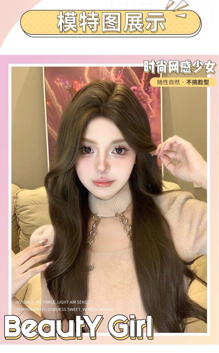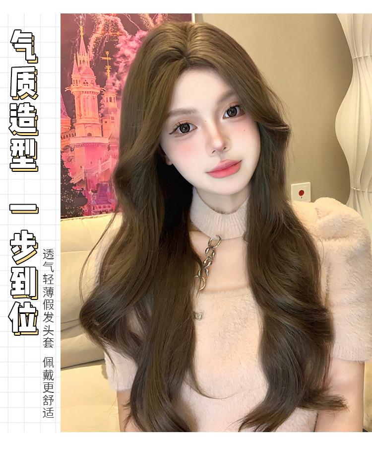 Peluca Diaria al por Mayor Transfronteriza para Mujer Cabello Largo con Raya Media Cubre Cabeza Completa Cabello Artificial Ondulado de Ola Grande Francesa Peluca Completa