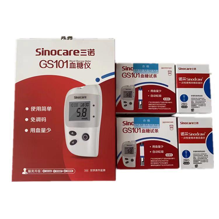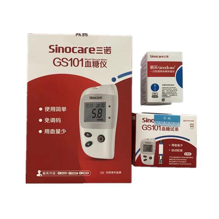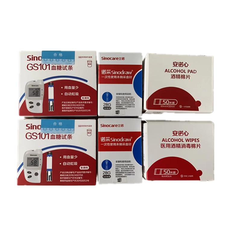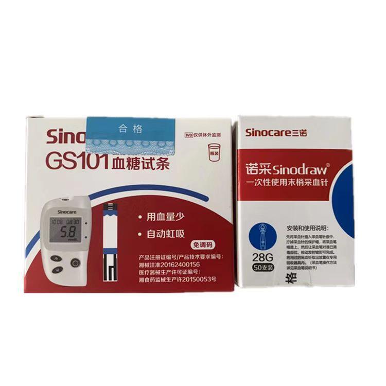 Sannuo GS101 Tira de Prueba de Glucosa en Sangre Hogar Sin Código Medidor de Glucosa en Sangre Barril de 50 Piezas Tira de Prueba con Aguja y Sin Instrumento