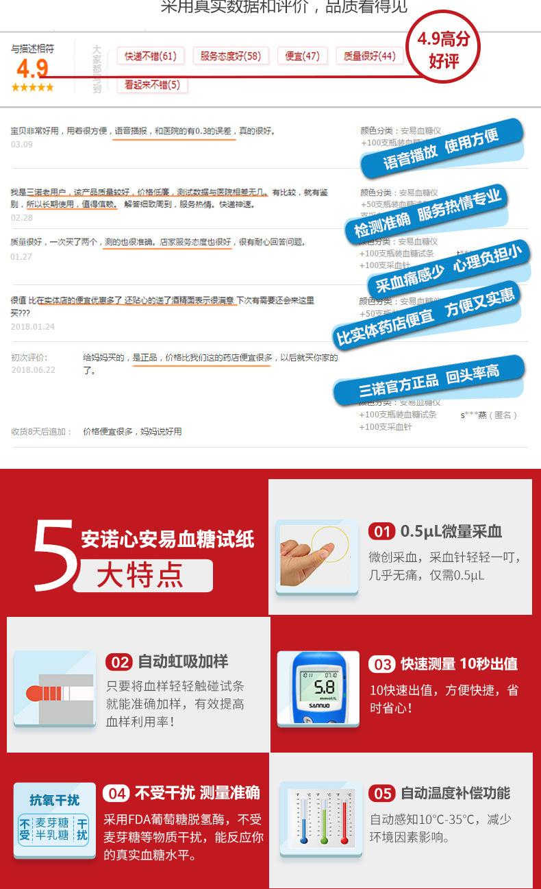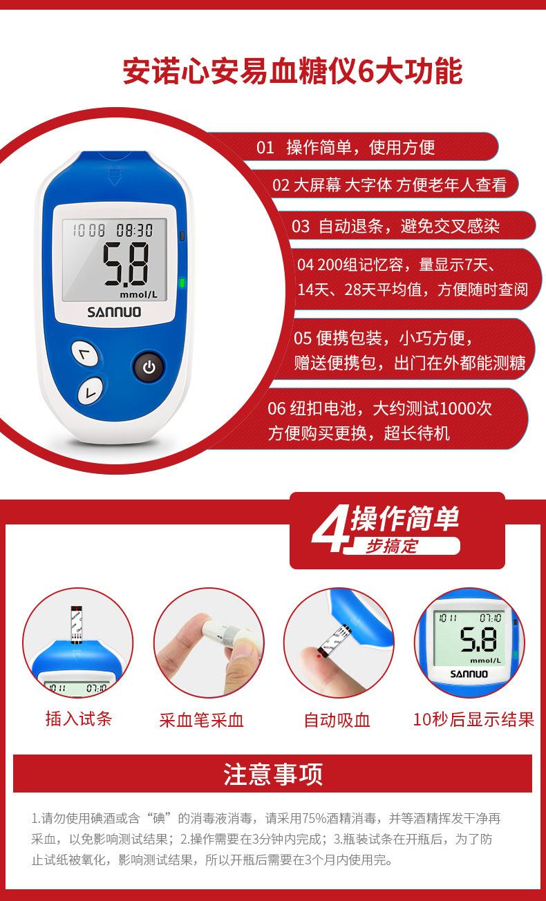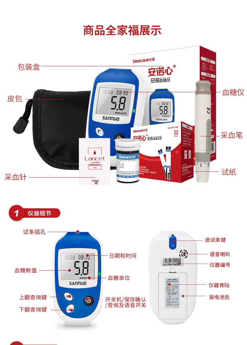 Tira reactiva para prueba de glucosa en sangre Sannuo Anyi Hogar Voz Sin código Medidor de glucosa en sangre 50 Piezas Papel de prueba con aguja Sin instrumento