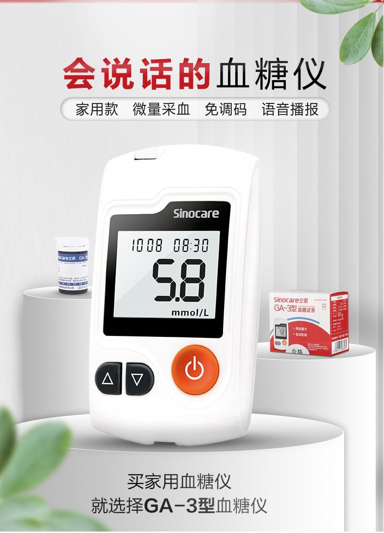 Sannuo GA-3 Medidor de Glucosa en Sangre Tira de Prueba Hogar Voz Ajuste de Código Libre Probador de Glucosa en Sangre Farmacia Mismo Período Fresco
