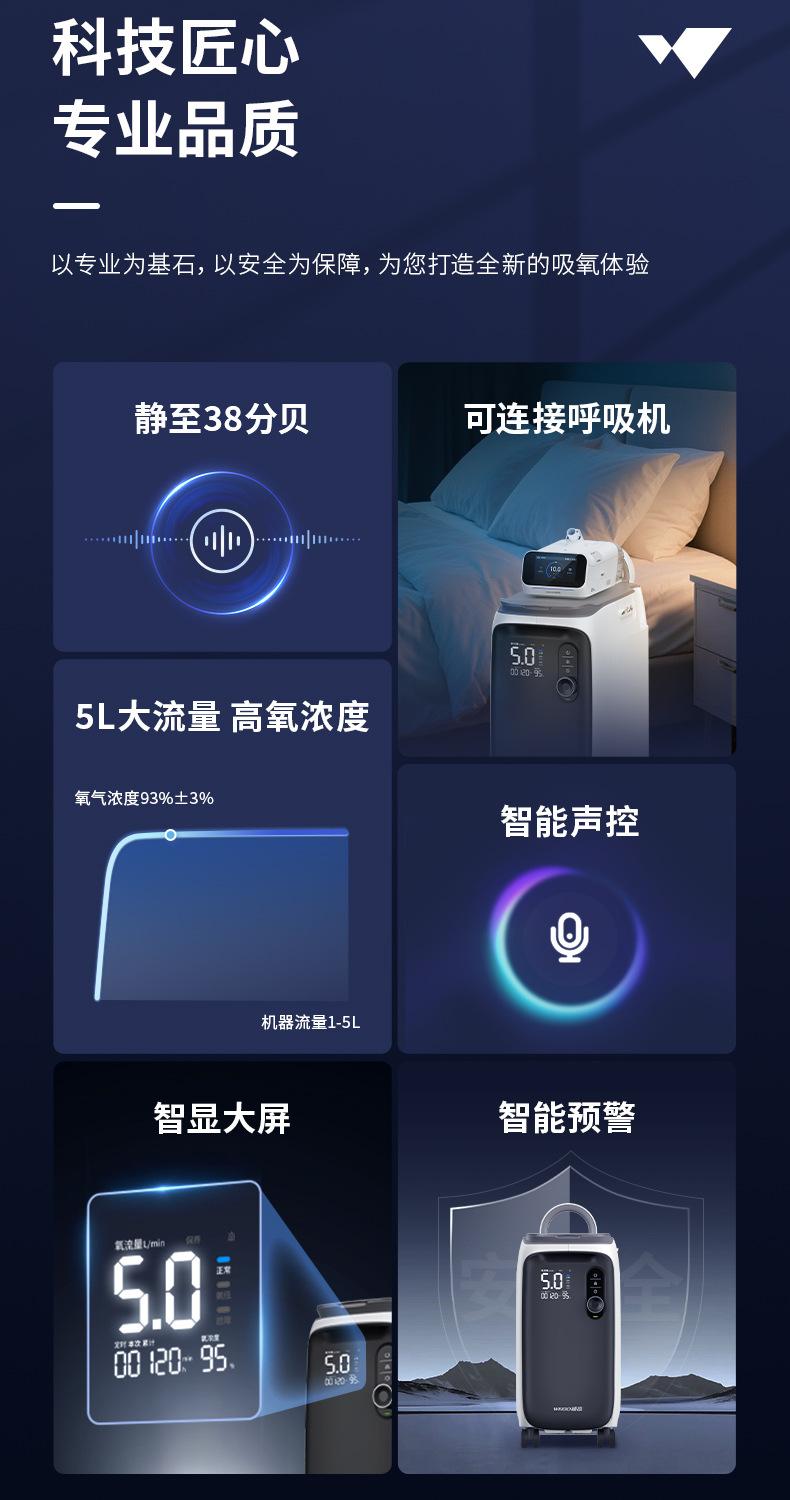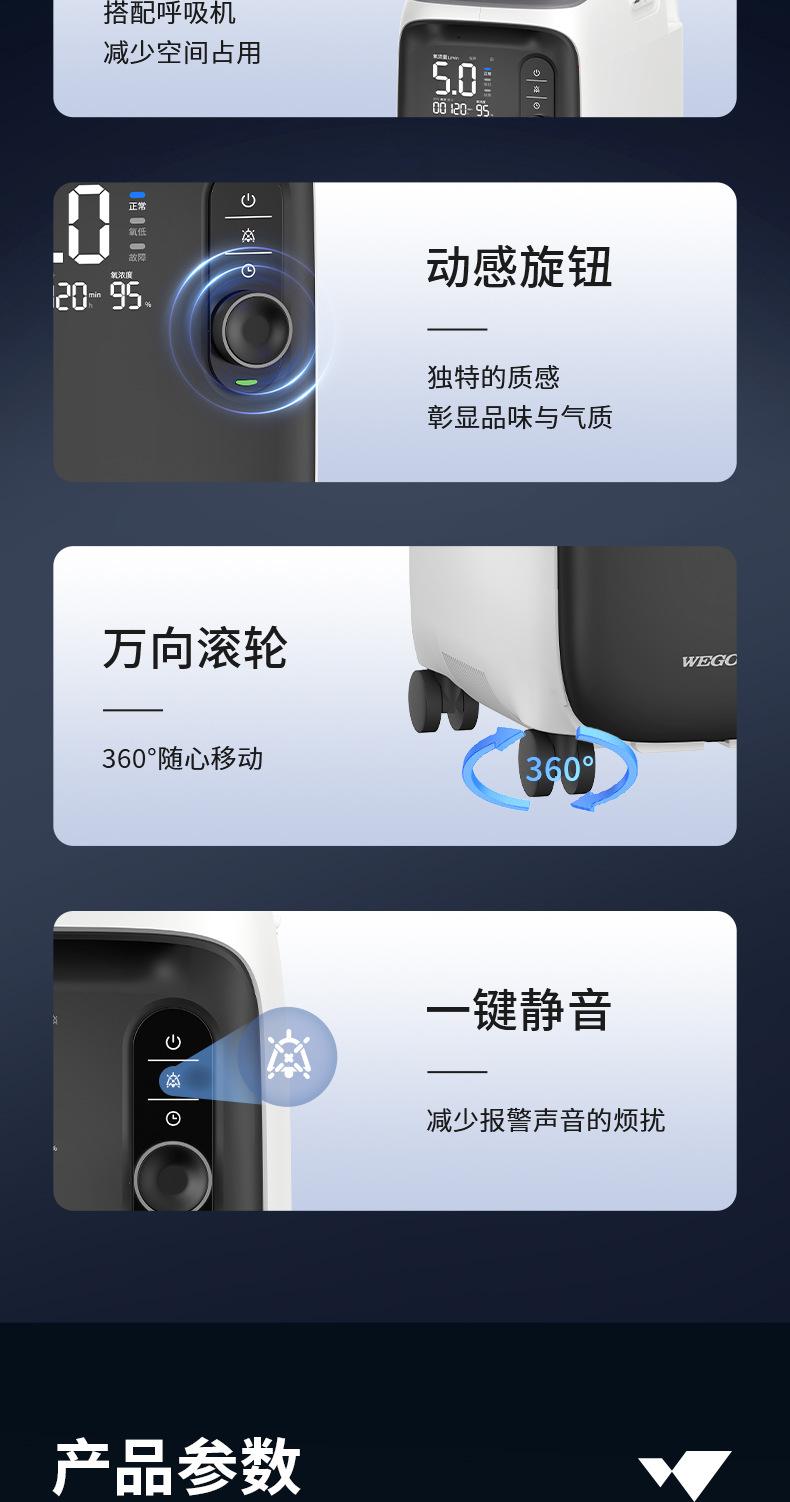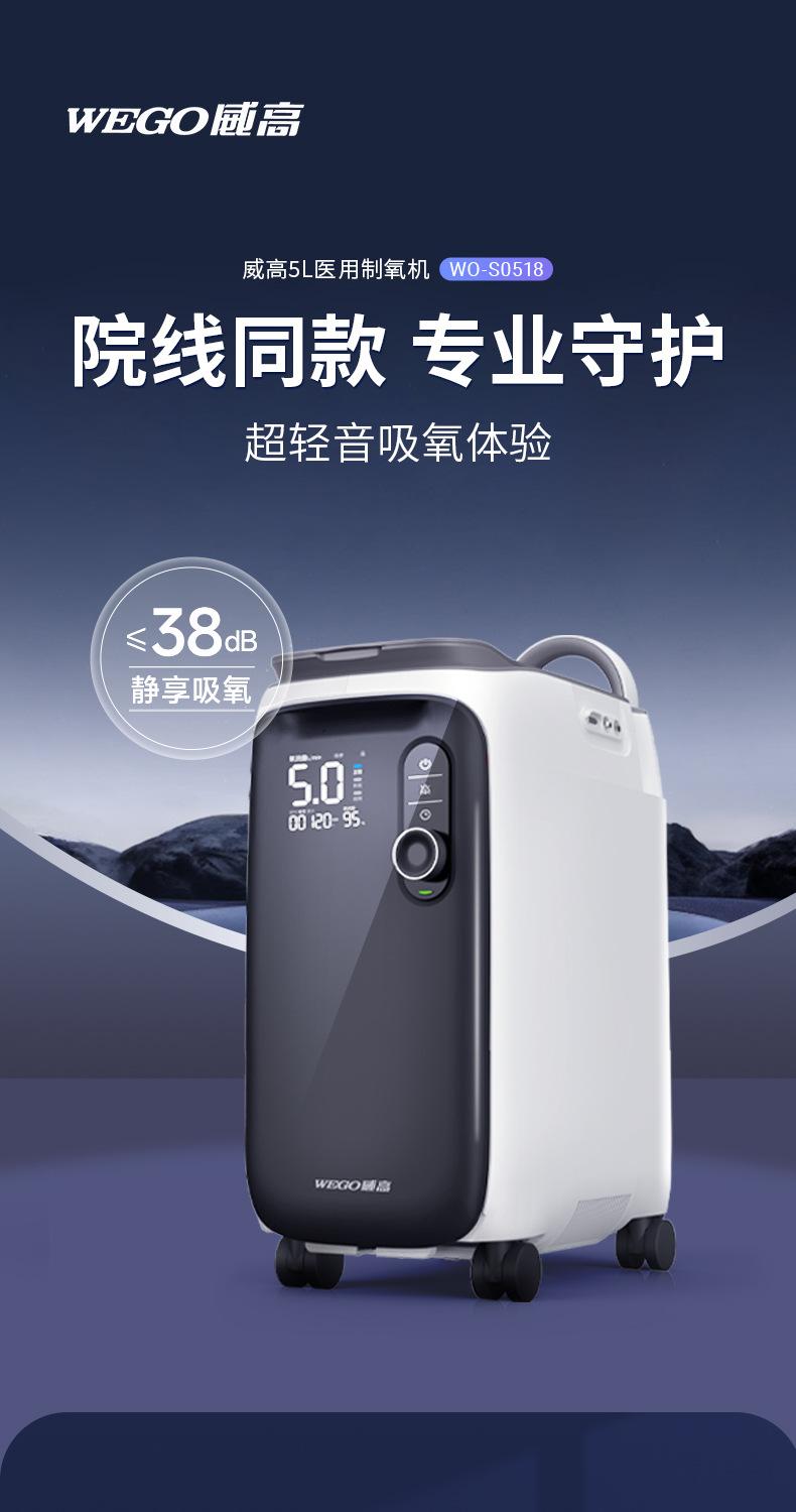 Concentrador de Oxígeno Weigao Inhalador Inteligente de Oxígeno para el Hogar para Adultos Mayores 5L Bajo Ruido Alto Flujo Nebulizador Médico Máquina de Oxígeno Integrada