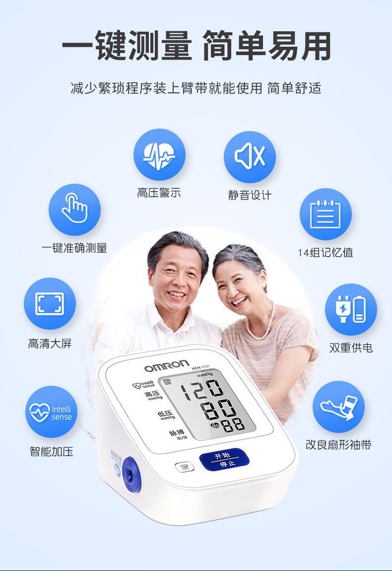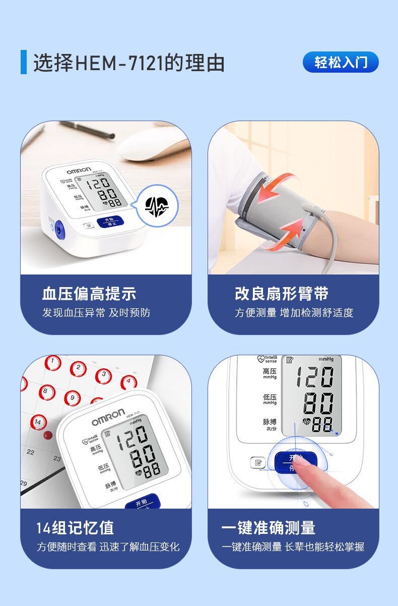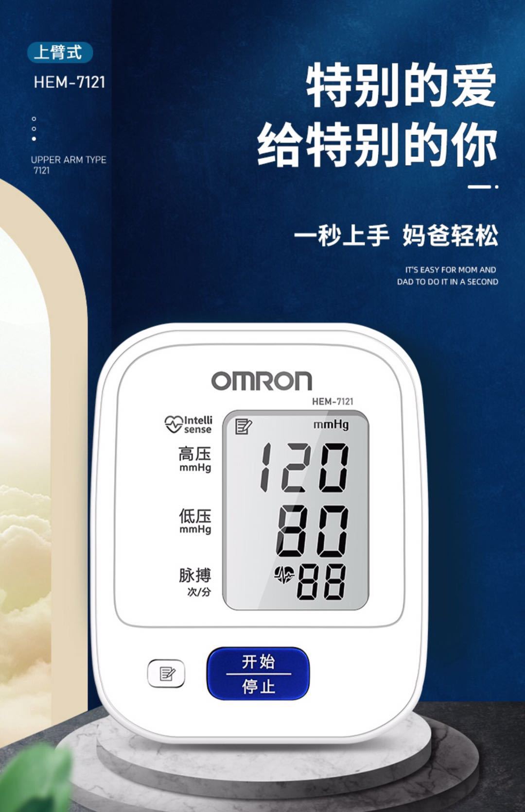 Esfigmomanómetro Electrónico Omron HEM-7121 para el Hogar de Brazo Superior Inteligente Instrumento de Medición de Presión Arterial para Ancianos