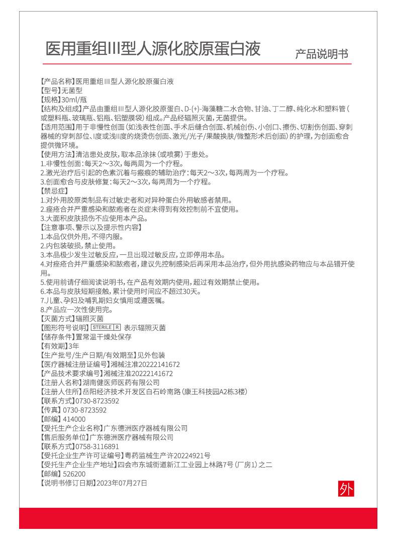 Teyi recombinant type iii humanized collagen liquid [30ml/bottle/box]