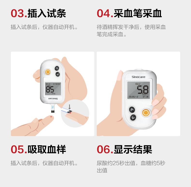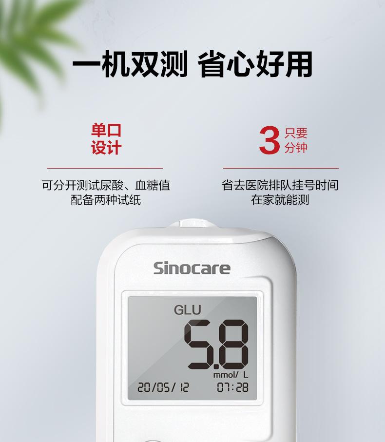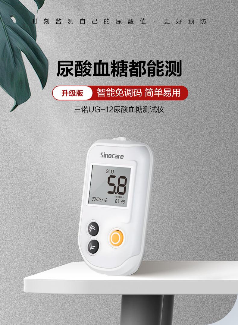 Sannuo UG-12 Medidor de Ácido Úrico Medidor de Glucosa en Sangre Medidor de Gota Doméstico Papel de Prueba de Ácido Úrico Tira Reactiva para Glucosa en Sangre