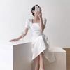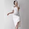 Compra Vestido de Verano de Alta Calidad Drapeado Elegante de Gran Vuelo Cuello Cuadrado Francés Cintura Plisada Vestido de Manga Corta para Mujer al por mayor en Joom.pro