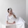 Vestido de Verano de Alta Calidad Drapeado Elegante de Gran Vuelo Cuello Cuadrado Francés Cintura Plisada Vestido de Manga Corta para Mujer