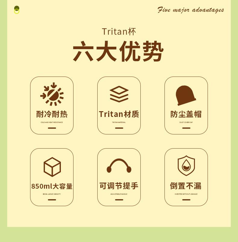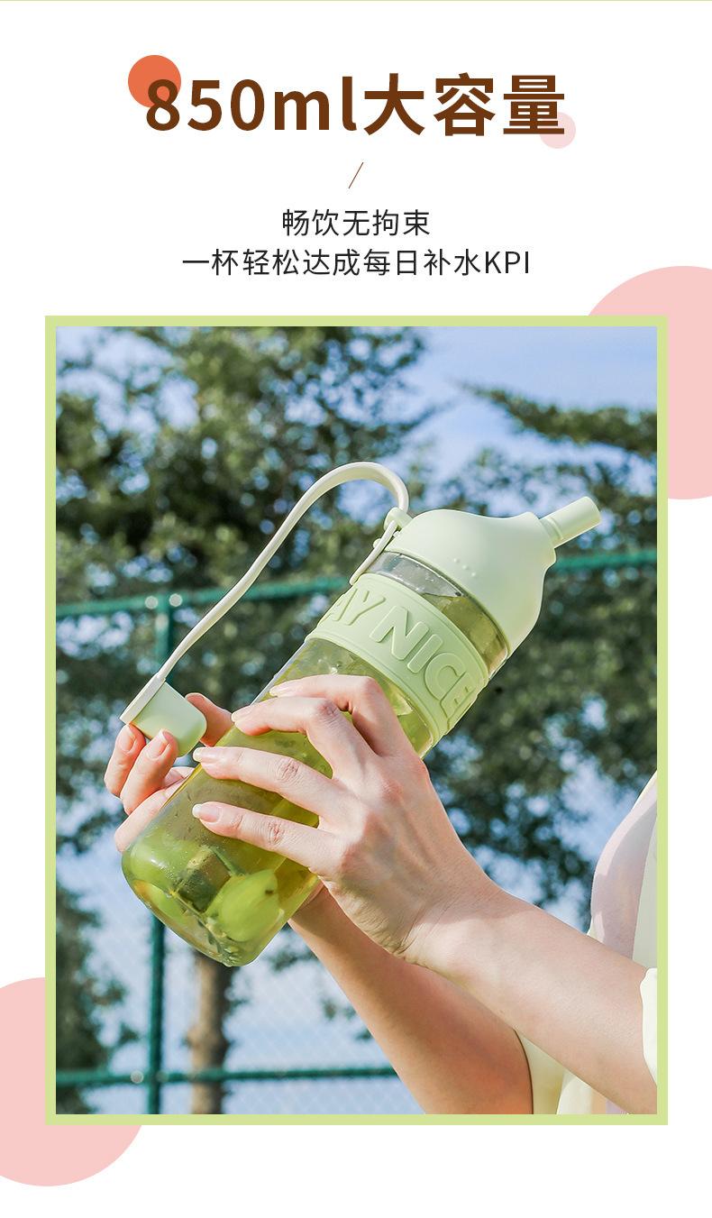 Vaso de Plástico Tritán Simple Nuevo Resistente a Altas Temperaturas Portátil Unisex Anticaída Vaso con Pajita Oblicua Vaso Deportivo para Agua