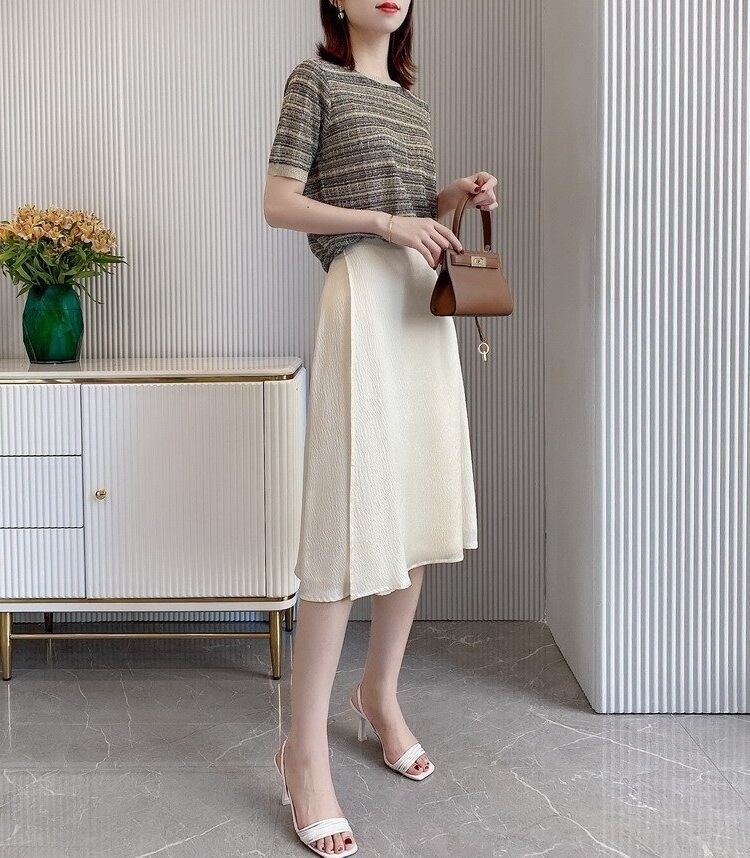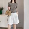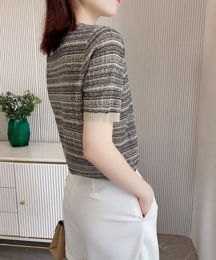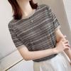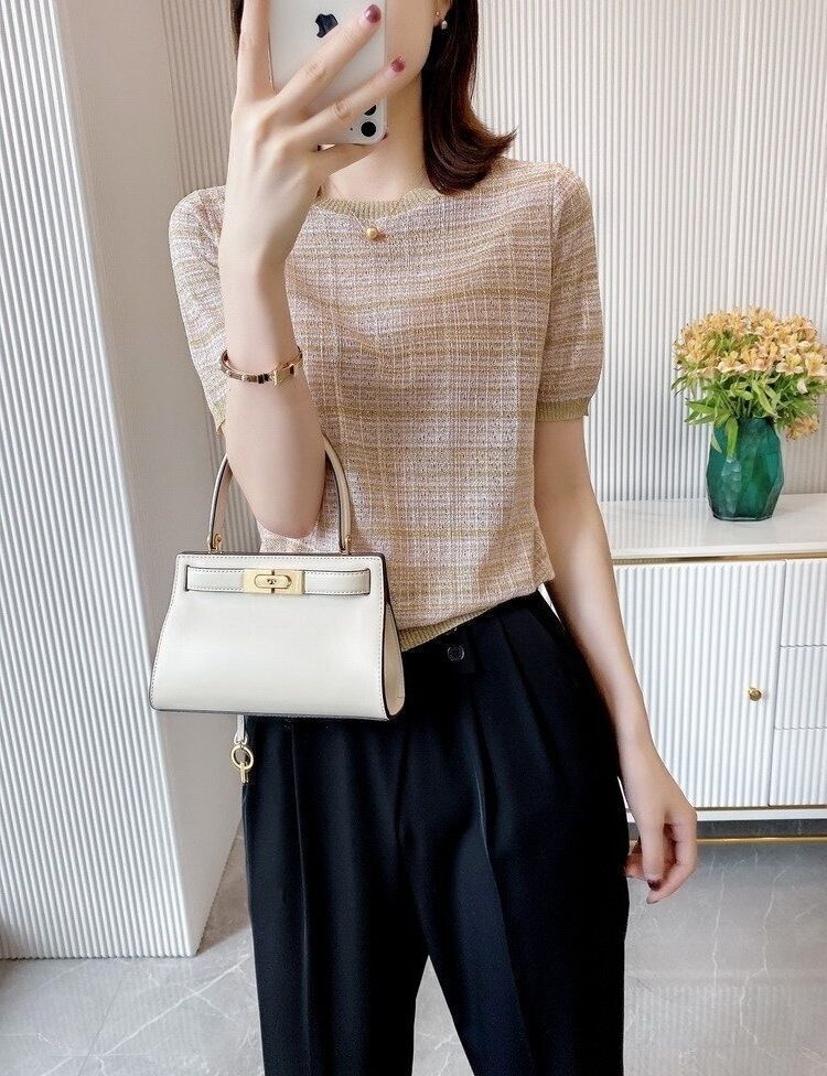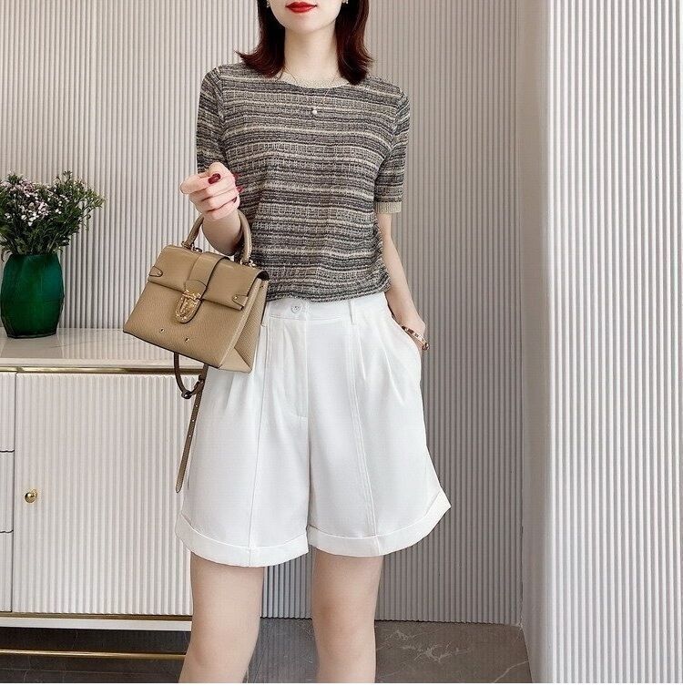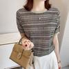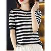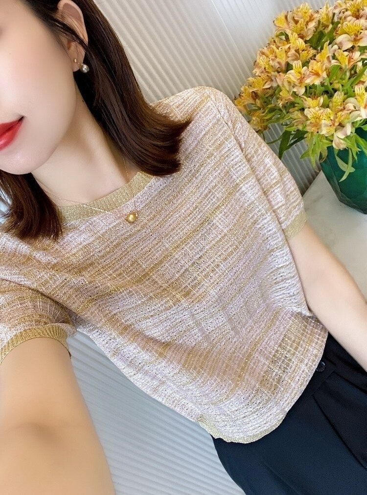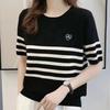 Playera de Manga Corta Cuello Redondo Suéter Tejido de Seda de Hielo para Mujer 2023 Nuevo Verano Estilo Coreano Holgado Delgado Camiseta Básica Top para Mujer