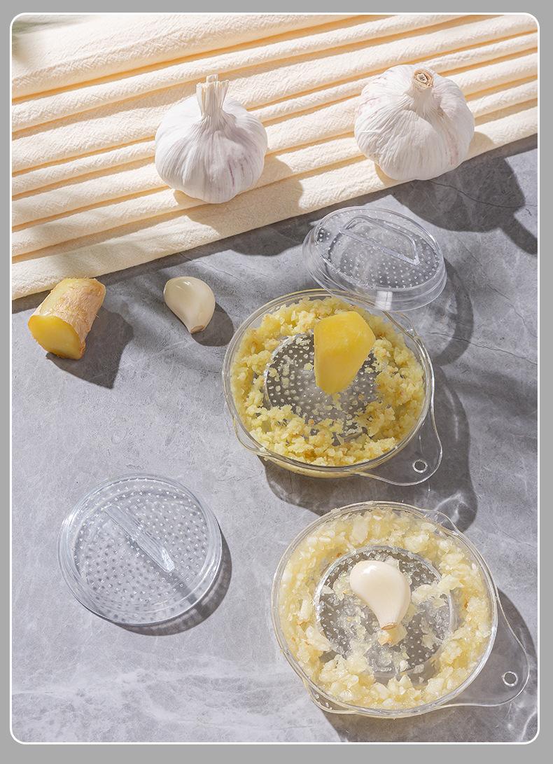 Multifunctional garlic bowl - transparent white [1 piece] grinding with lid will not hurt your hands