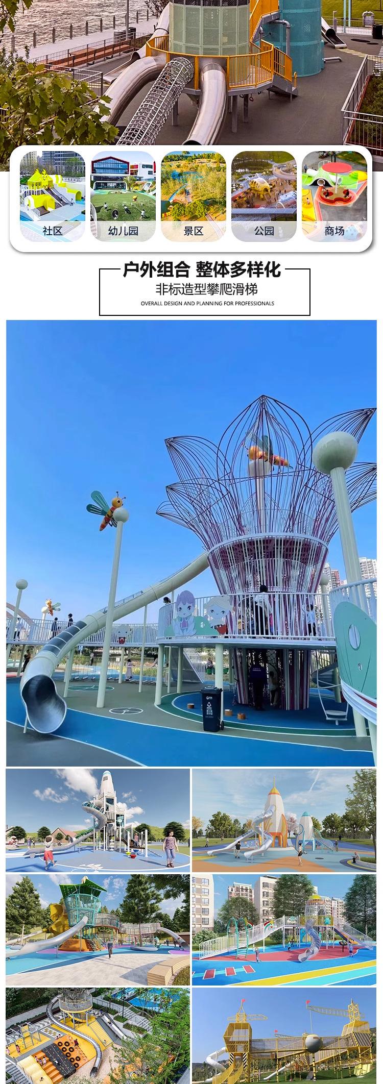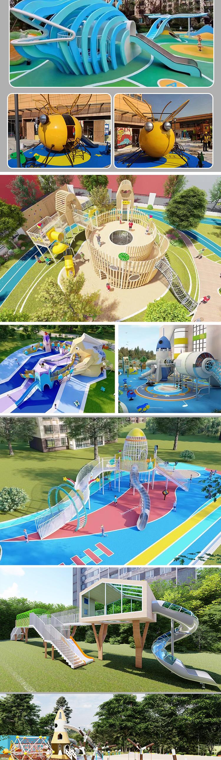 Tobogán grande de acero inoxidable equipo combinado de juegos para niños al aire libre comunidad fabricantes de instalaciones exteriores sin motor